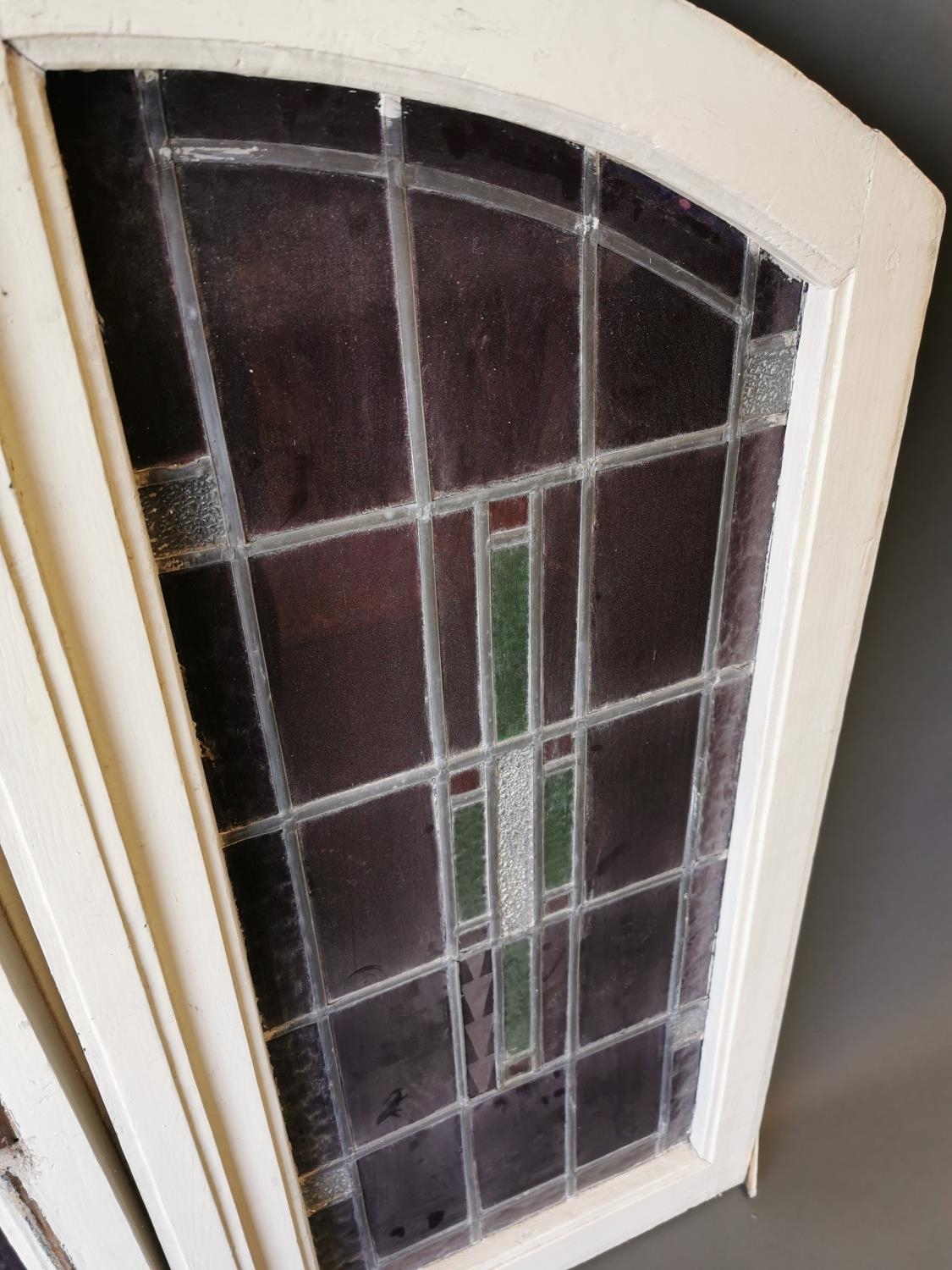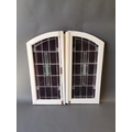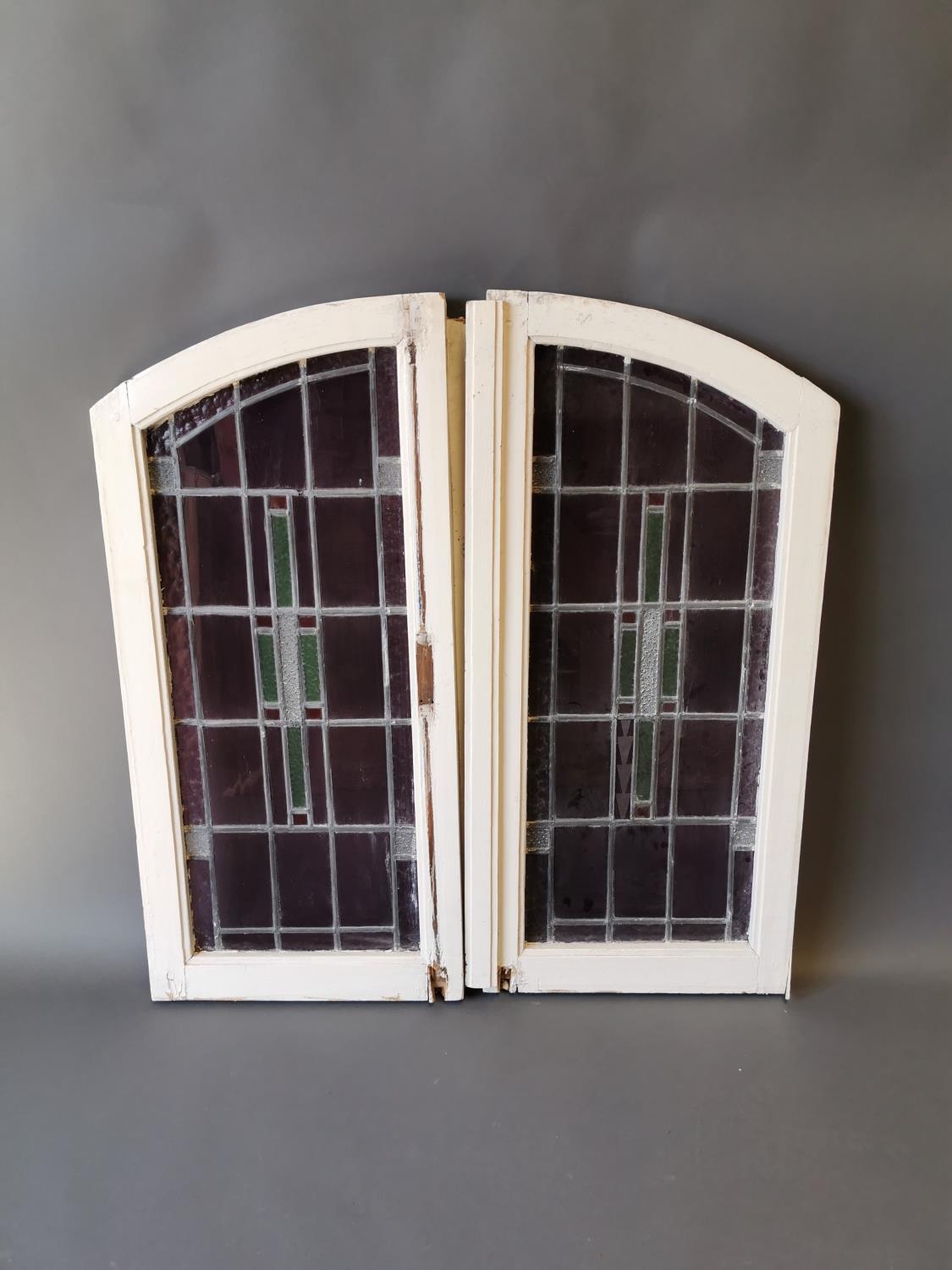 Pair of early 20th C. windows with stained glass panels {100 cm H x 96 cm W}.