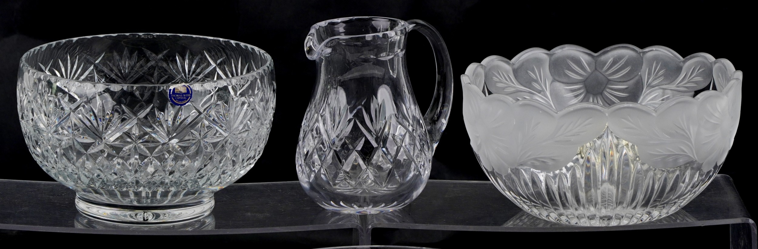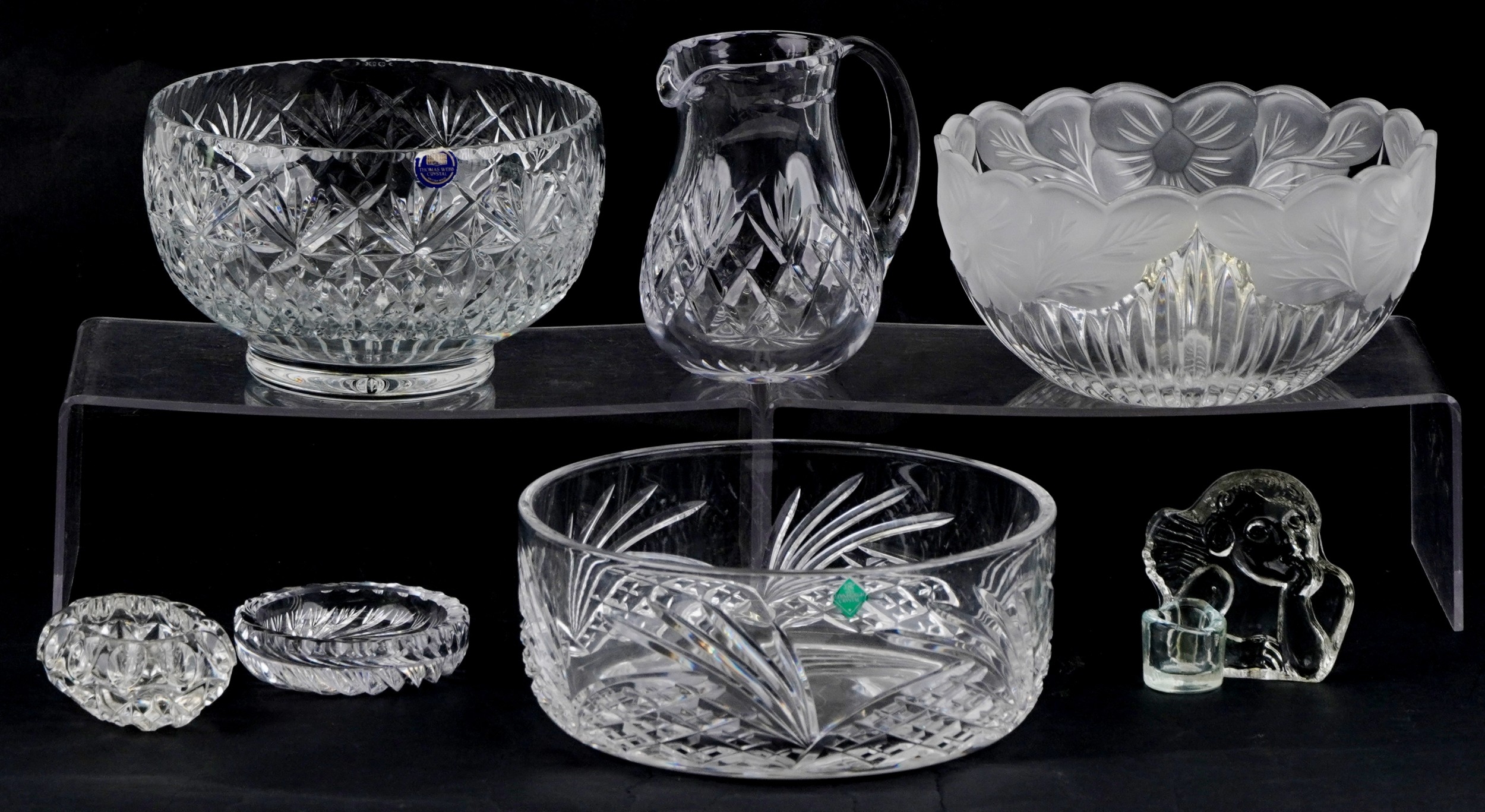 A Thomas Webb crystal bowl together with an Edinburgh crystal bowl and other glassware items, the largest 22cm in diameter.