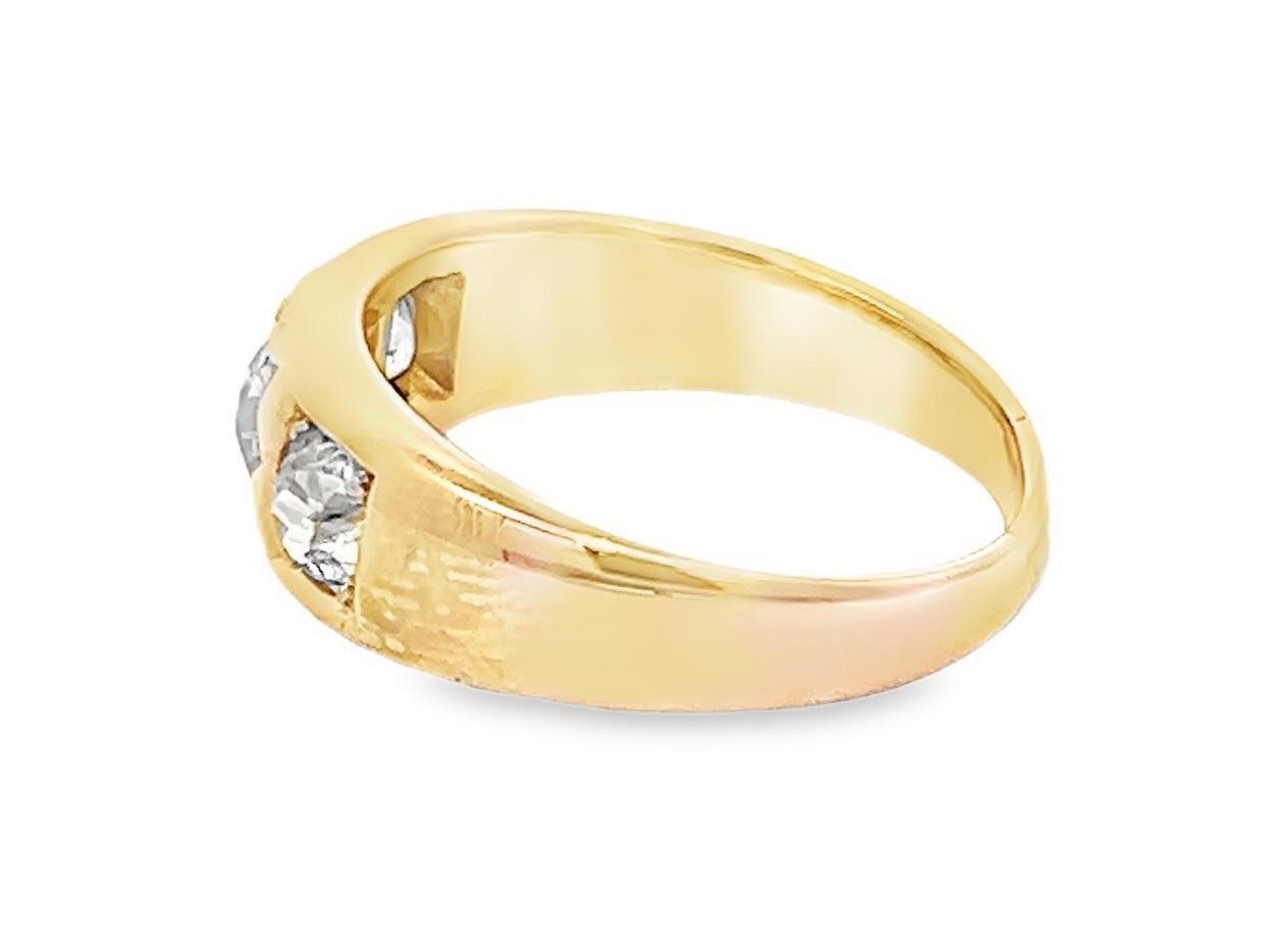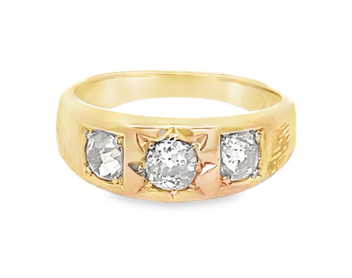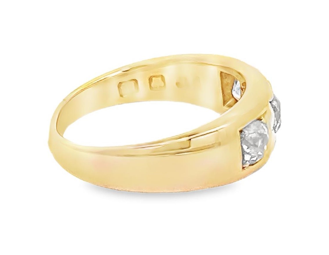 A 18ct yellow gold and diamond gypsy ring, size N/O. Hallmarks for Chester, date mark rubbed. Estimated clarity grades. SI2/ SI1/ I1. Estimated total diamond weight approx 0.75ct.