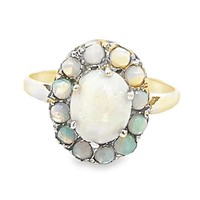 The diamonds are loose in their settings and will need attention. Both side diamonds with surface reaching fractures, one with large chip to crown facets/girdle. 6.97g