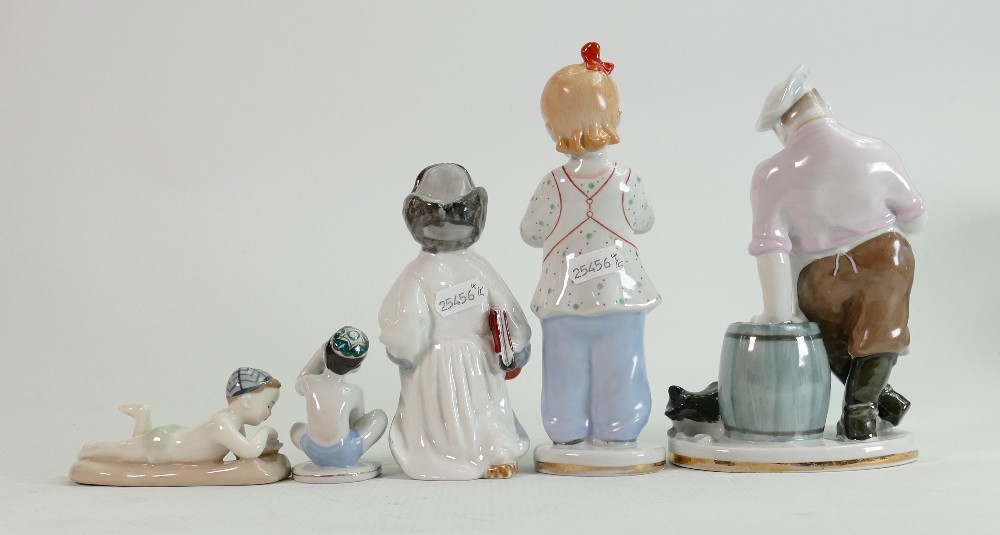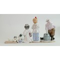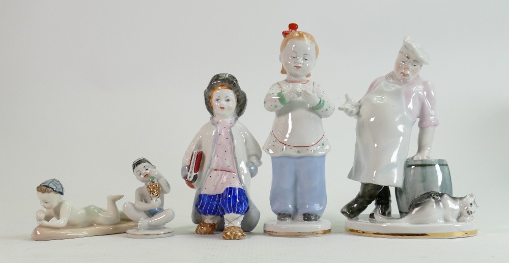 Russian Lomonosov pottery figures of Children and a Chef: Height of tallest 20cm. (5)