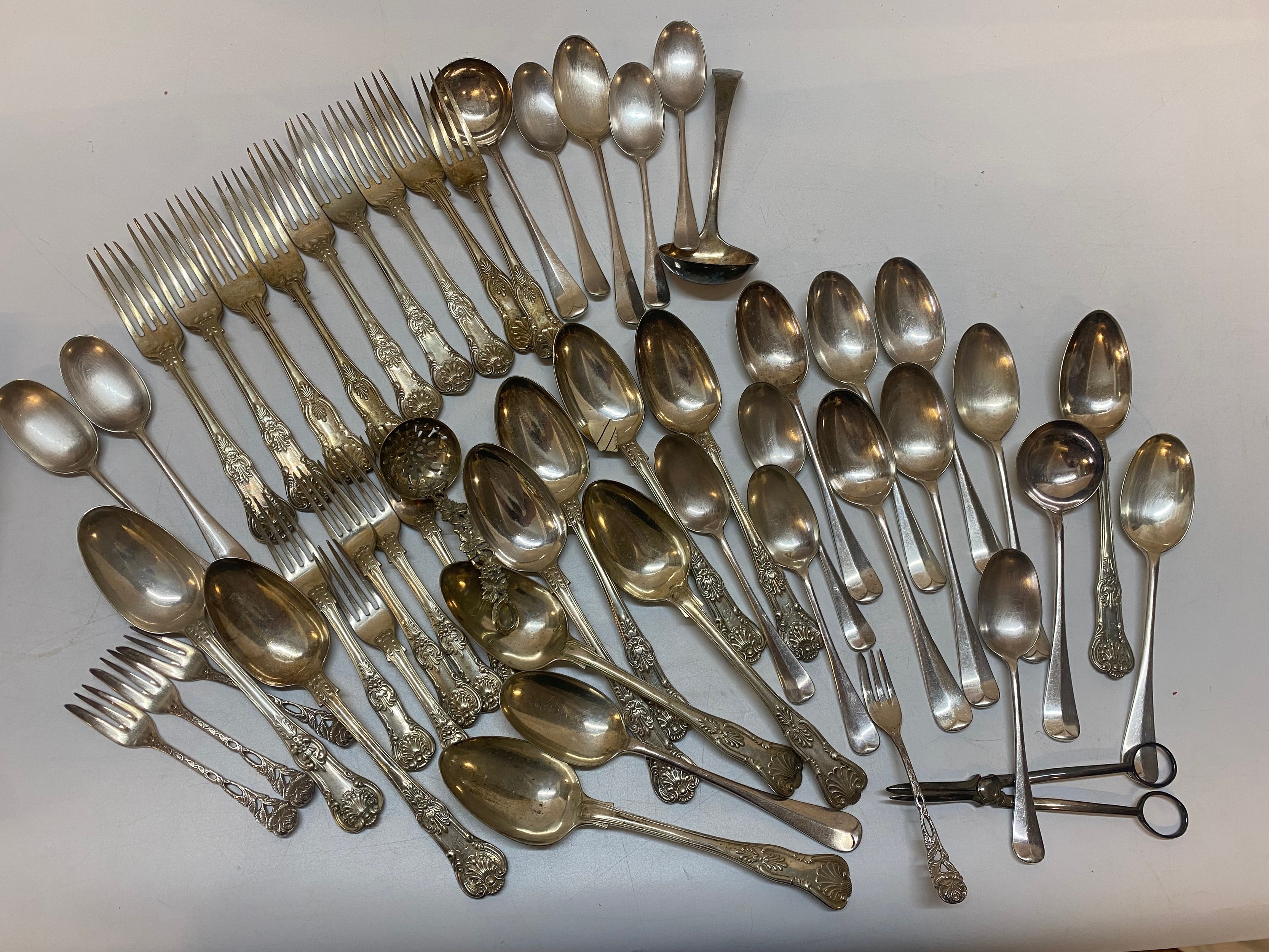 A selection of silver plated Kings pattern flatware