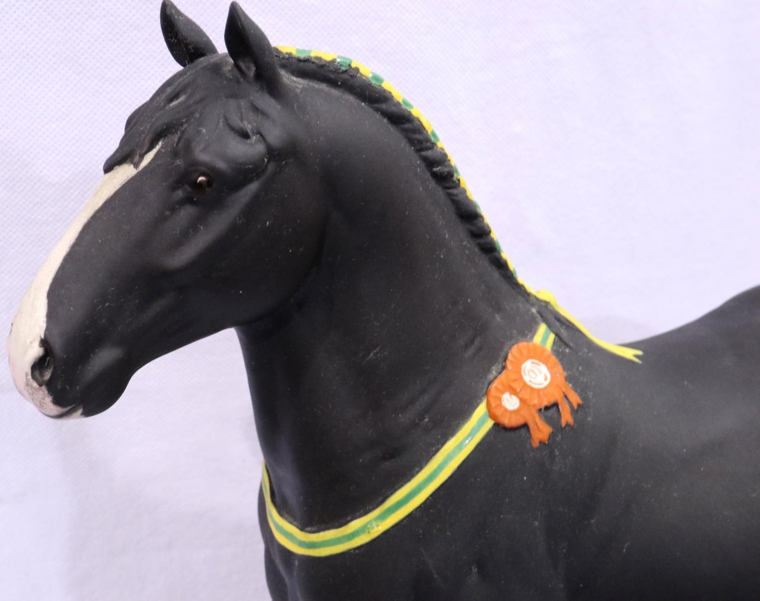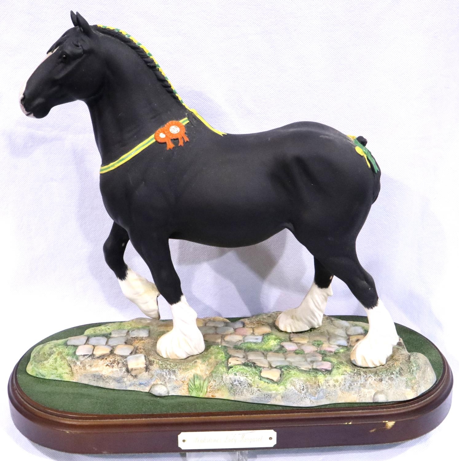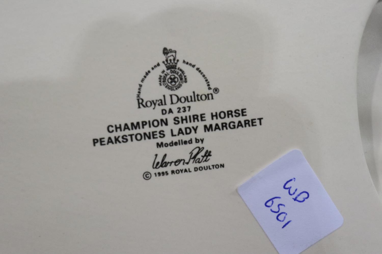 Royal Doulton Champion Shire Horse, Peakstones Lady Margaret, on plinth, H: 33 cm, L: 33 cm. No cracks, chips or visible restoration. P&P Group 3 (£25+VAT for the first lot and £5+VAT for subsequent lots)
