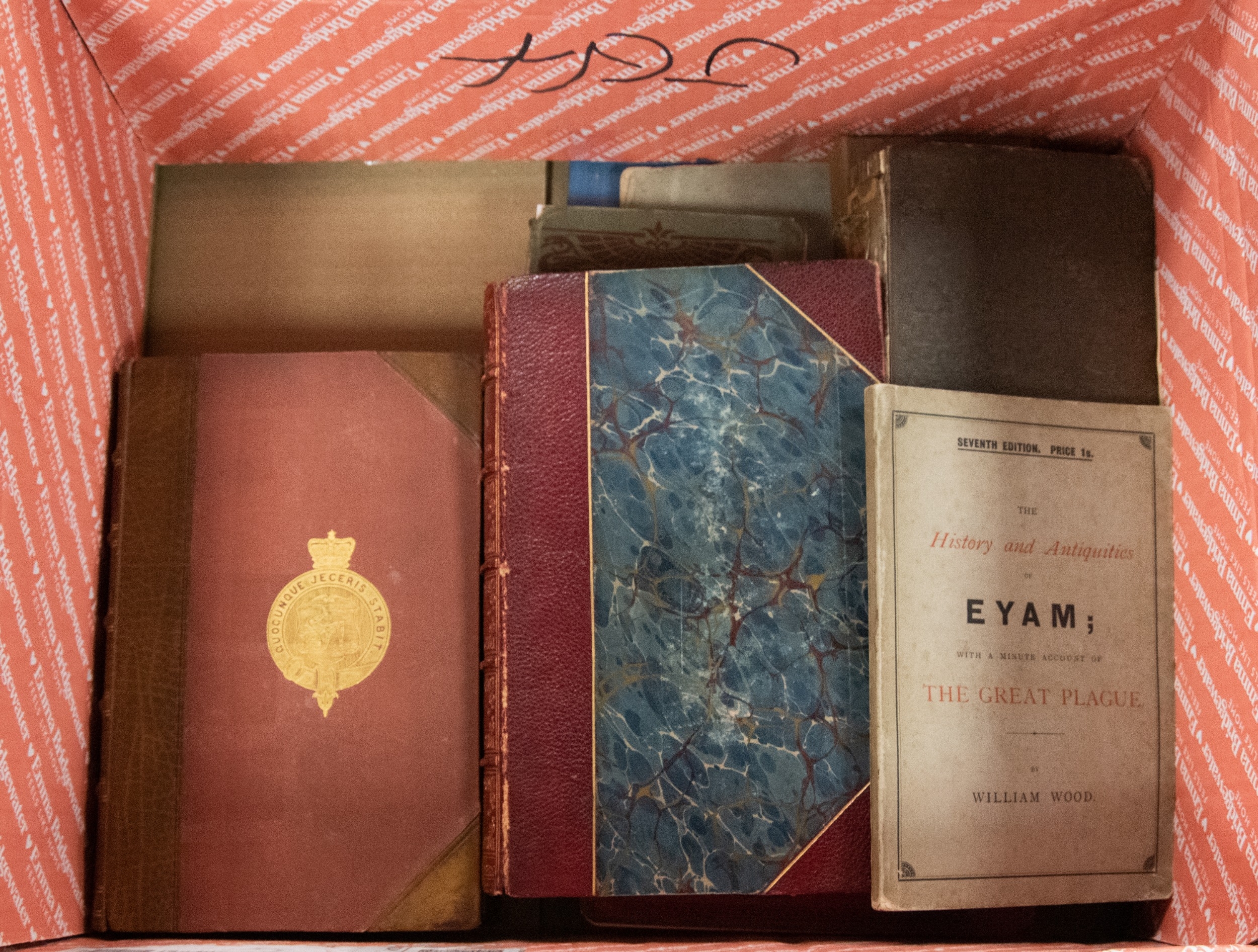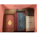 TRAVEL/TOPOGRAPHY. Joseph Train - A Historical and Statistical Account of the Isle of Man, printed published by Mary A Quiggin, 1895, bound in half leather with armorial incorporating the Isle of Man, Coat of Arms, with folding map (repaired). Briton/Brayley- A Topographical and Historical Description of the County of Cumberland, printed Sherwood, Neeley & Jones; George Cowie & Co, 1813, illustrated with various plates and folding map, half leather binding. Together with a small group of books relating to local history and travel. Contents of a small box