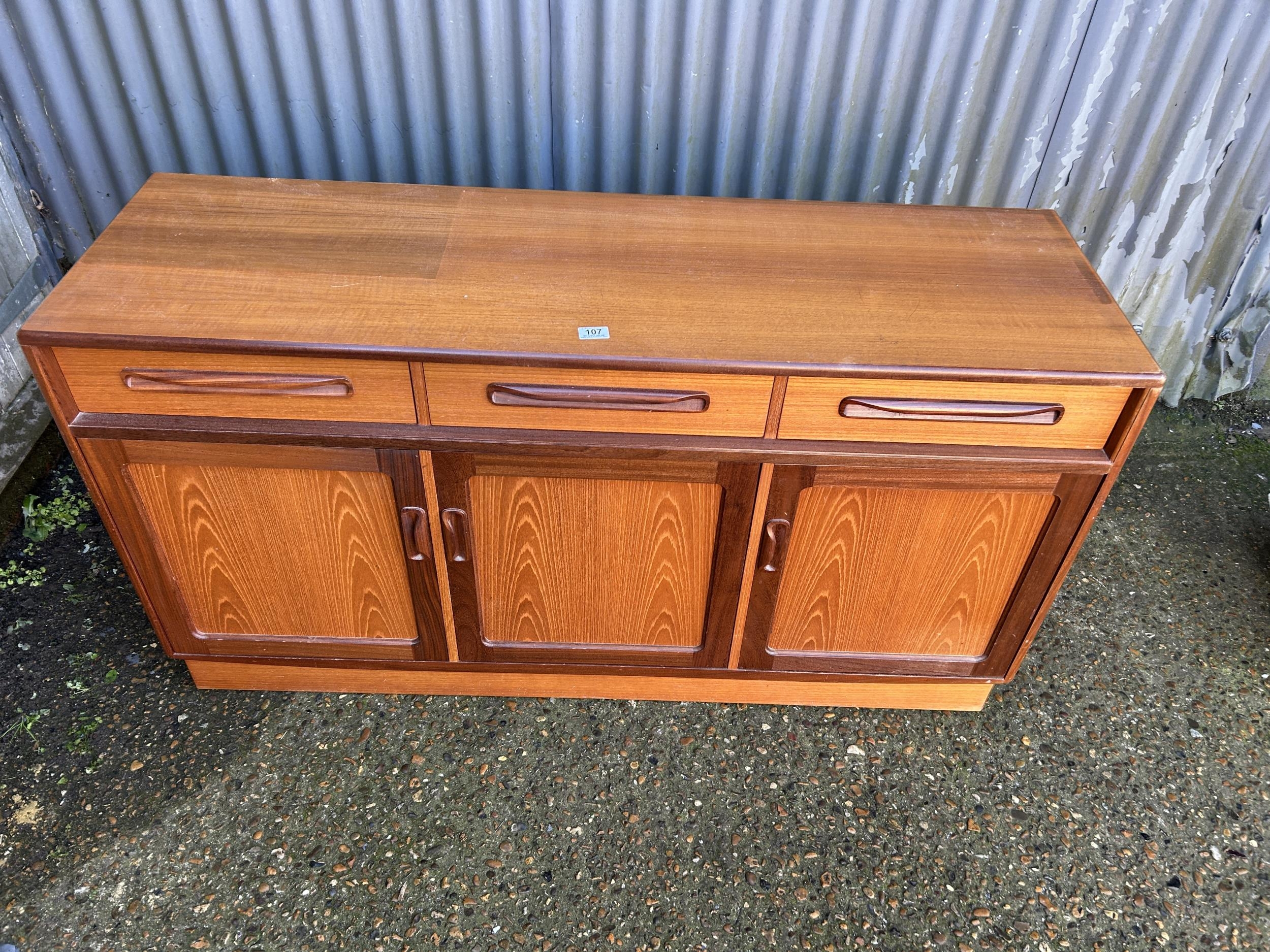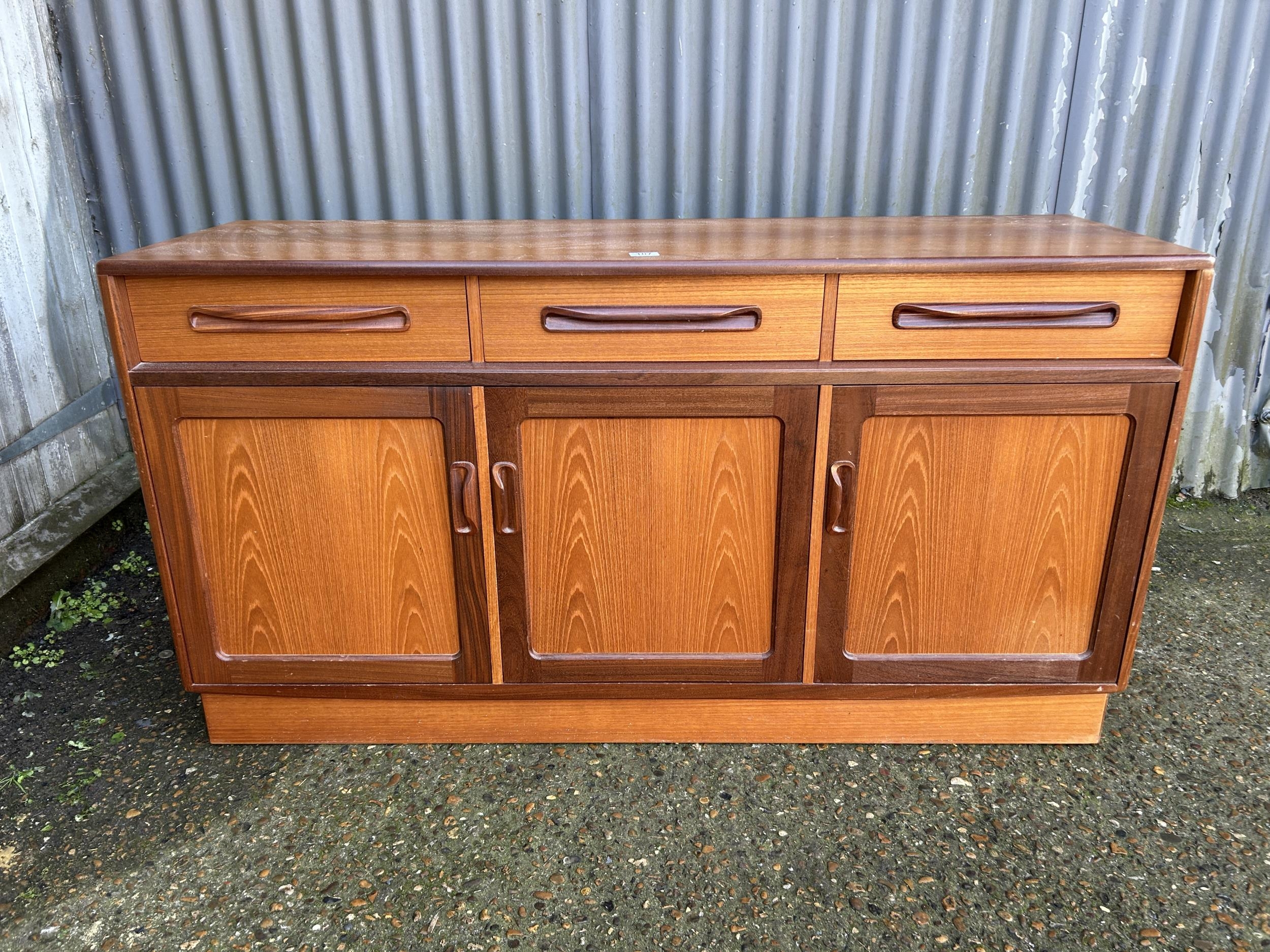 A g plan teak three drawer sideboard 142x44x75
