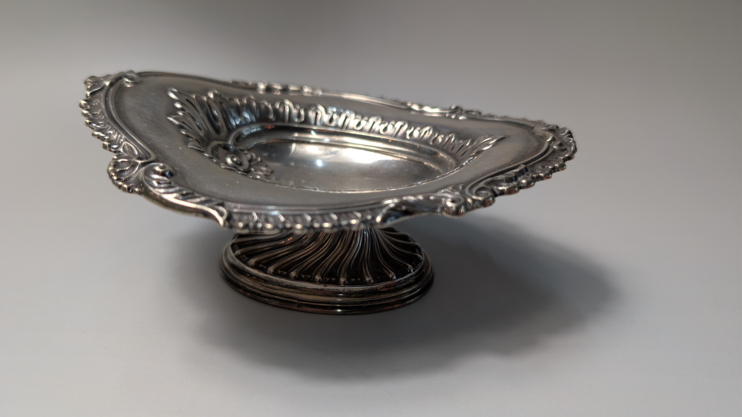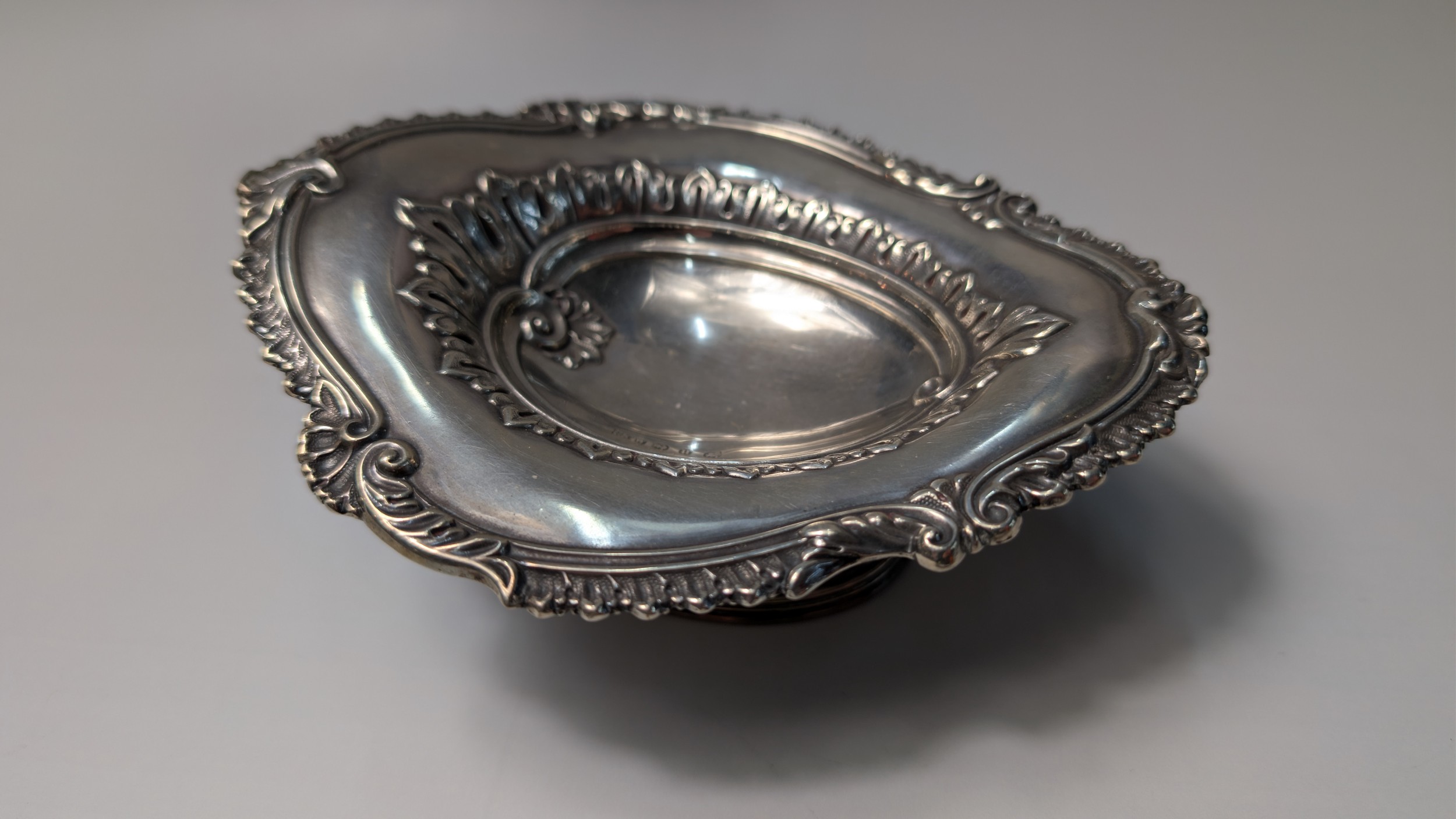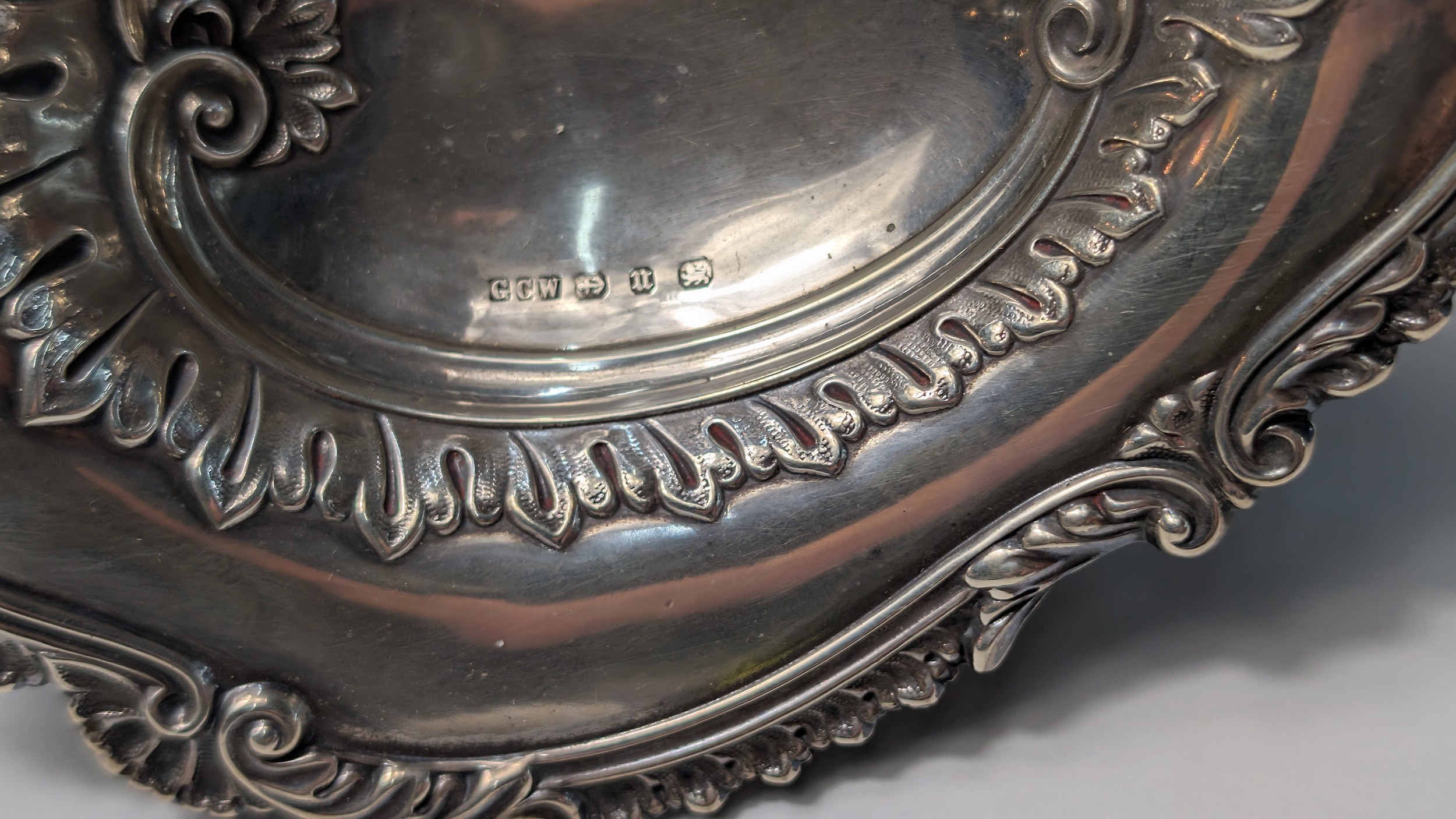 Set of four Late Victorian silver footed bonbon dishes, G C W, Birmingham 1894, length 14.2cm, height 6cm, gross weight 475 grams