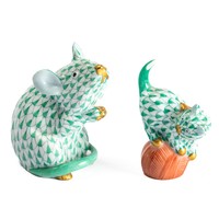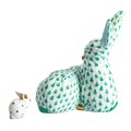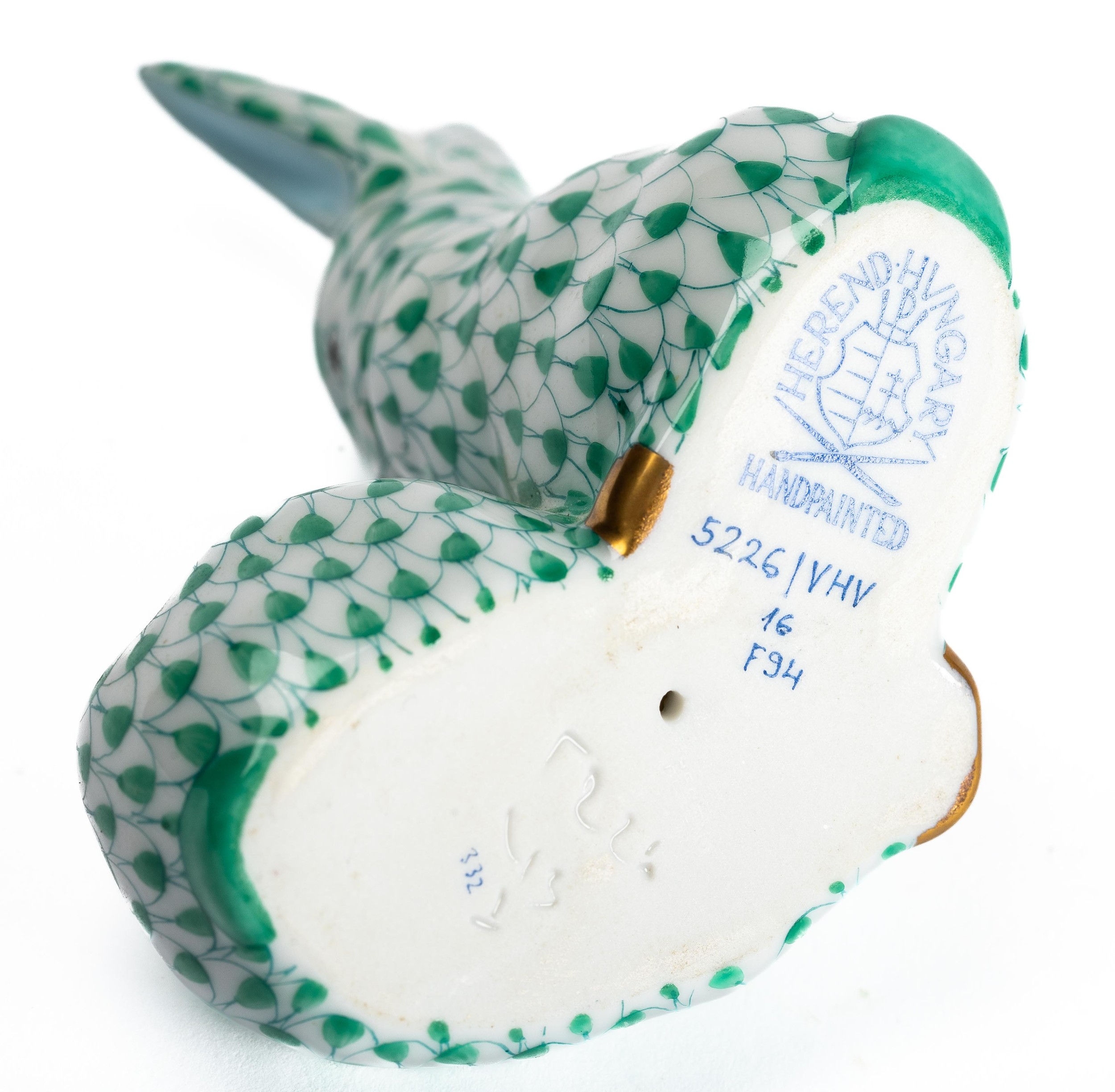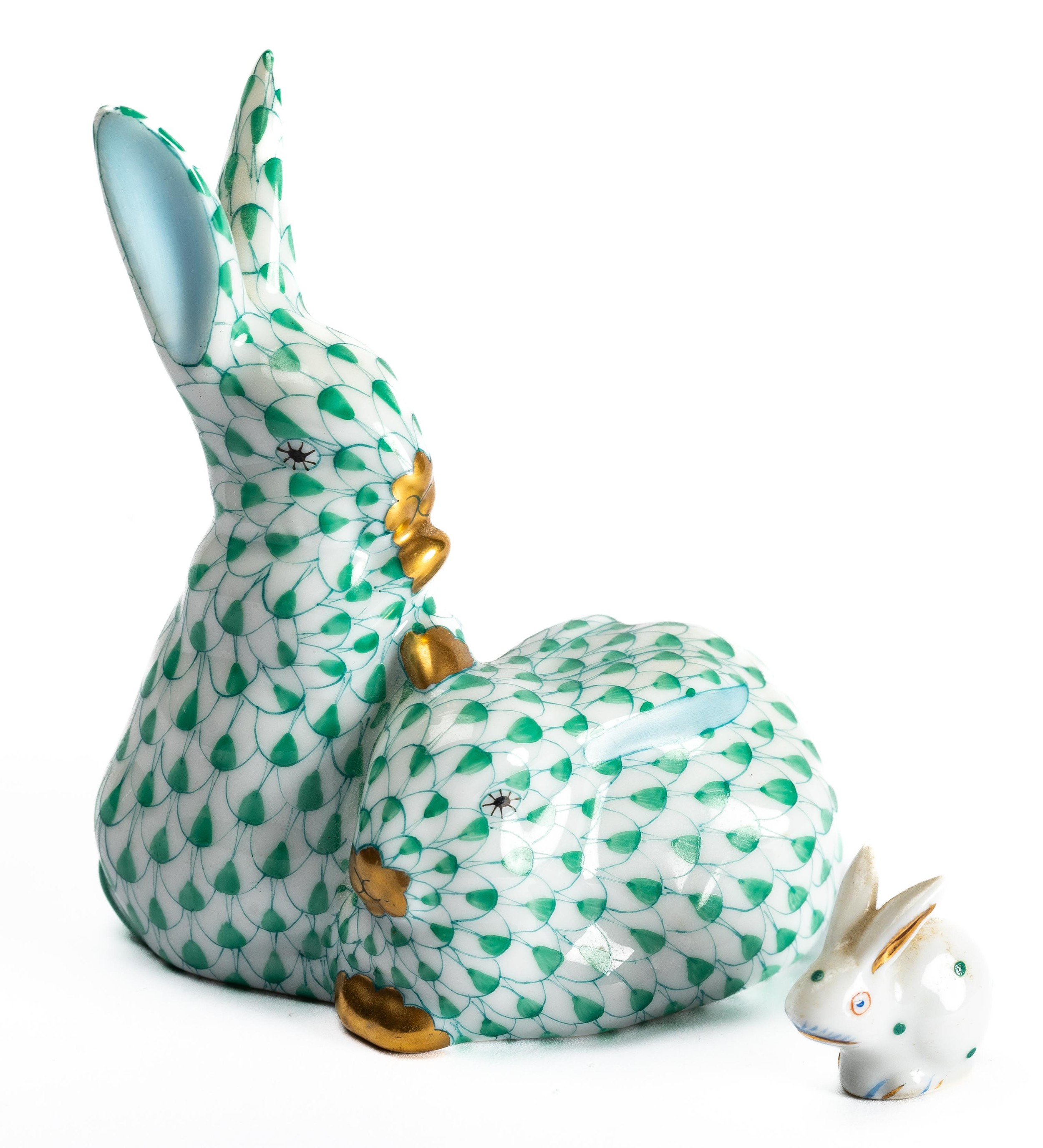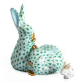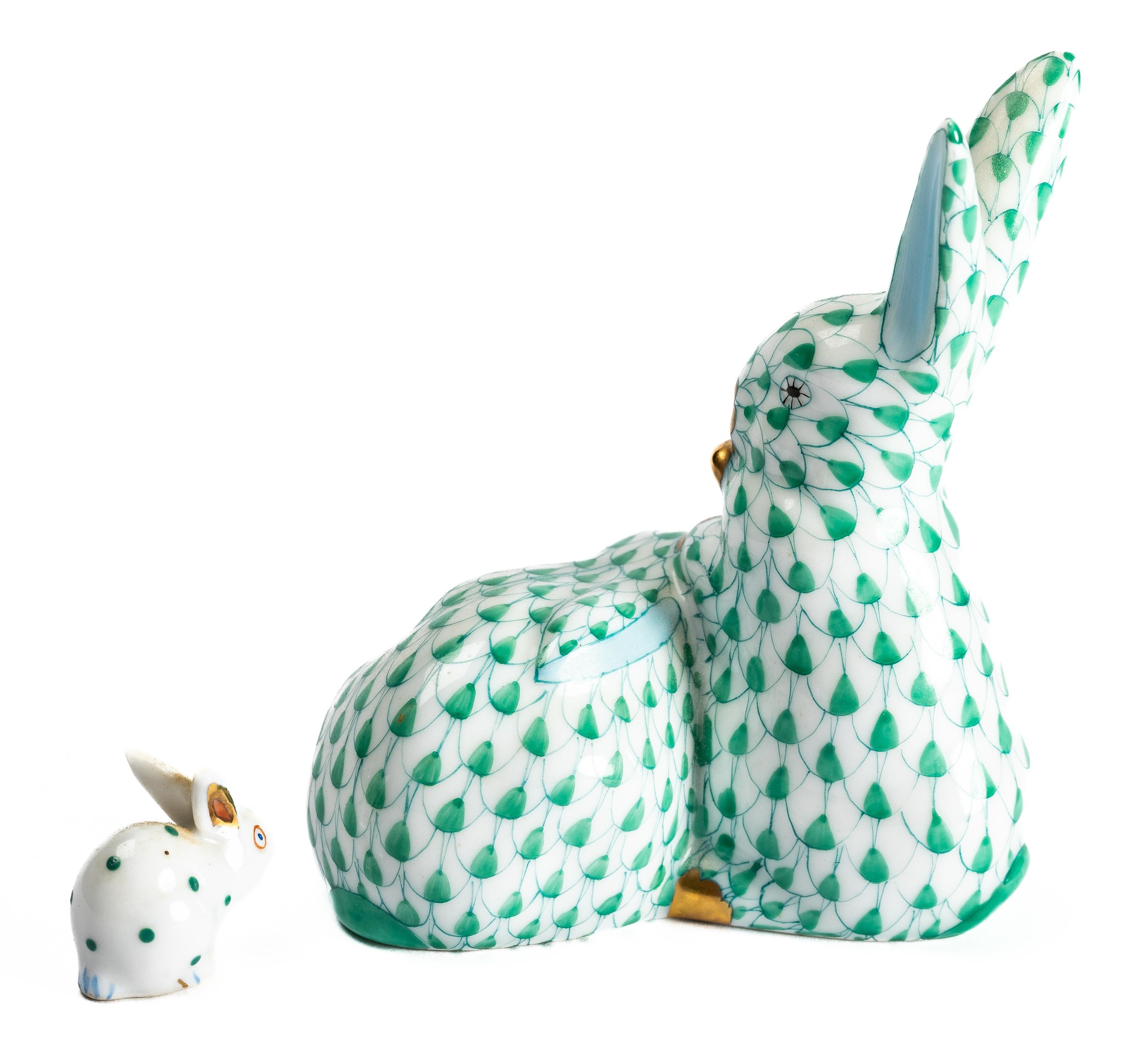 Herend Hungary, a Herend porcelain pair of rabbits figure in green colourway, with further miniature Herend rabbit. Both stamped to base. Heights 9cm / 2cm. (2)