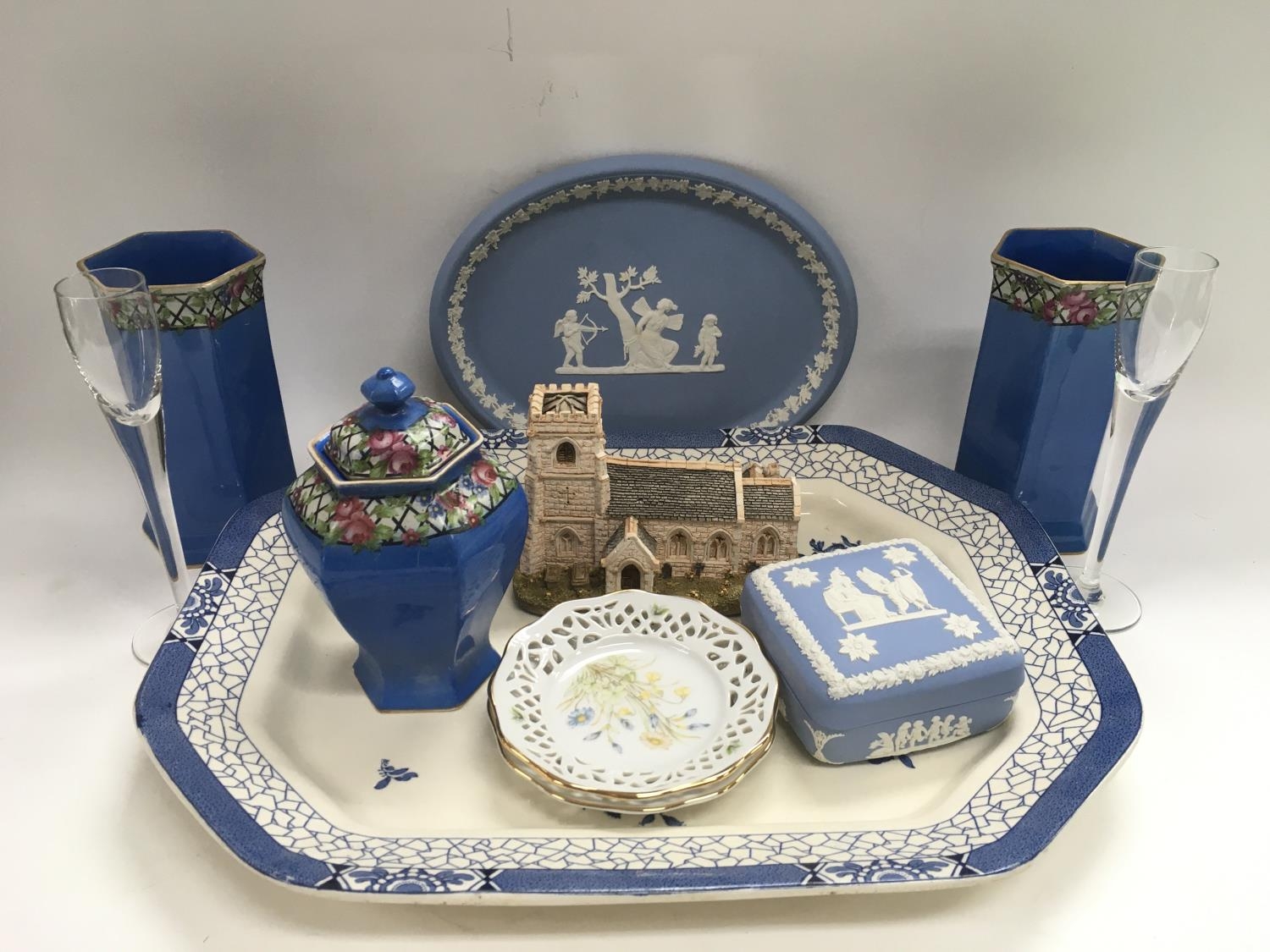 An Oriental style tea service, Wedgwood Jasperware etc.