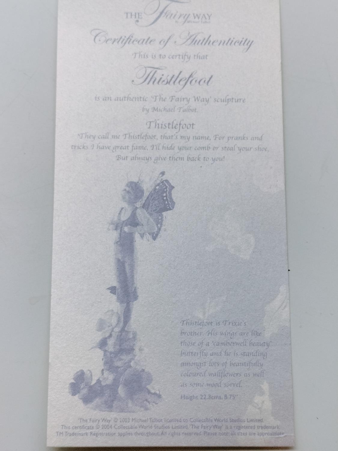 Boxed 'Thistlefoot Fairy' by Michael Talbot with Certificate. 22cm Tall.