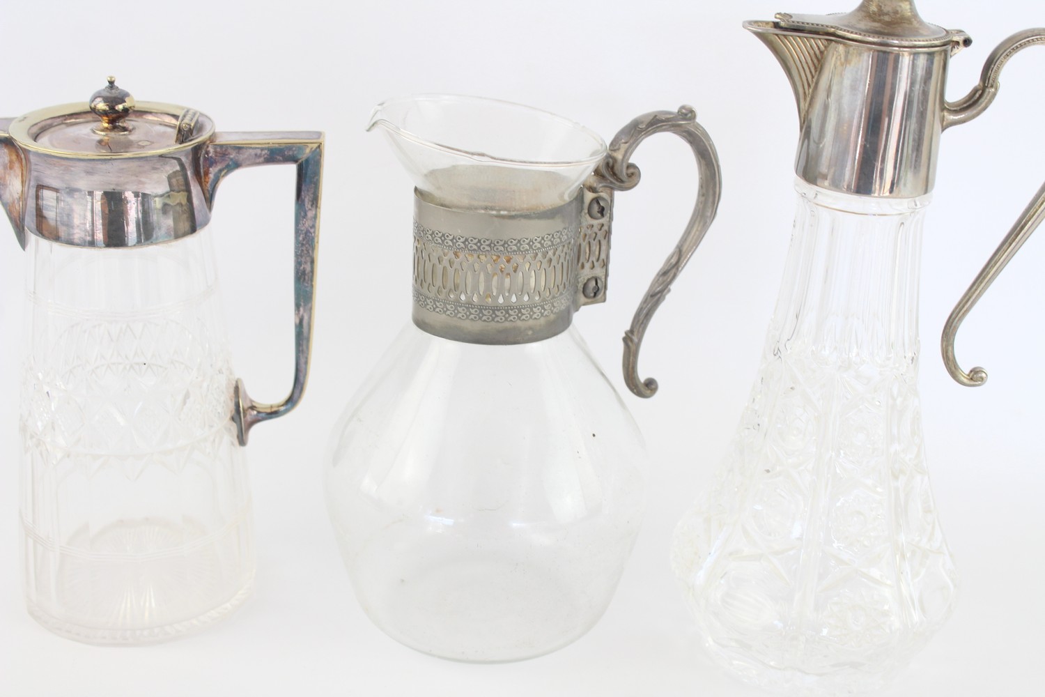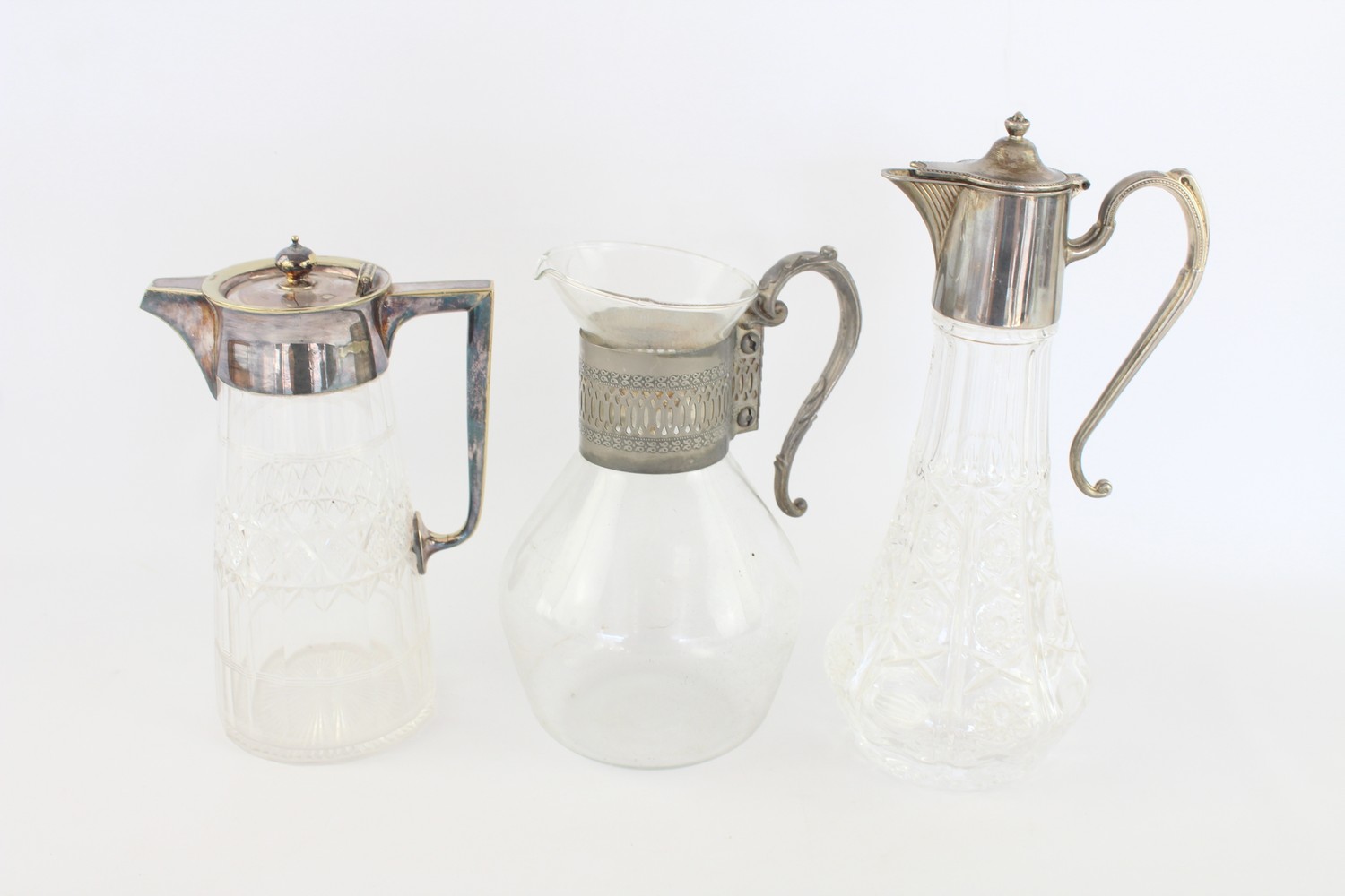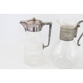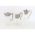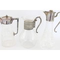 3 x Vintage Claret Jugs / Pitchers Inc. Cut Crystal, Silver Plate Tops, Art Deco
