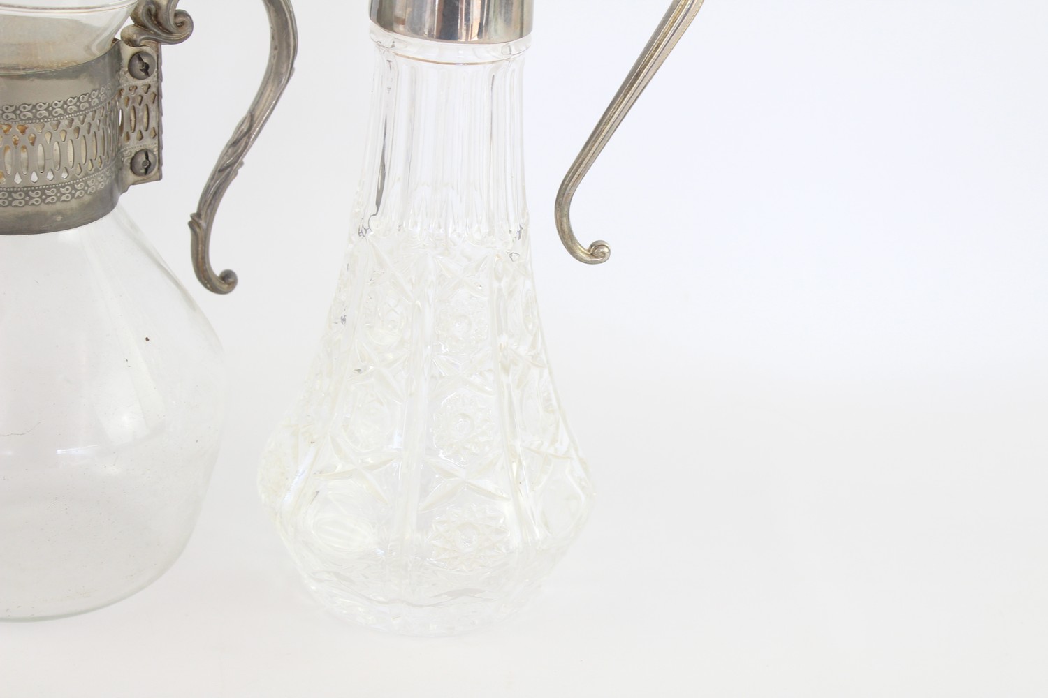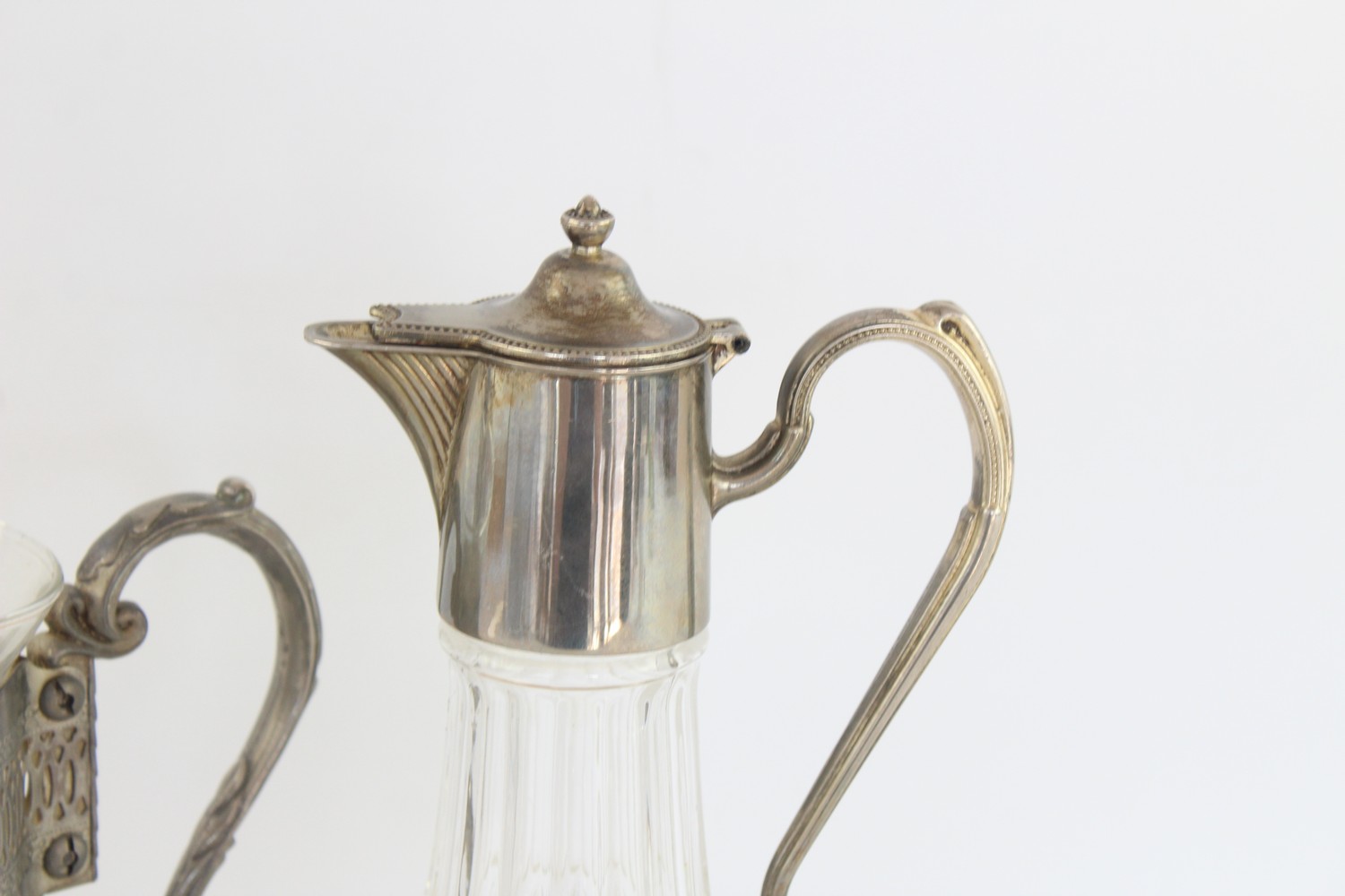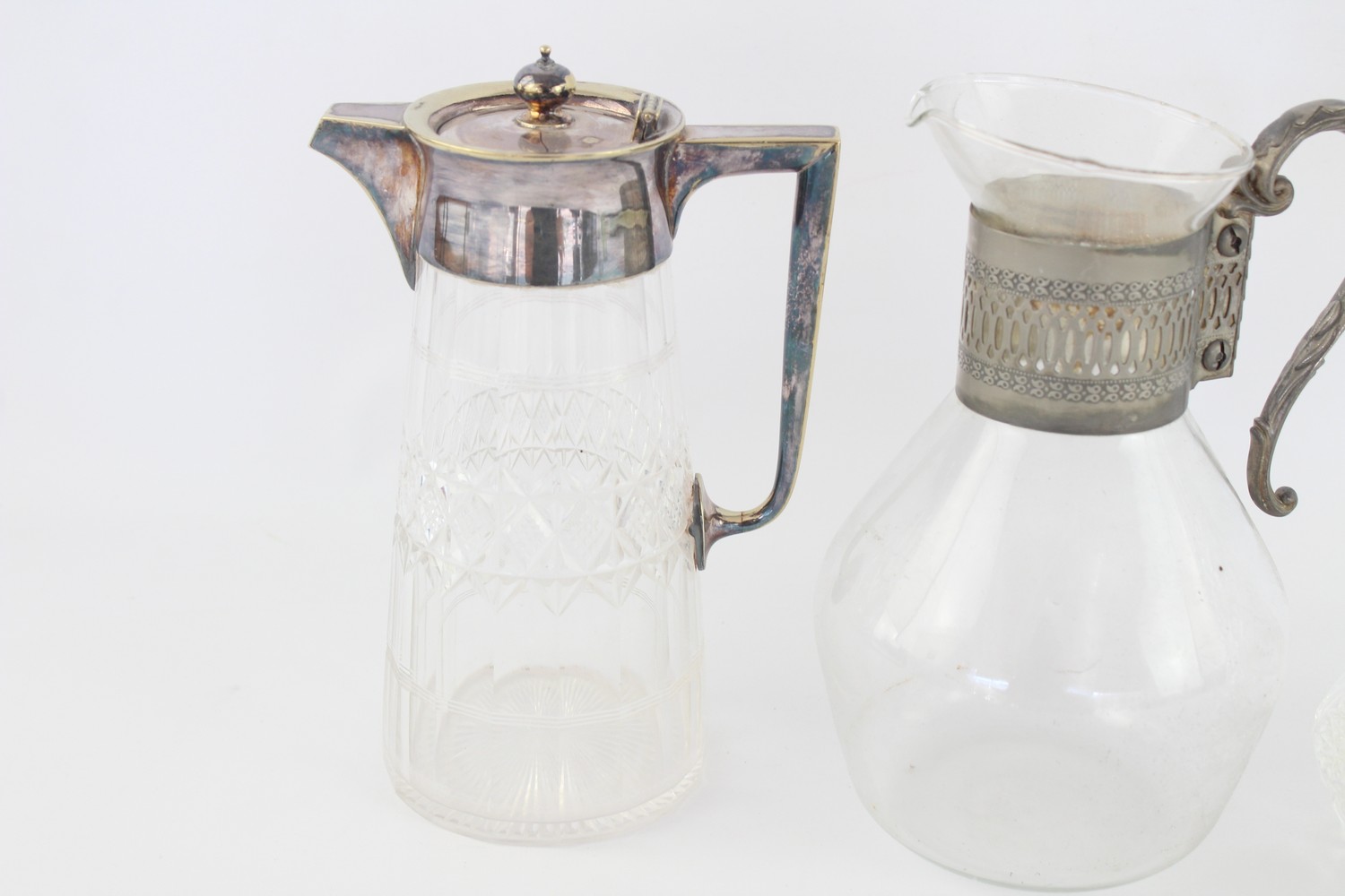 Vintage Claret Jugs / Pitchers Inc. Cut Crystal, Silver Plate Tops, Art Deco In vintage condition Signs of age & wear Please view pictures