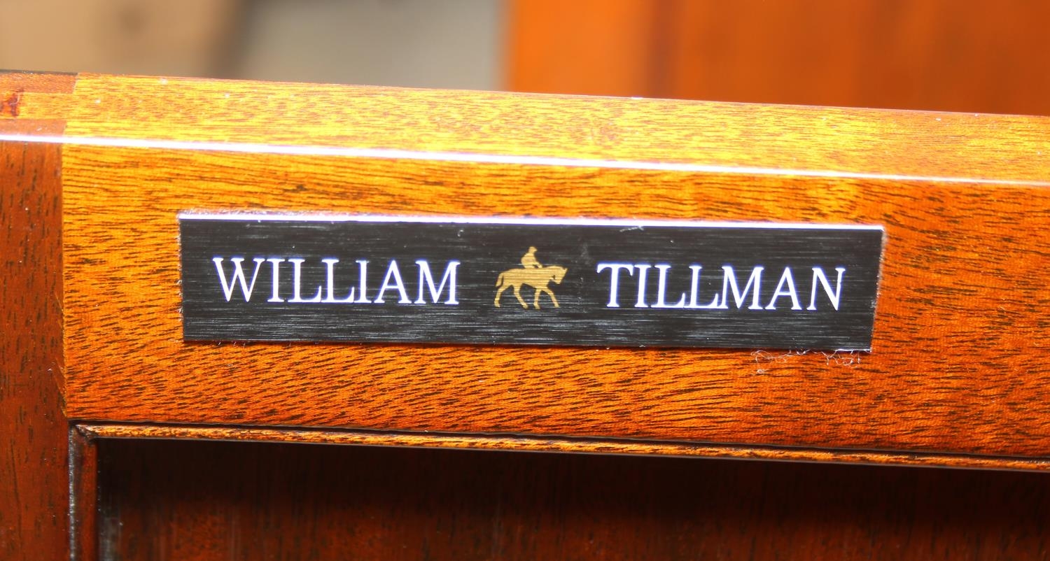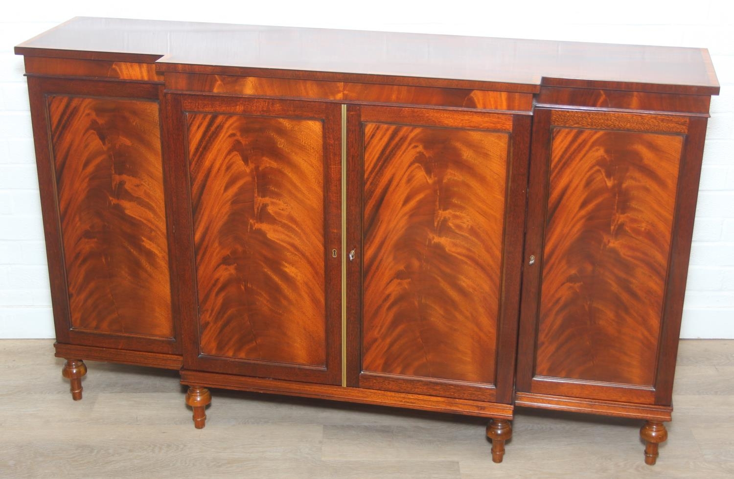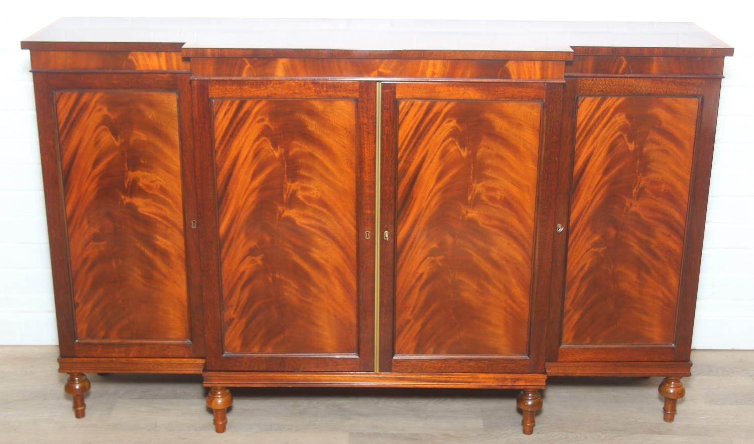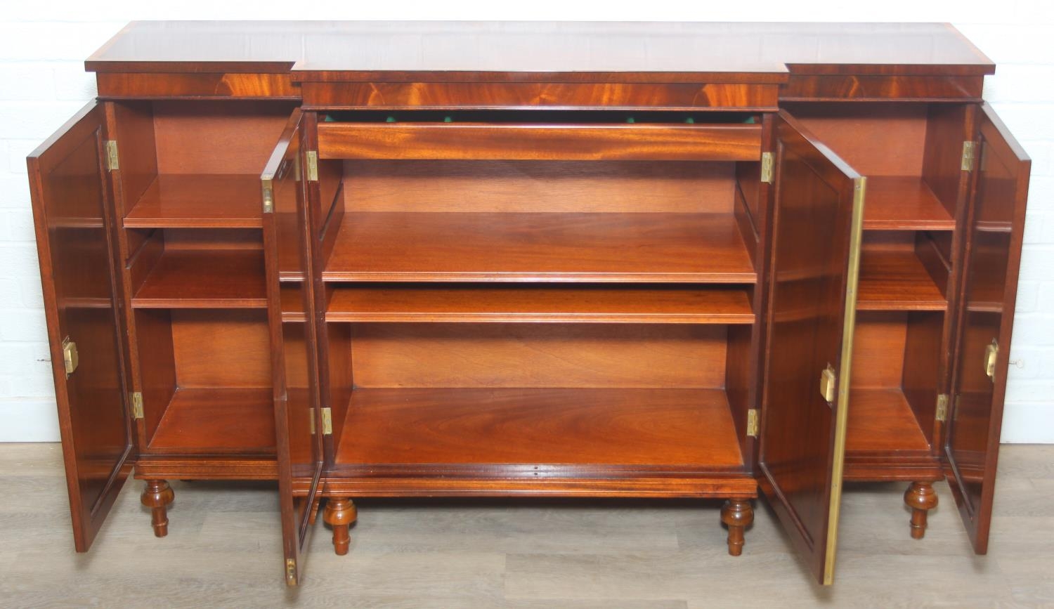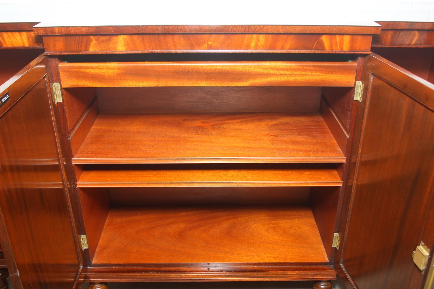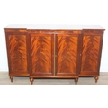 William Tillman Furniture - a Regency style flame Mahogany sideboard, four doors with the central pair housing a cutlery drawer, label to interior, 153cm x 40cm x 93cm
