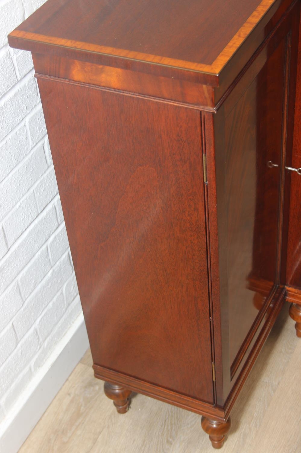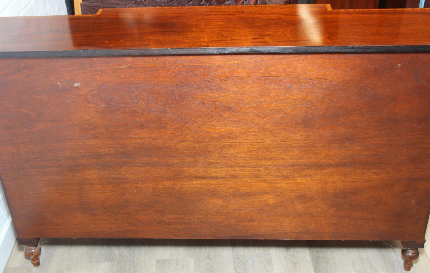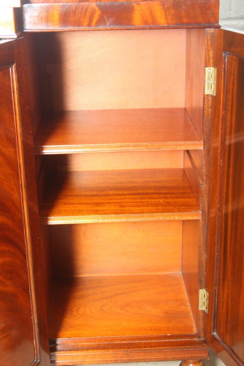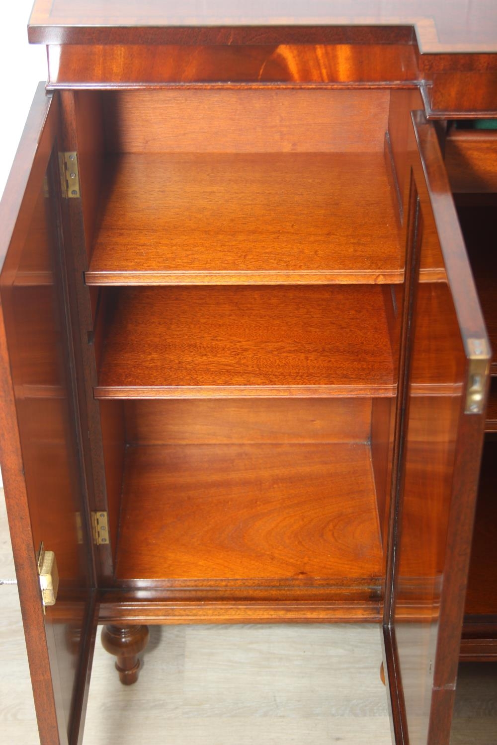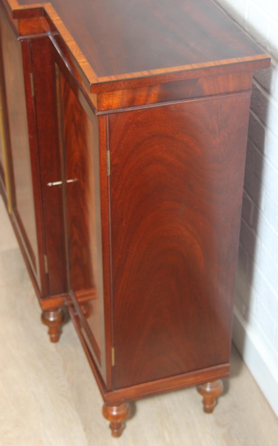 William Tillman Furniture - a Regency style flame Mahogany sideboard, four doors with the central pair housing a cutlery drawer, label to interior, 153cm x 40cm x 93cm