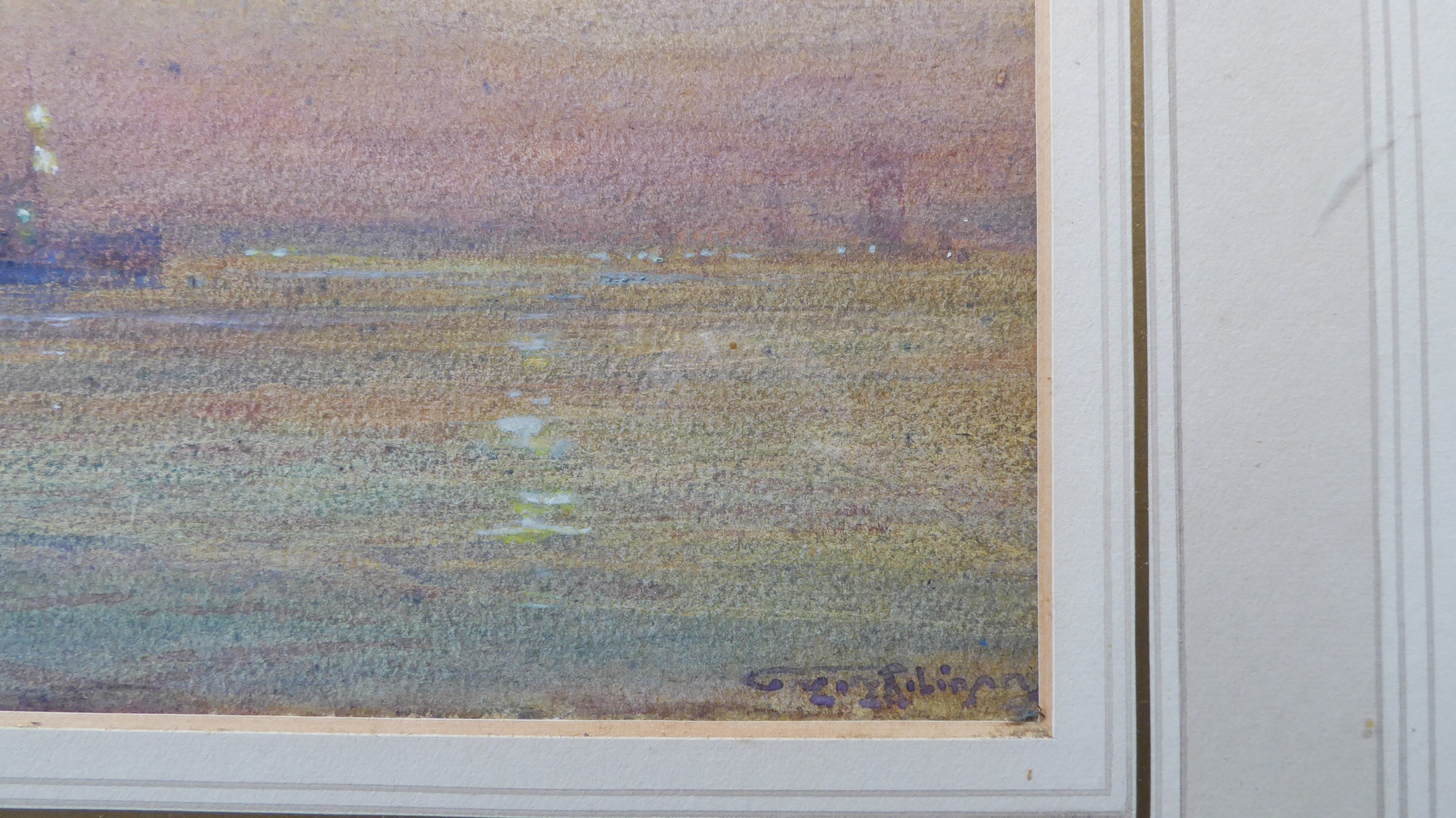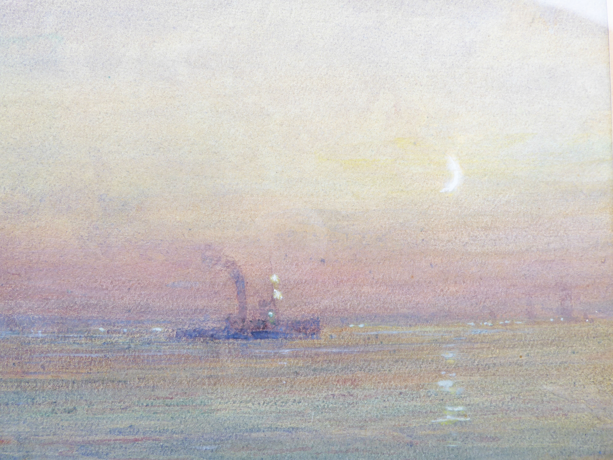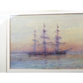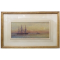 GREGORY ROBINSON (British 1876-1967) - A three-masted barque being towed to shore by moonlight, watercolour and gouache, signed lower right (7¾ x 18¼in; 19.5 x 46.5cm)