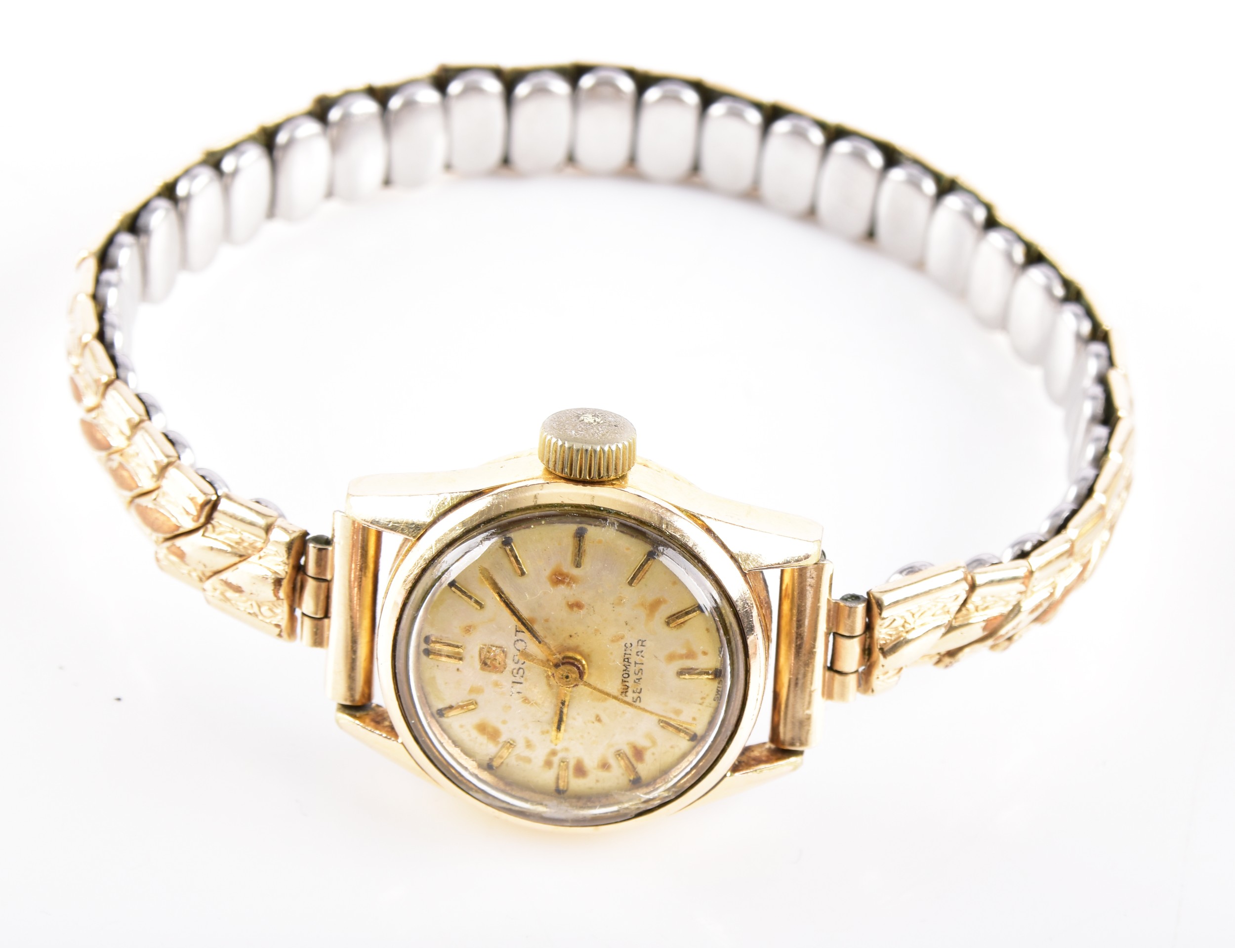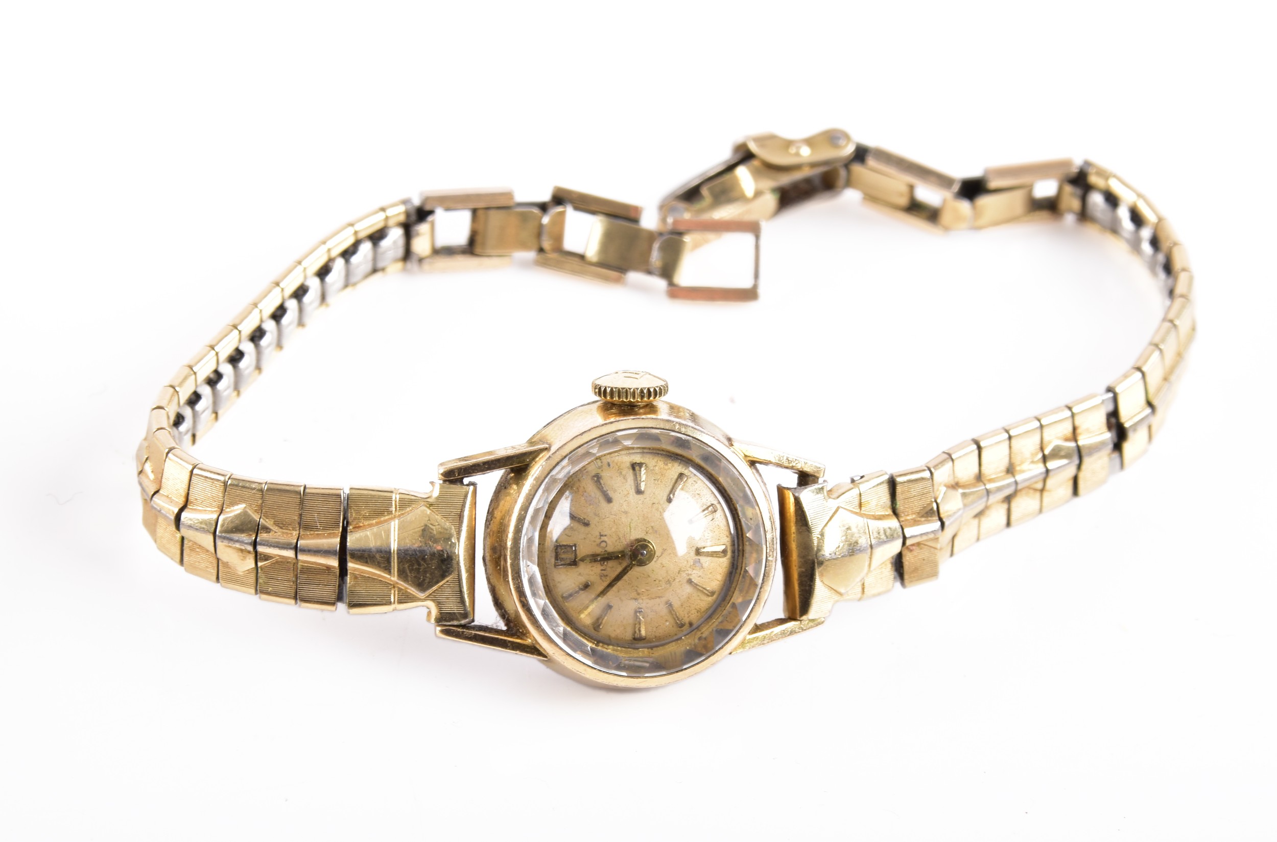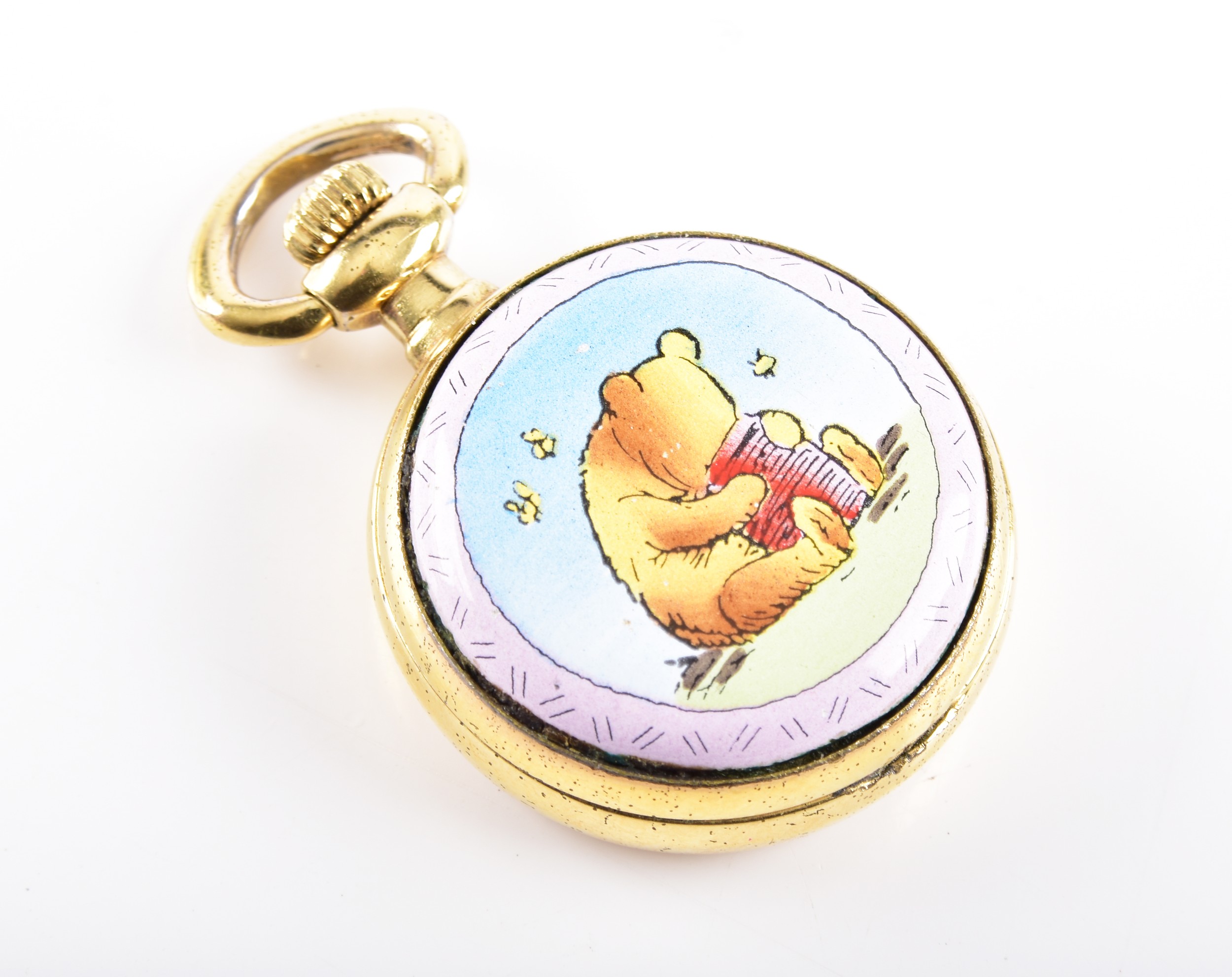 A David Anderson green enamel leaf brooch, Victorian style yellow metal brooch, a pair of yellow metal cufflinks, two Tissot ladies wristwatches, three brooches, and a Halcyon Days enamel Winnie The Pooh pocket watch.