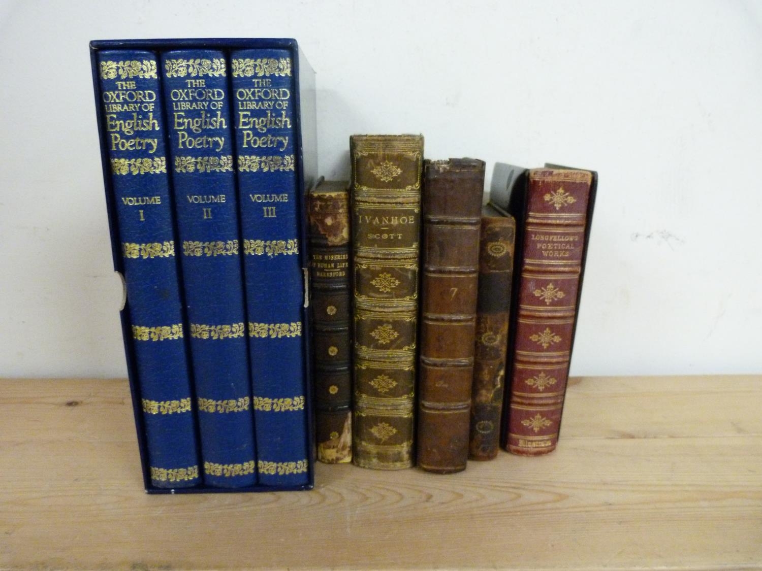 Leather Bindings. 8 various vols. incl. Oxford Library of English Poetry, 3 vols. in slip case.