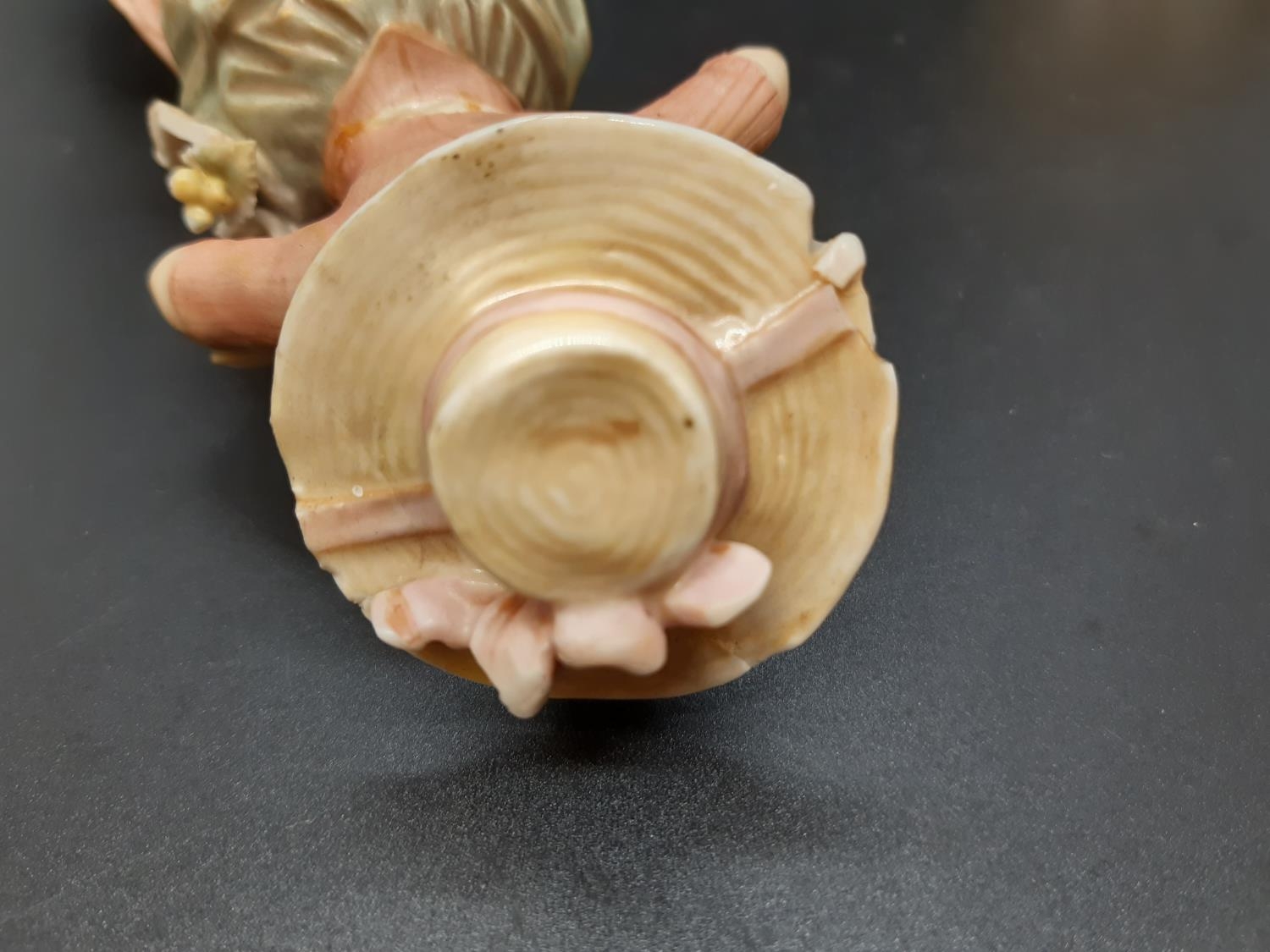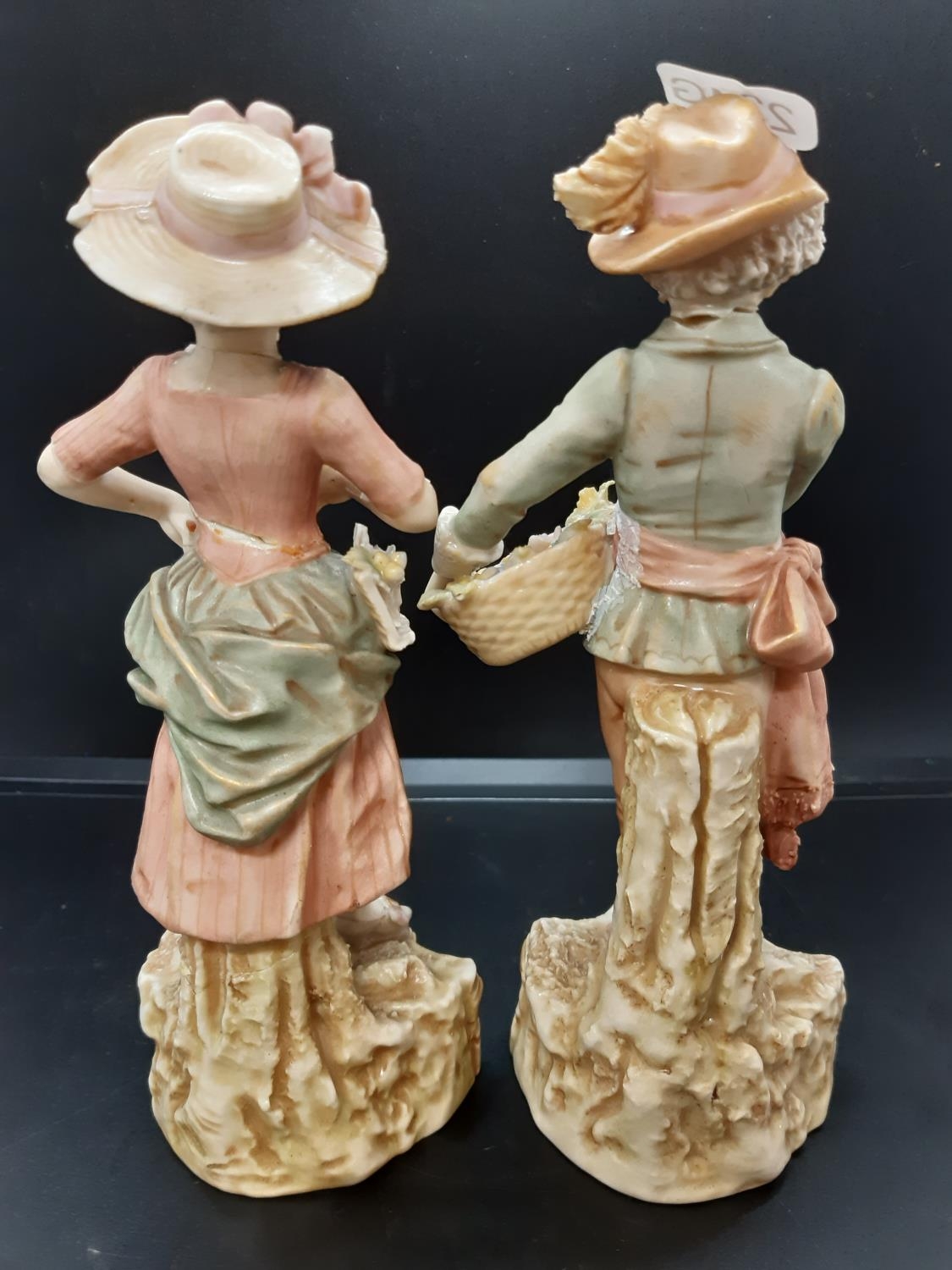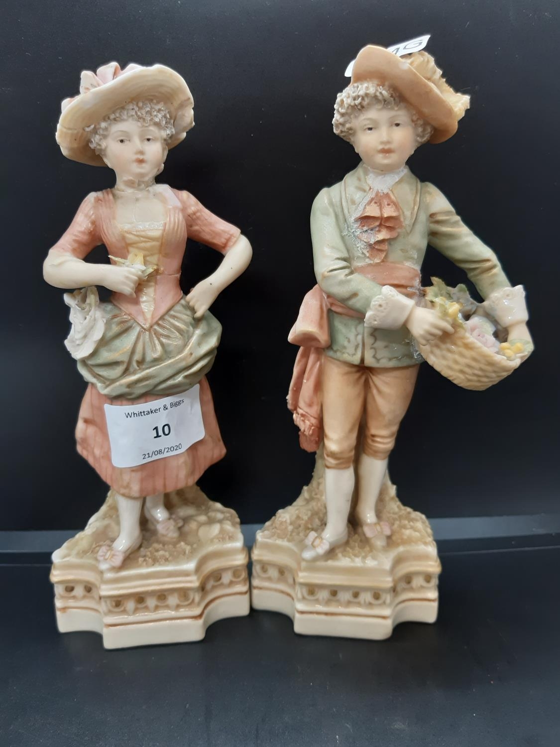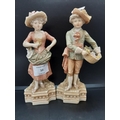 A pair of early/mid 20th century Royal Dux figurines of young boy and girl flower sellers with triangular "E" back stamp circa 1912 - 1951