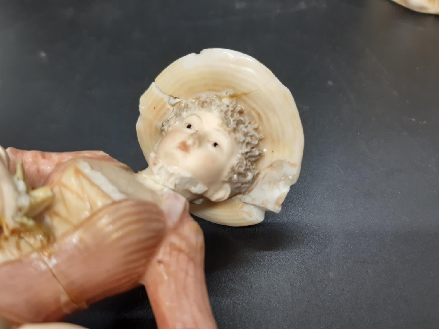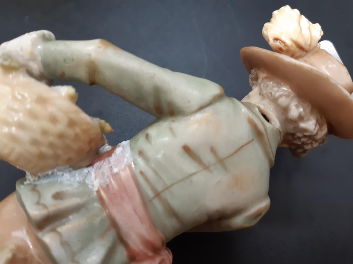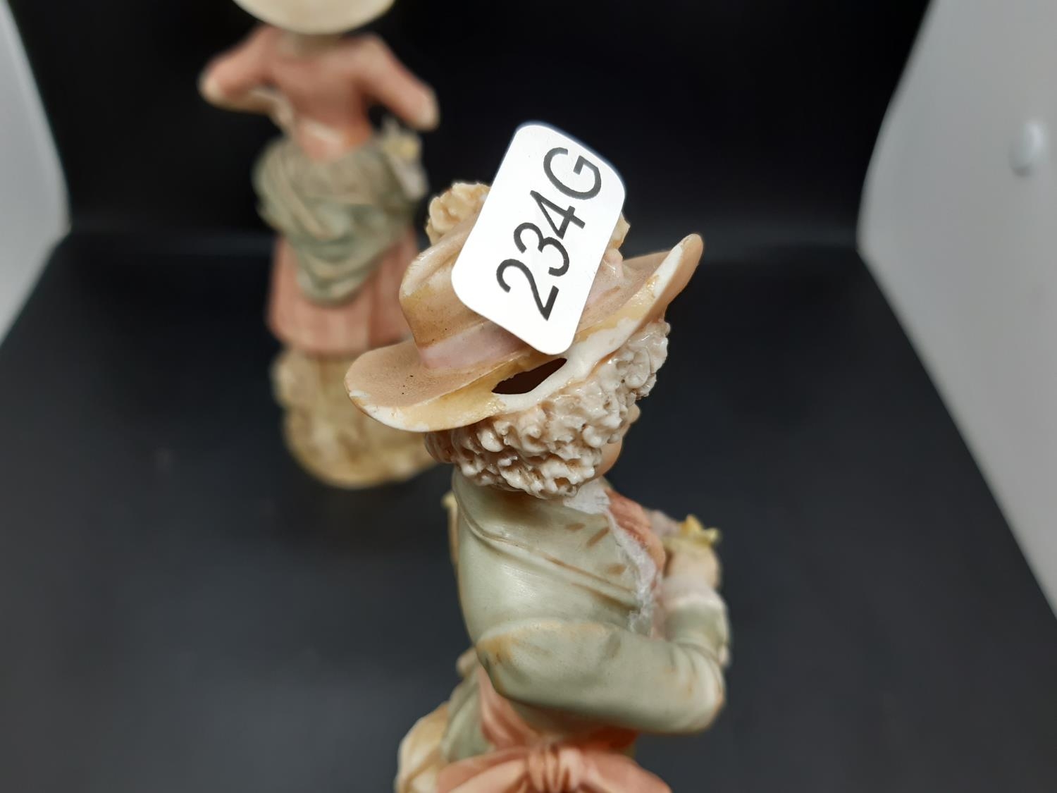 A pair of early/mid 20th century Royal Dux figurines of young boy and girl flower sellers with triangular "E" back stamp circa 1912 - 1951