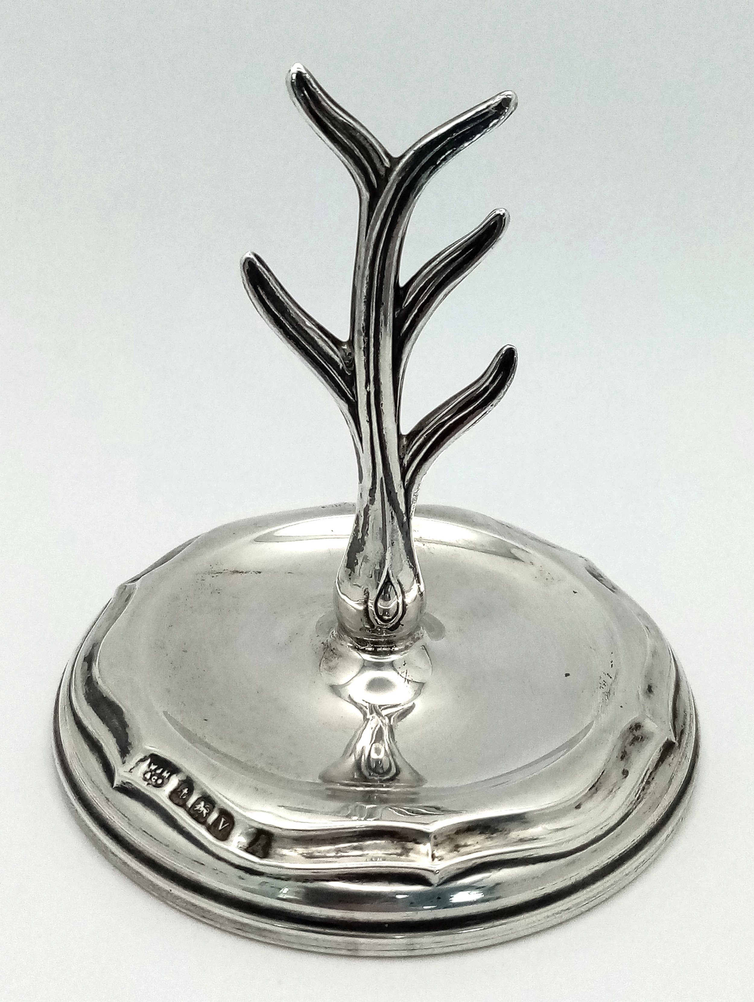 Classic Antique SILVER RING TREE. Clear Hallmark for W. J. Myatt Birmingham 1920.