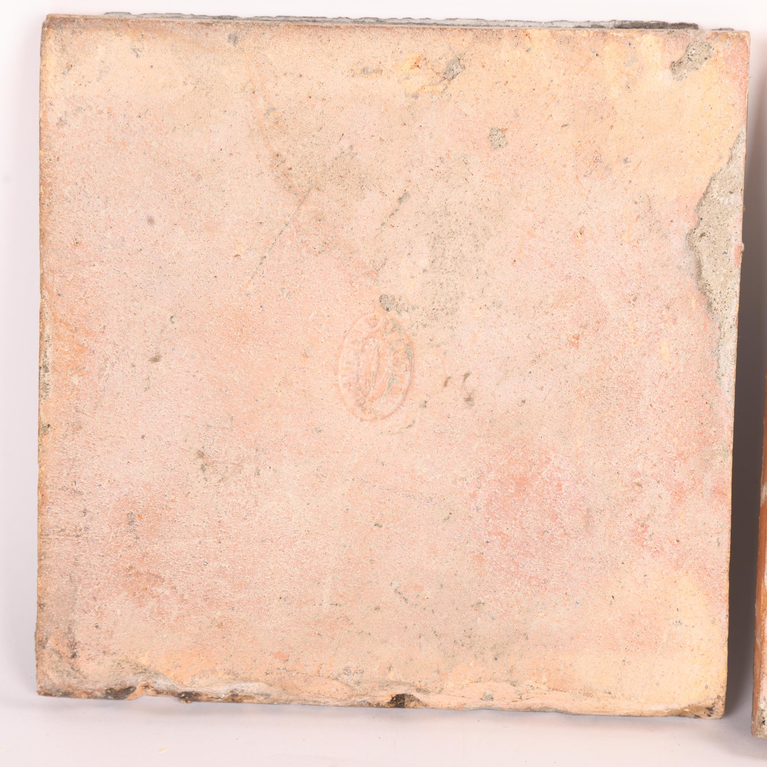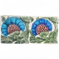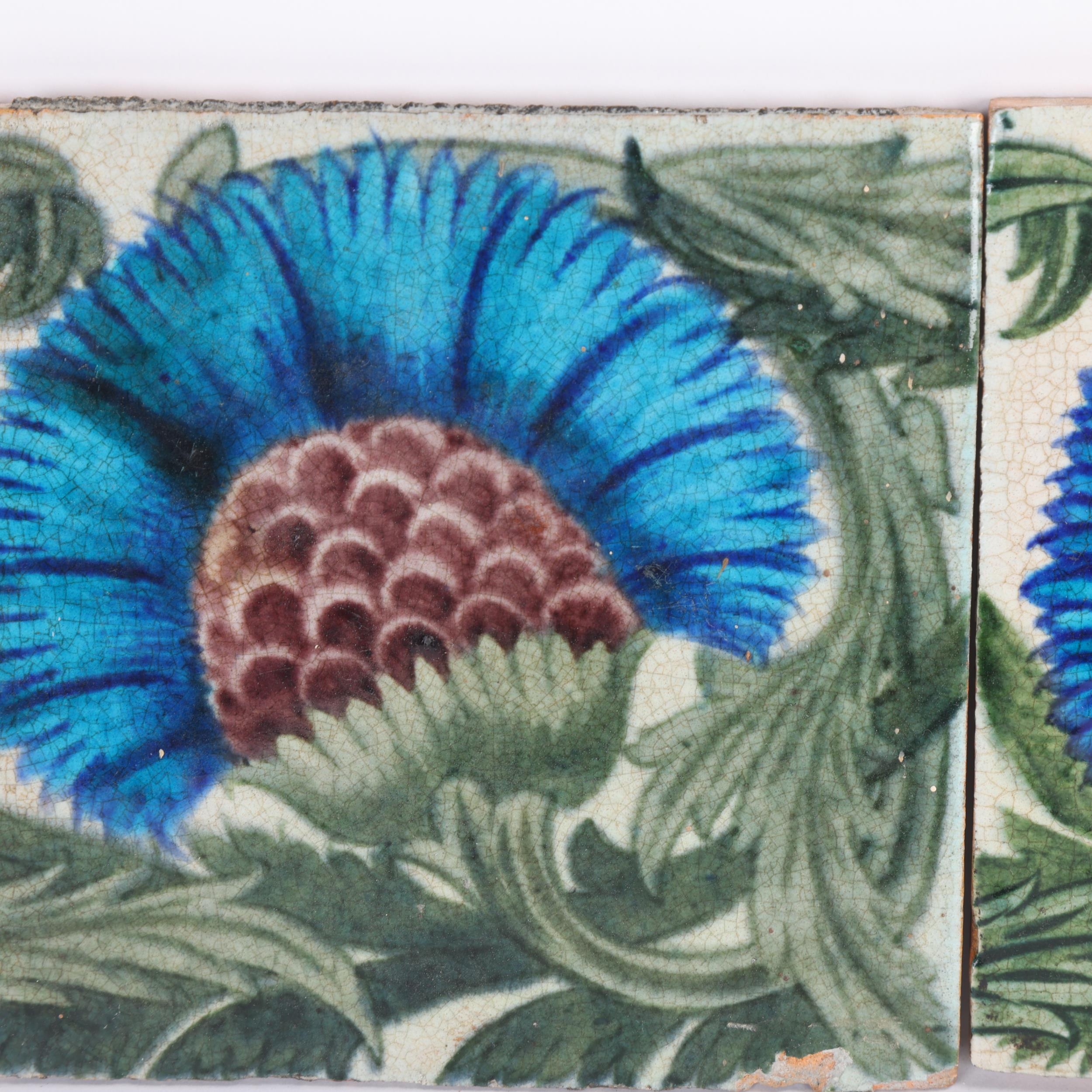 A pair of William De Morgan tiles, Persian inspired flower and foliage, maker's stamp to reverse, 15.6cm square