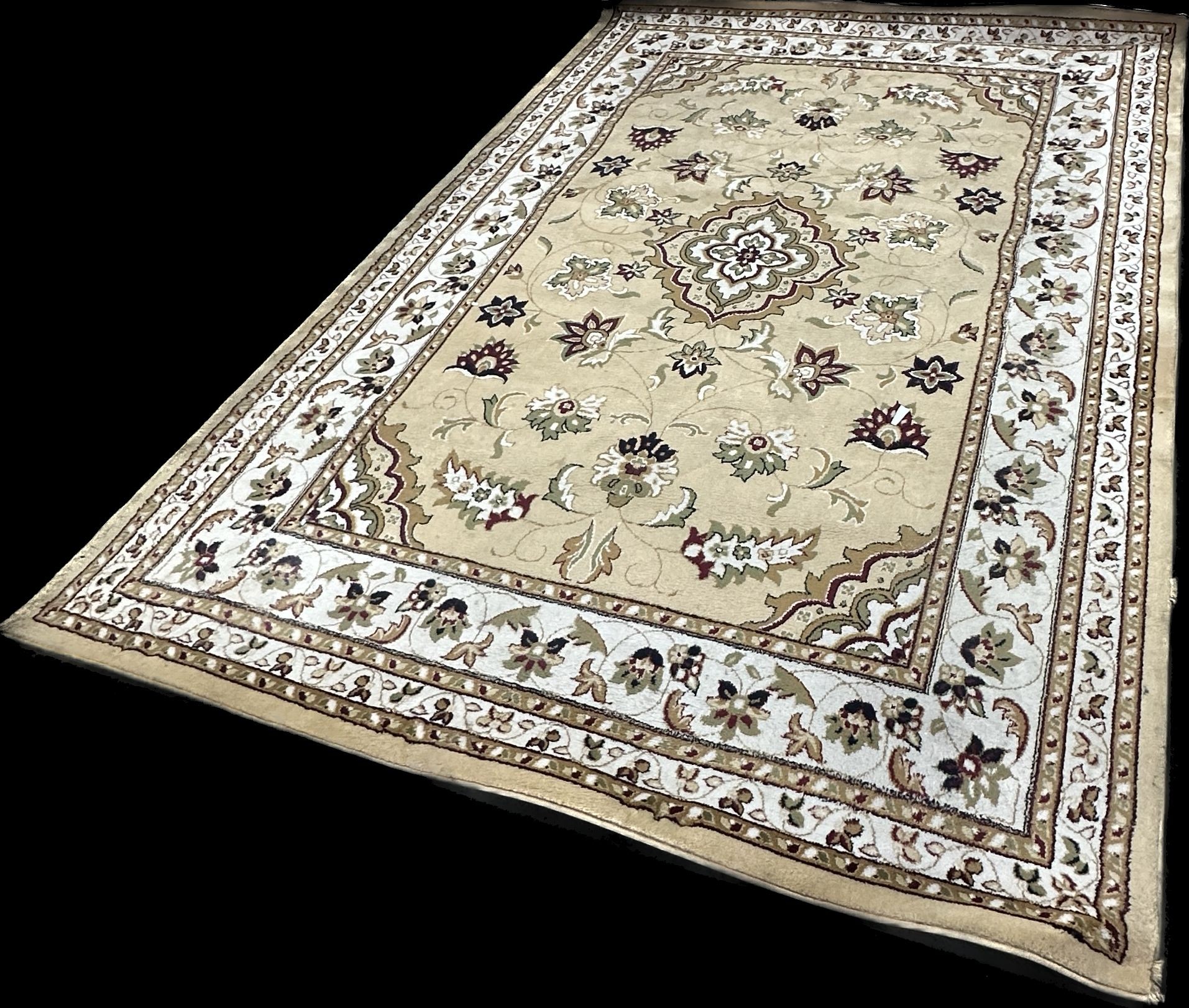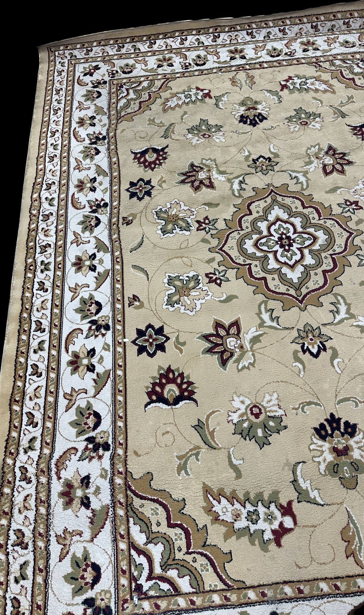 Large vintage rug measures approximately 114 inches long x 79 wide