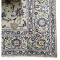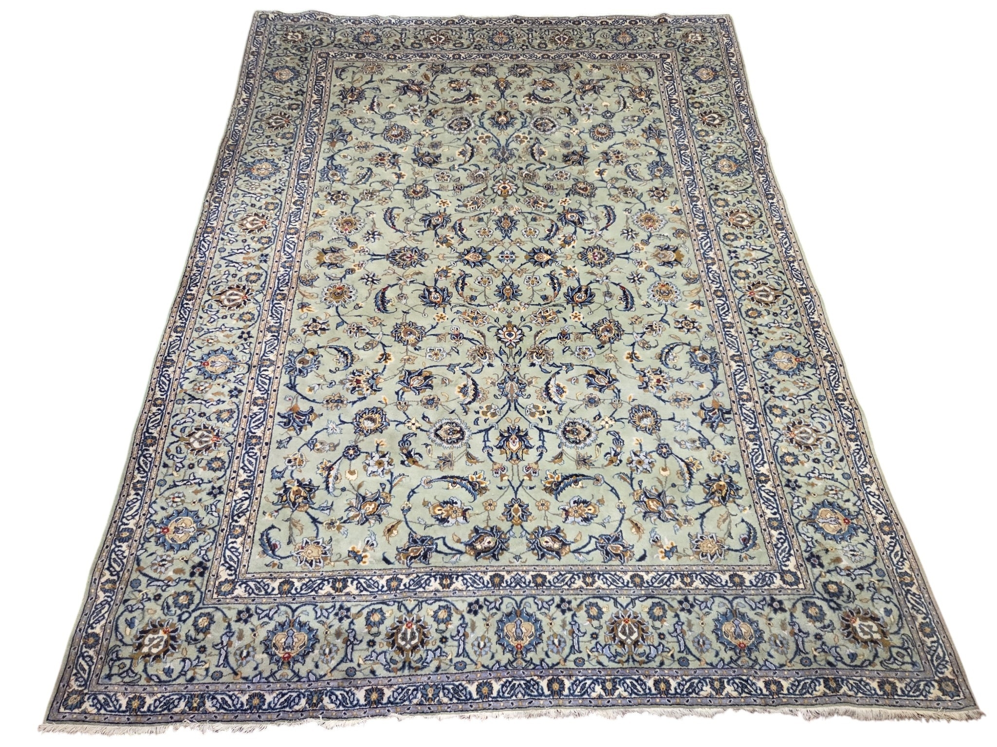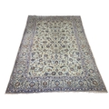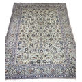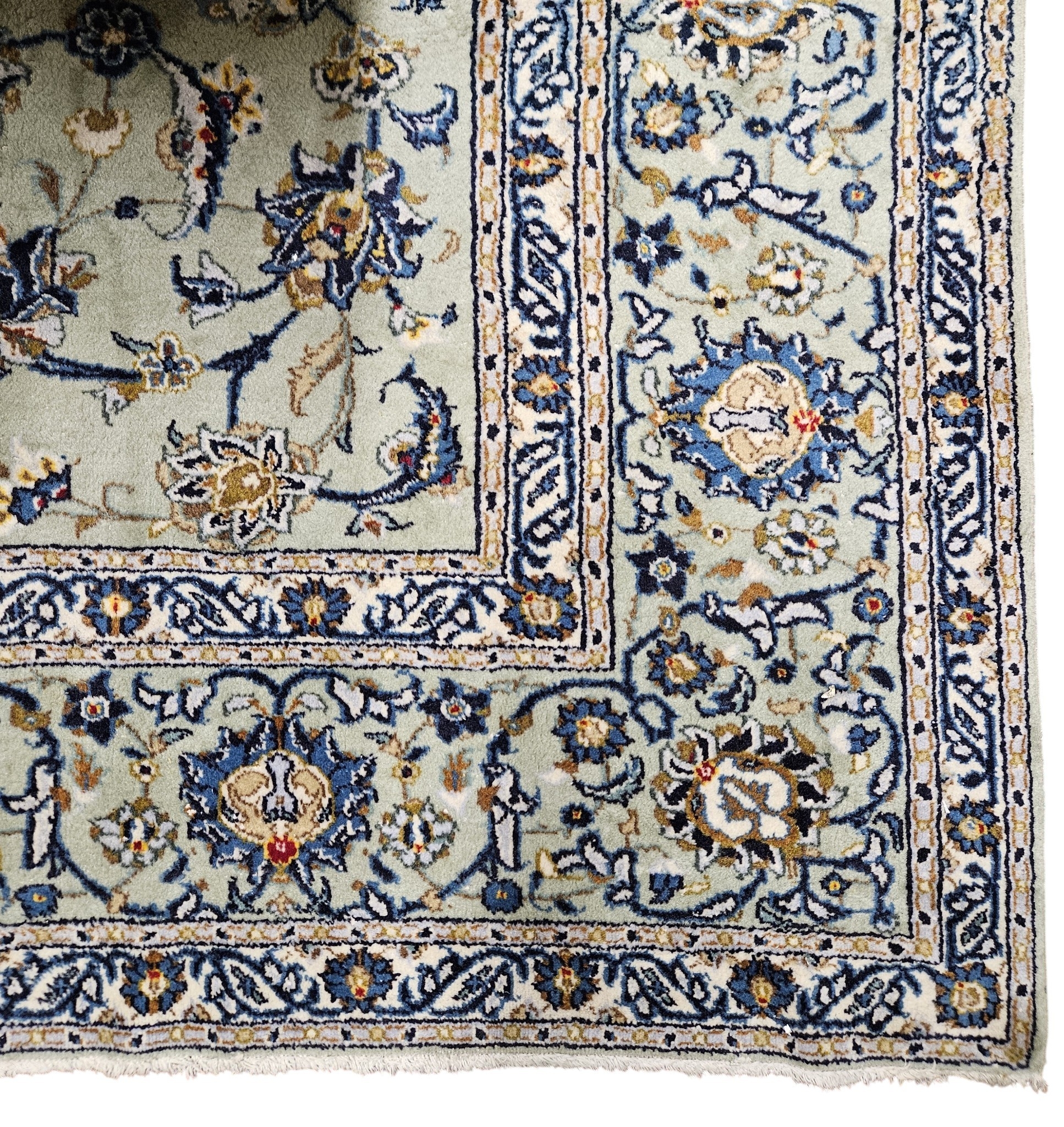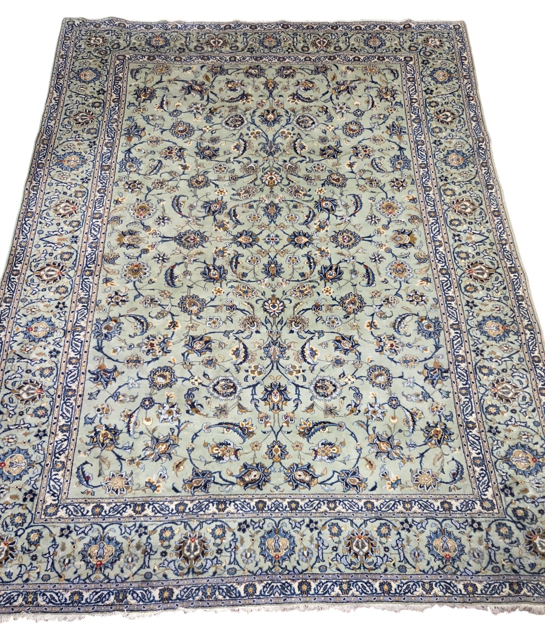 A large duck egg blue ground Persian Carpet with repeating borders and floral medallion design.