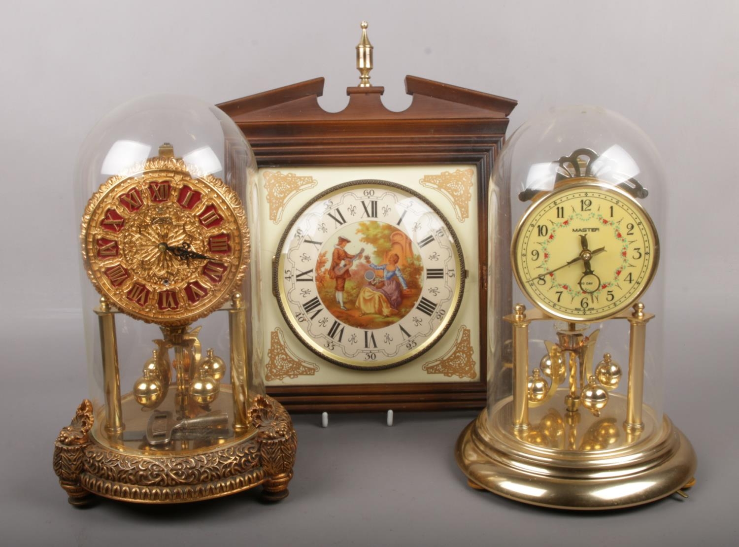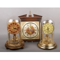 A West German Kern brass presentation torsion clock under glass dome, a similar Master 400 day clock and a framed wall clock dial only. Kern clock 32cm.