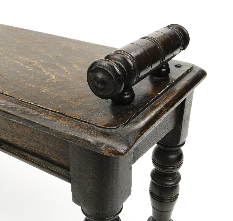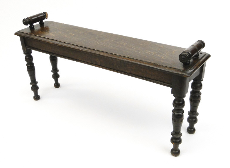 Victorian oak window seat with turned end supports and ring ...