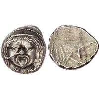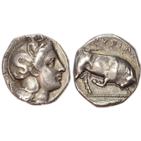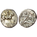 Youth on horseback right, holding branch. Rev. Taras riding dolphin left, bee in right field. (Vlasto 855; HN Italy 1029). Good Very Fine. Toning somewhat patchy. Unusual control mark of a bee.