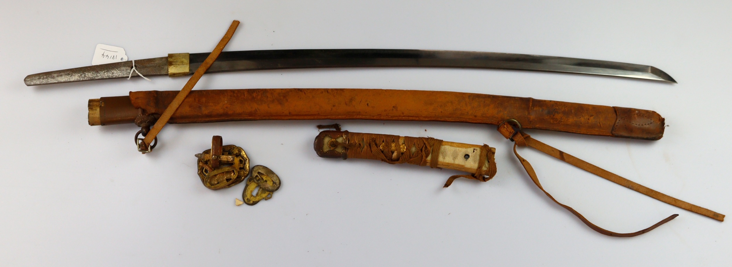 Japanese NCO Sword with scabbard, tang signed, blade approx 25.5 inches