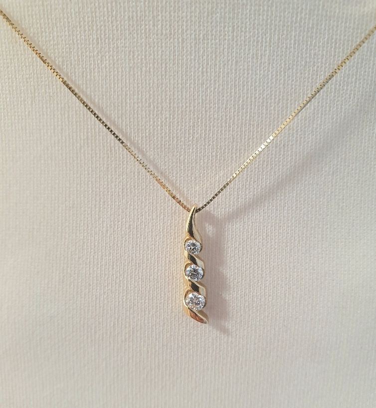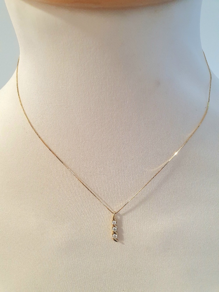 18ct Gold Fine Chain with Three Diamond Pendant, weight 2.4g
