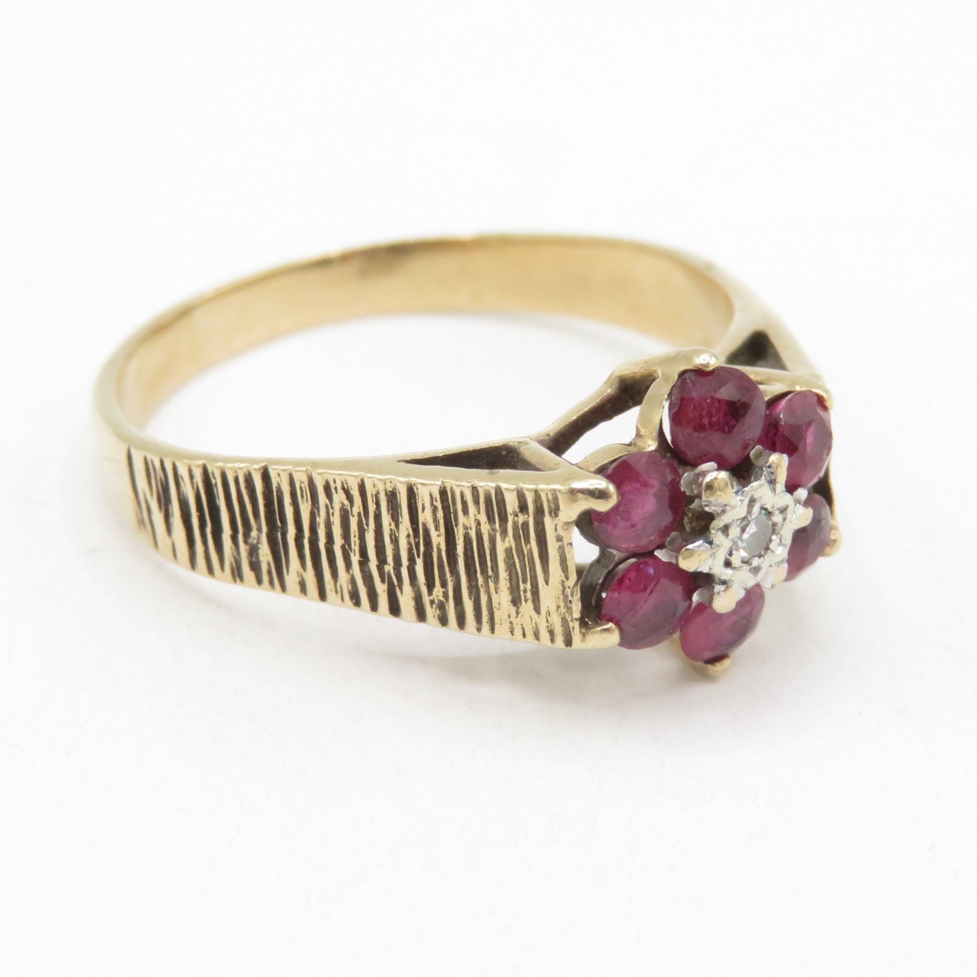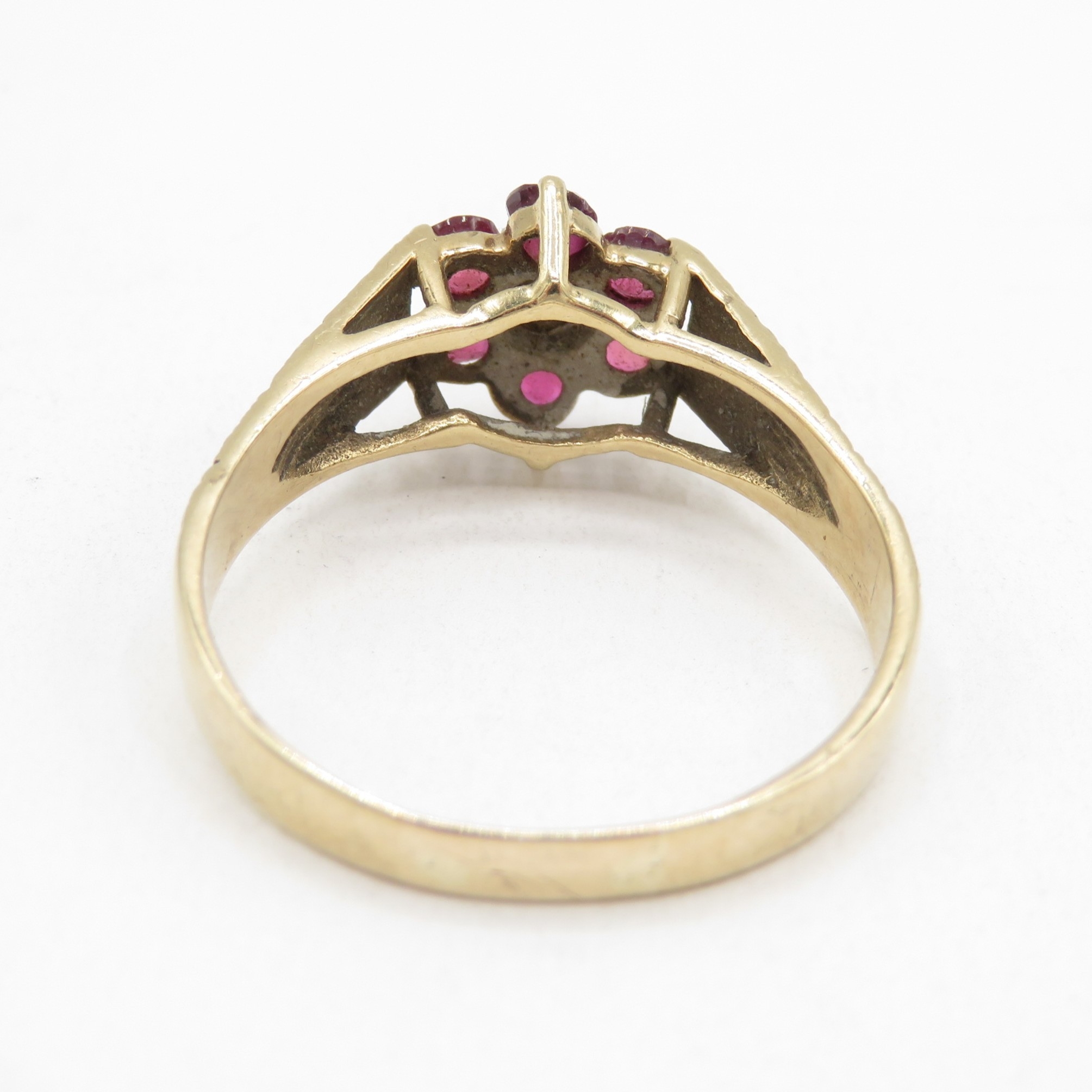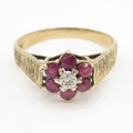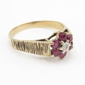 9ct gold ruby and diamond floral cluster ring (3.1g) size U