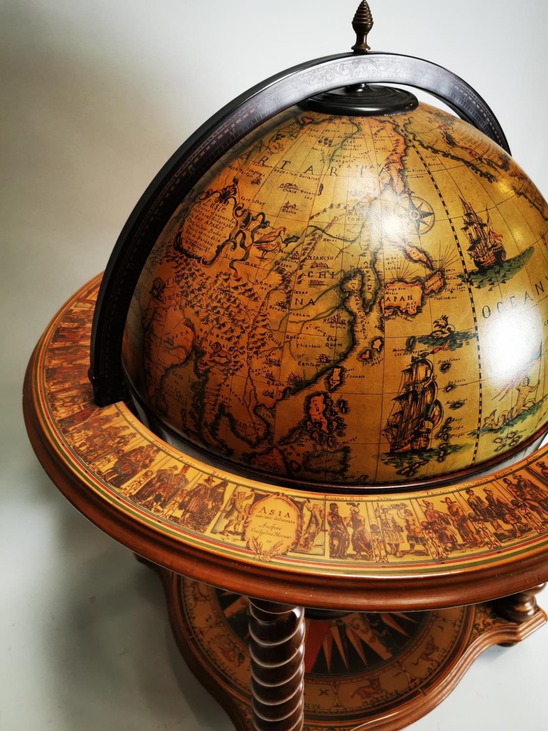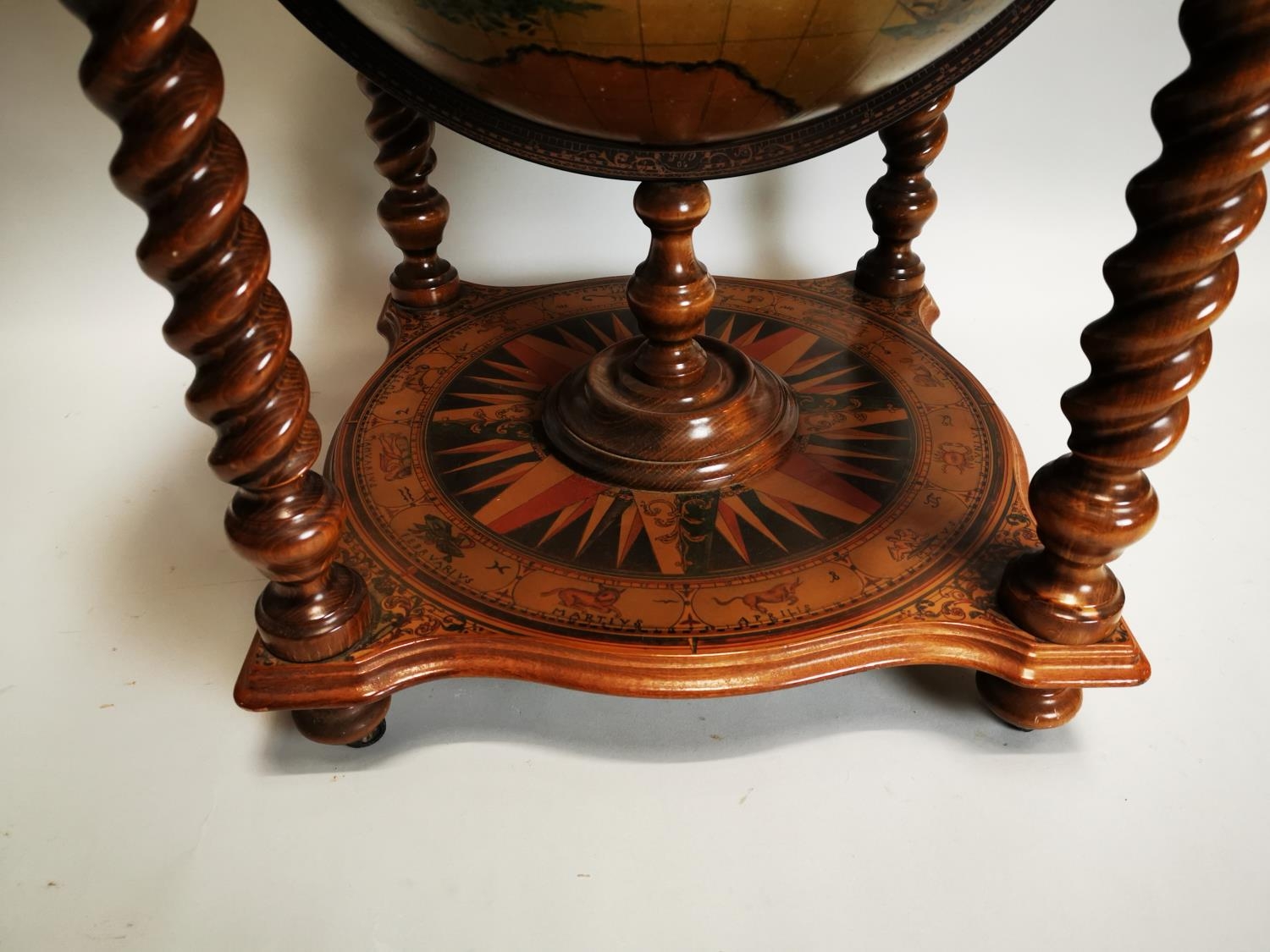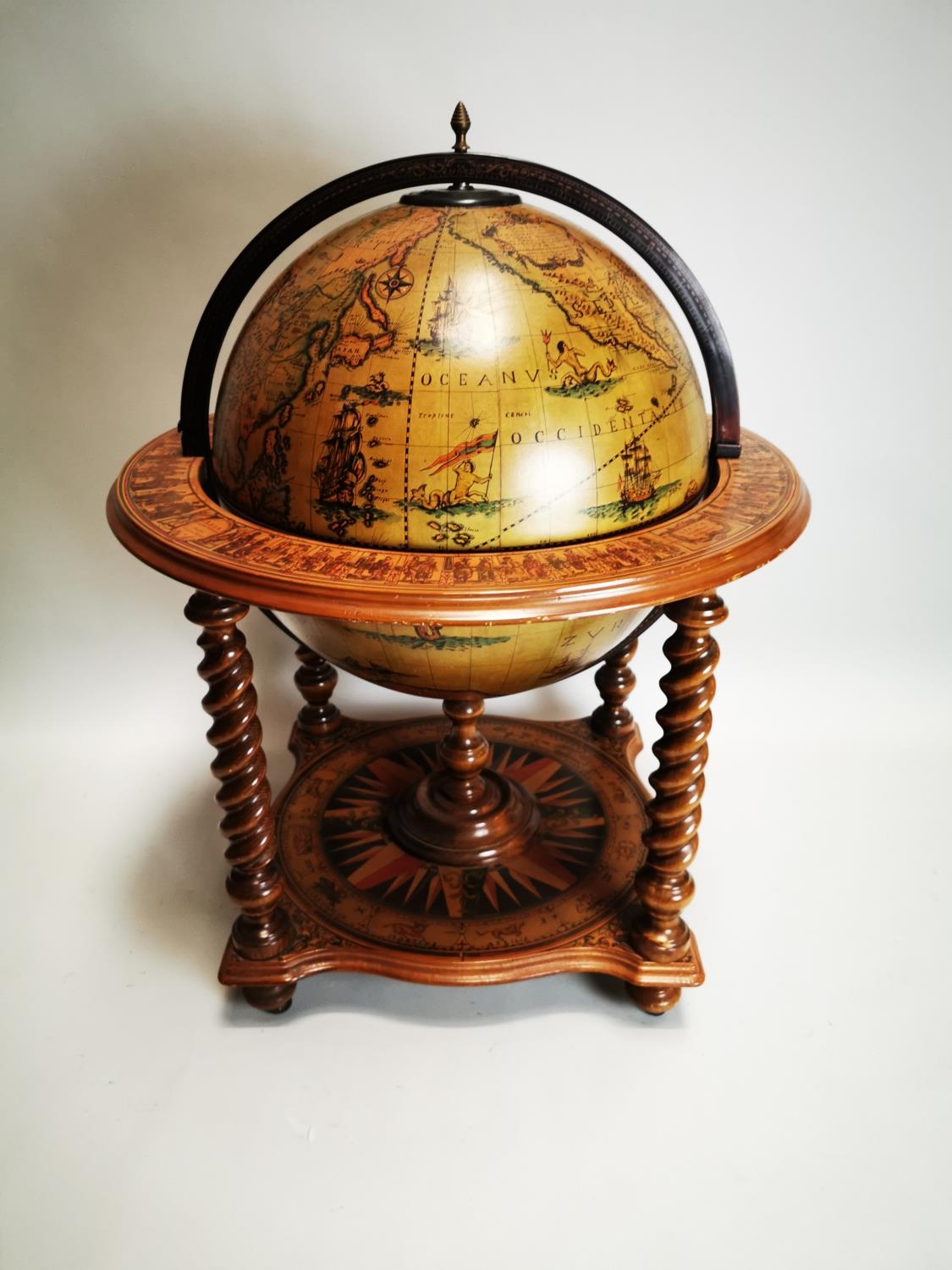 Exceptional quality Terrestrial globe in the form of a drink's cabinet { 104cm H X 75cm Dia }.