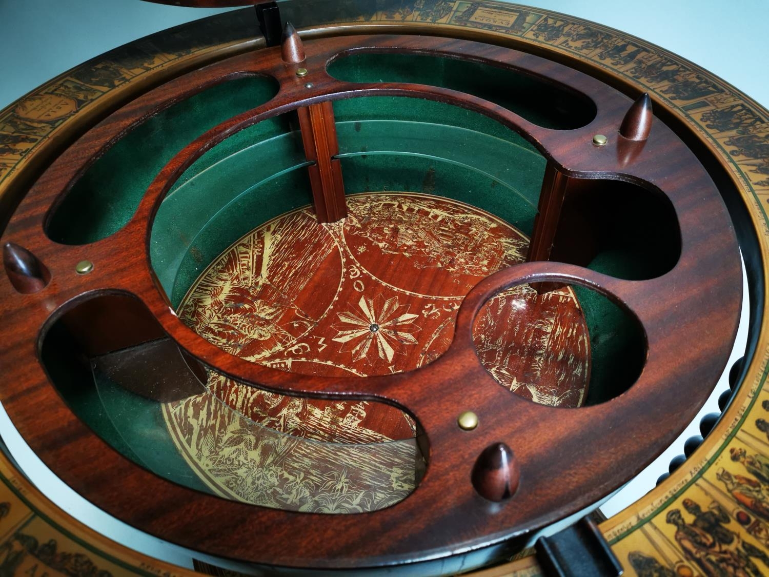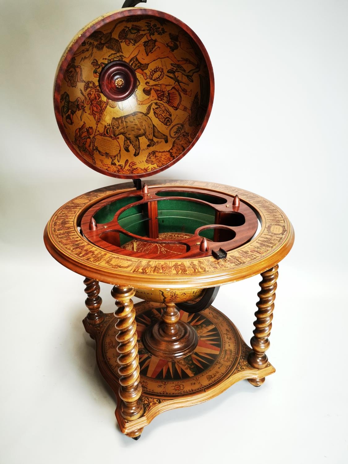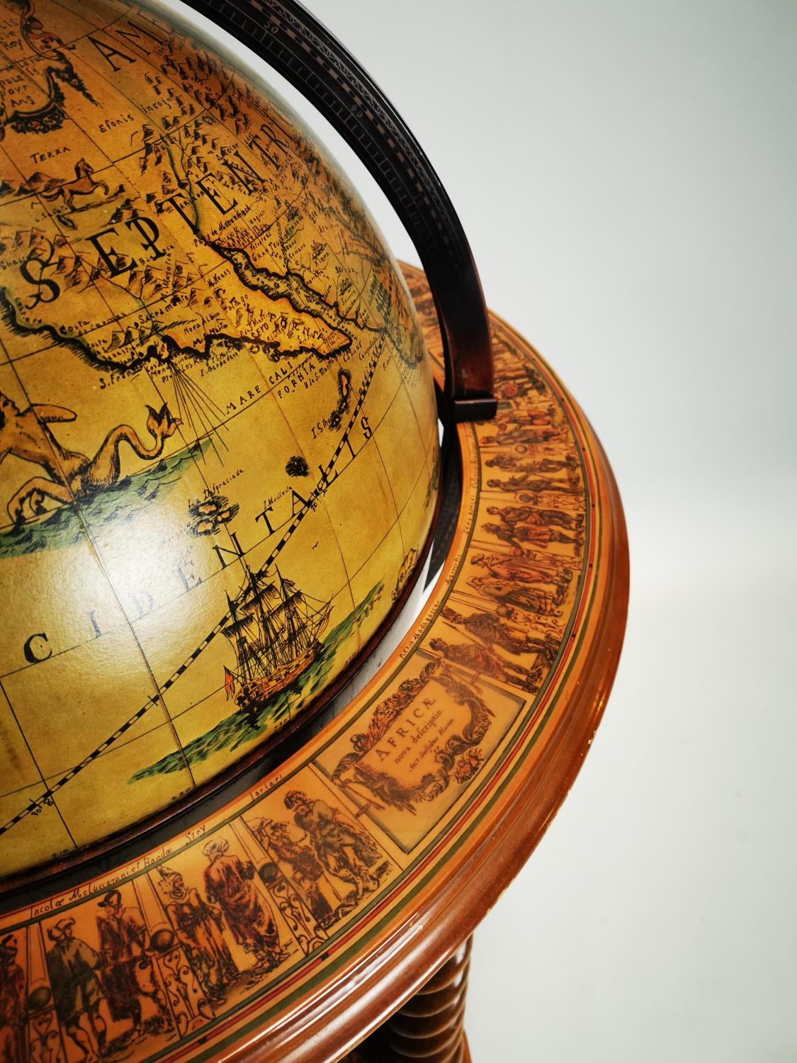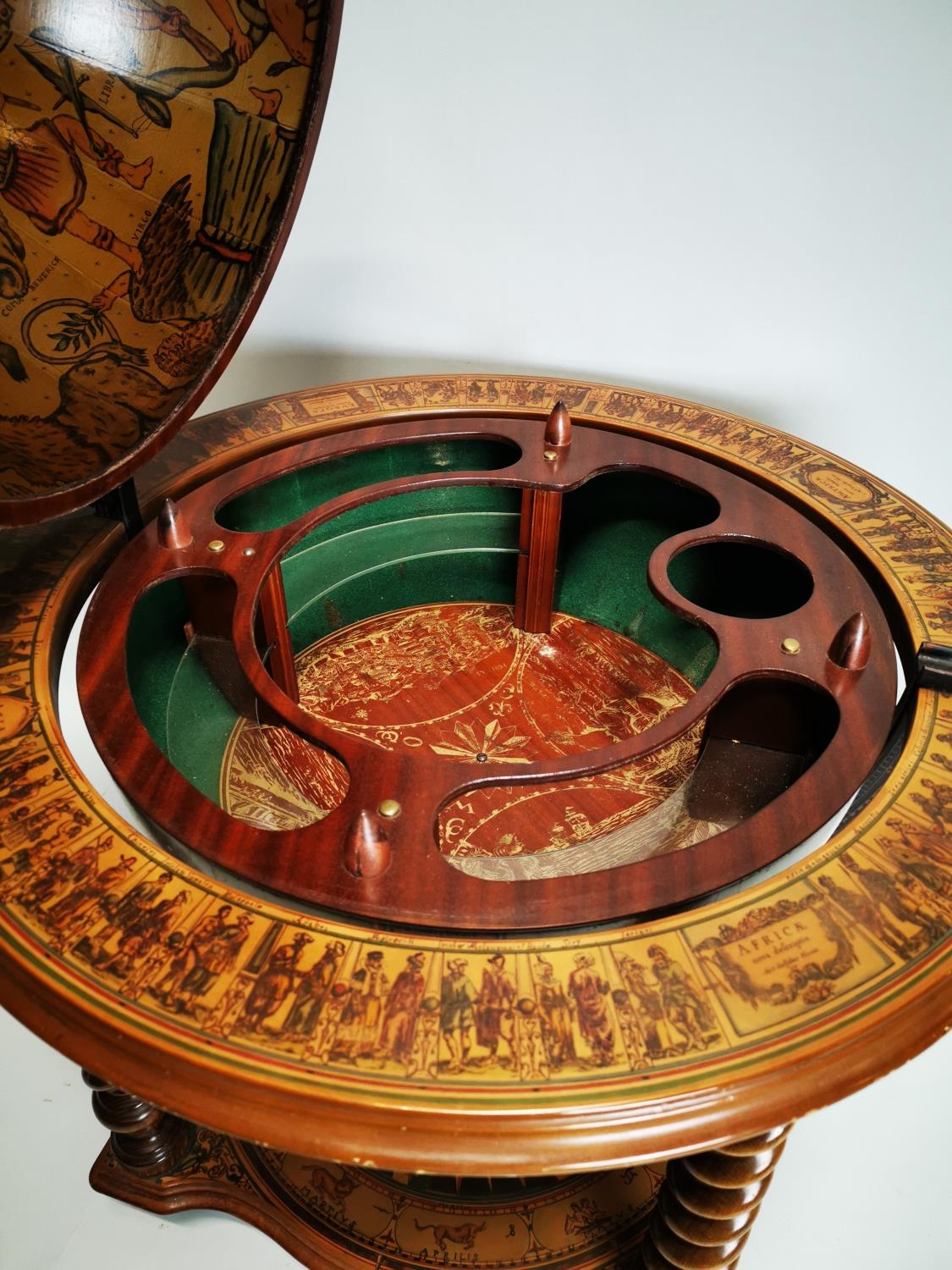 Exceptional quality Terrestrial globe in the form of a drink's cabinet { 104cm H X 75cm Dia }.