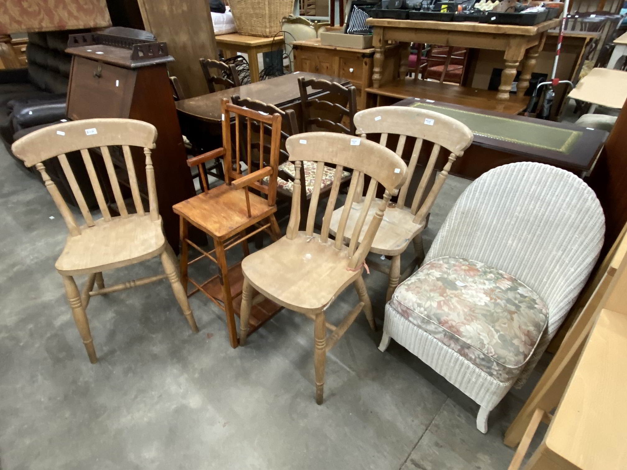 3 pine kitchen chairs etc