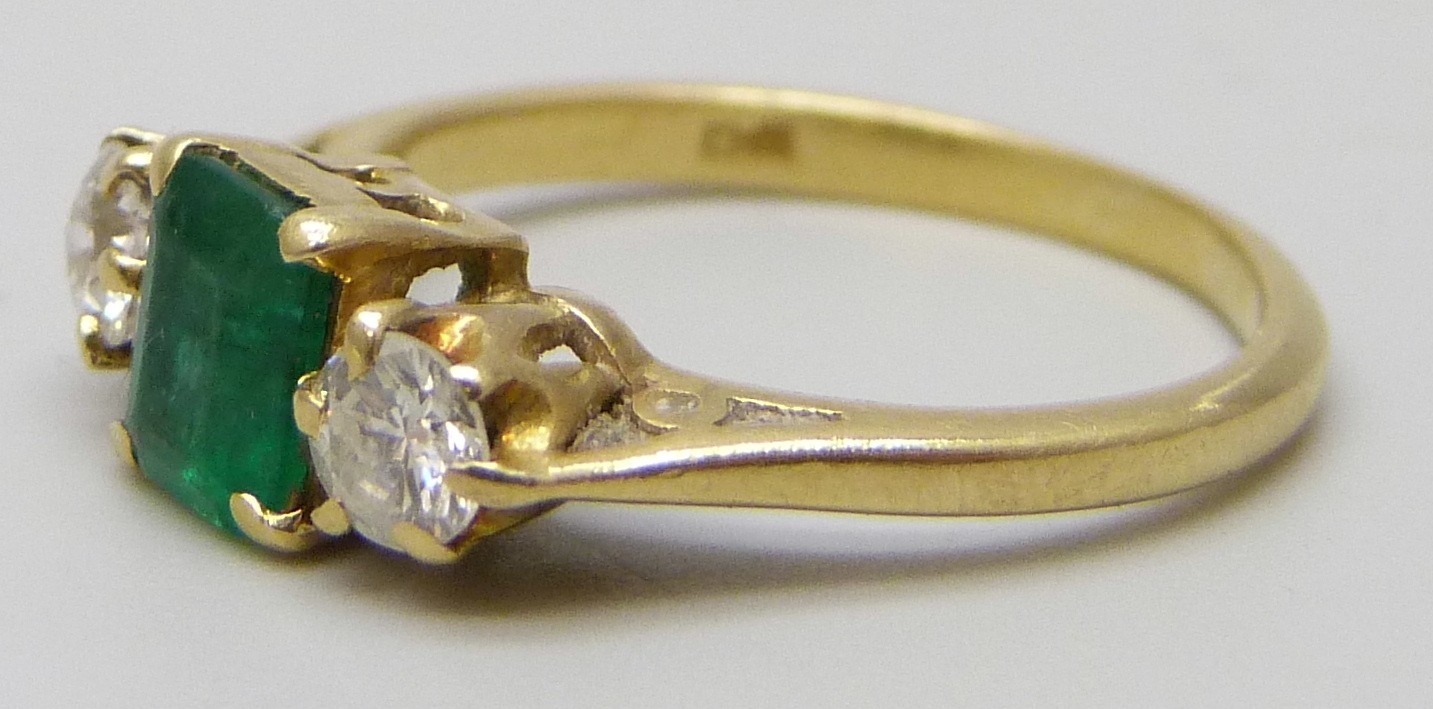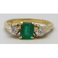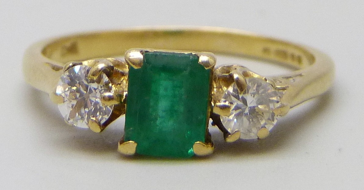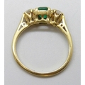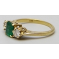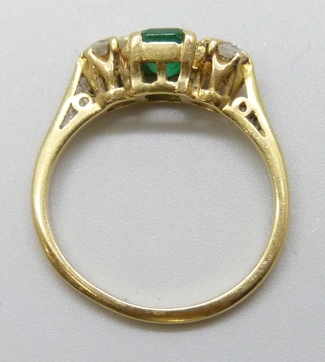 An 18ct yellow gold, emerald and diamond ring, 2.6g, I/J, band slightly misshapen