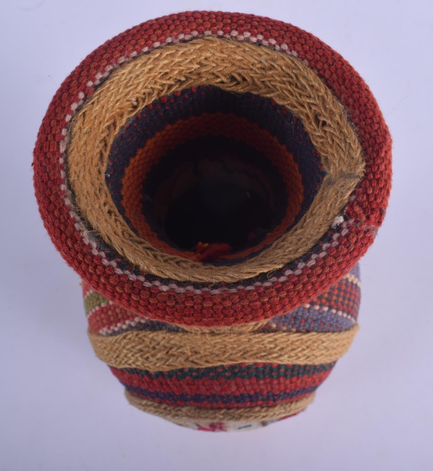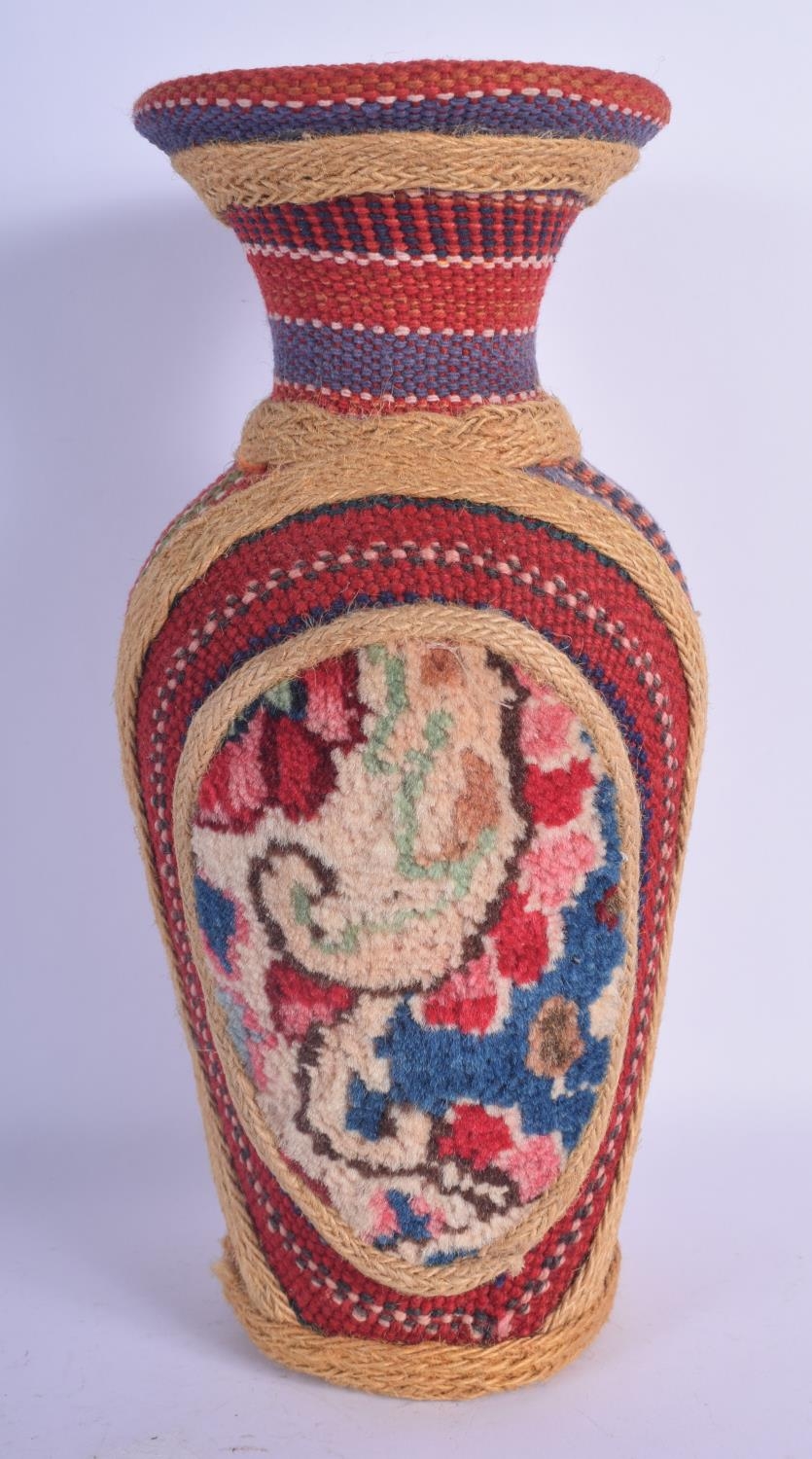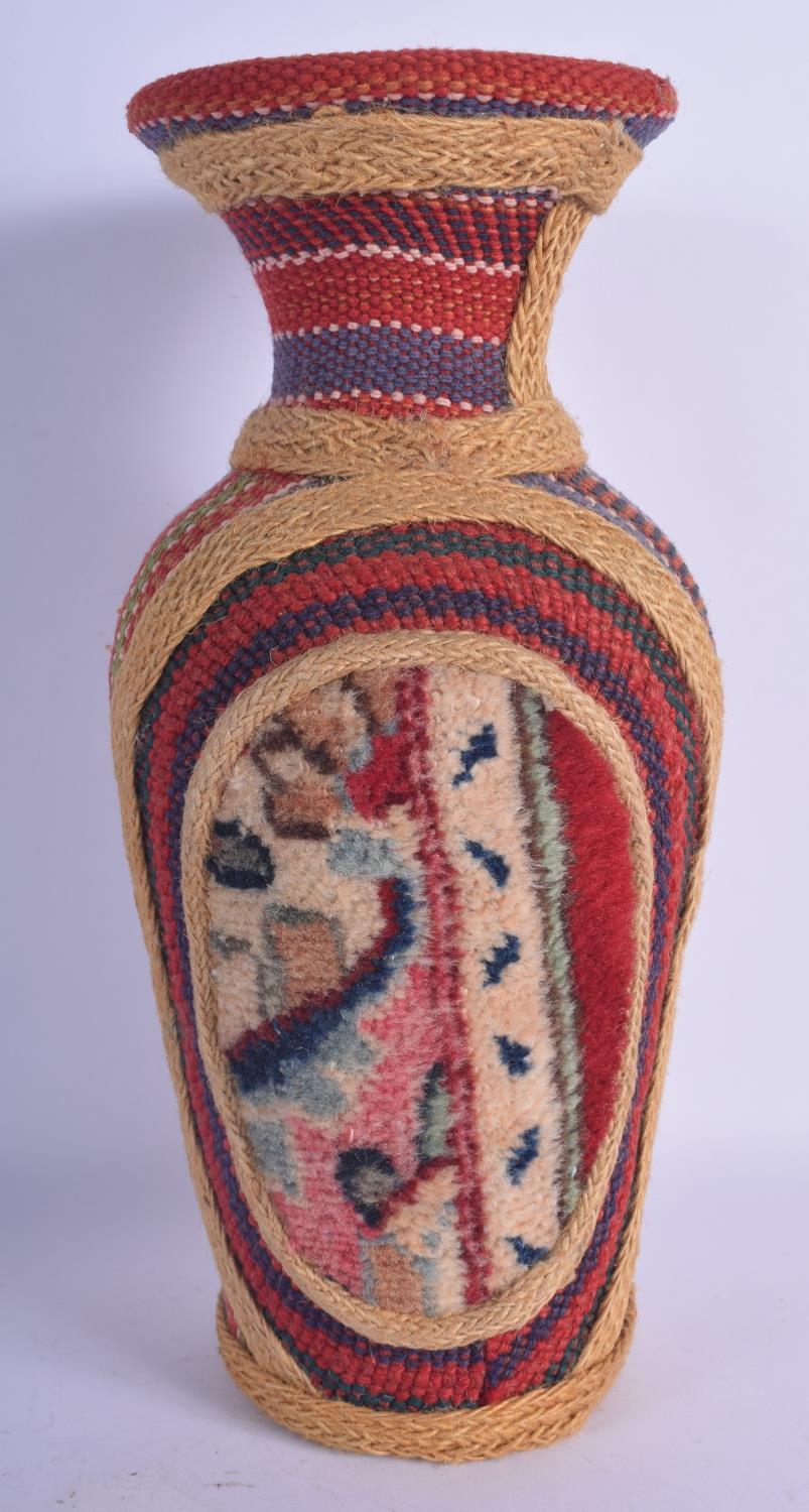 AN EARLY 20TH CENTURY SOUTH AMERICAN OVERLAID POTTERY VASE decorated with motifs. 29 cm high.
