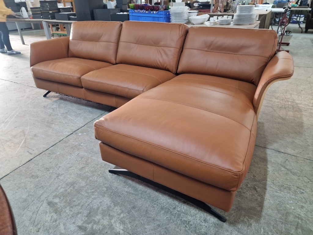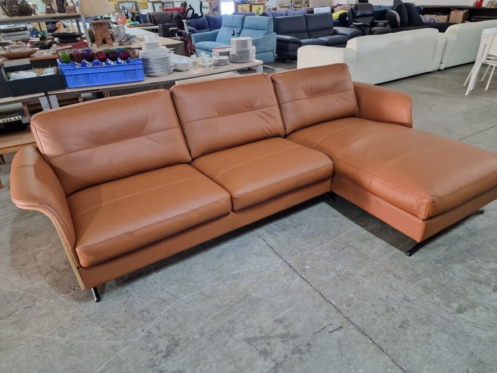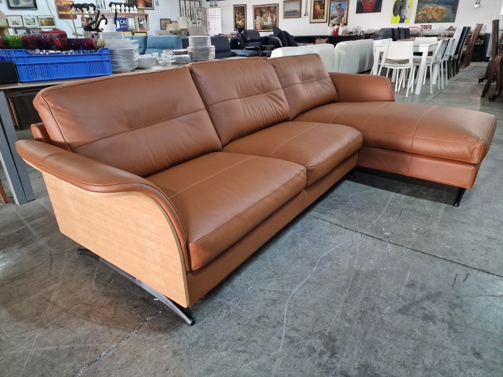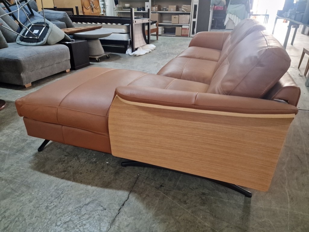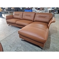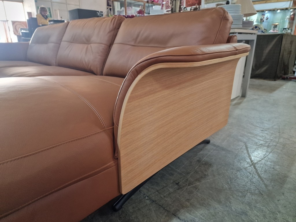Flexflux 'Glow' L-Shaped Corner Sofa / Chaise Sofa in Old Chestnut Brown Colour Genuine Leather Over Bent Wood End Panels From the Modern Scandinavian Design, Super Comfortable with High-Quality Seat Structure with Spring Core, (Approx. 275 x 90-160 x 82cm)