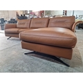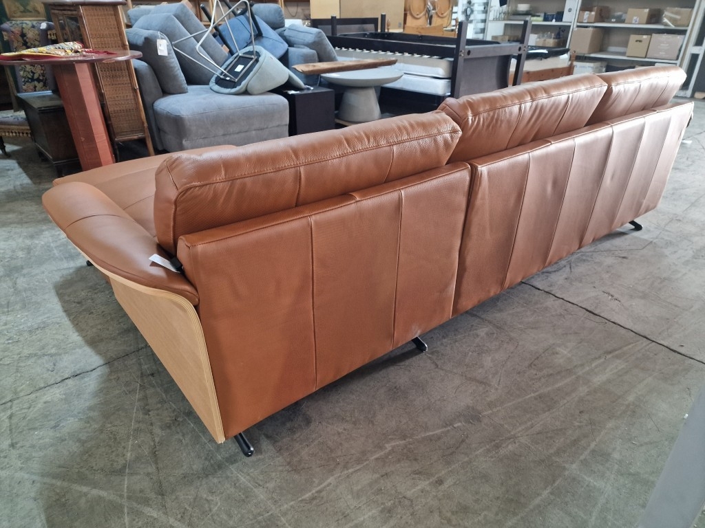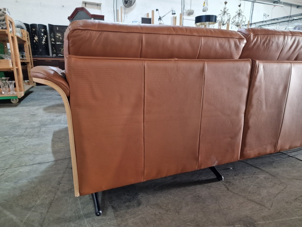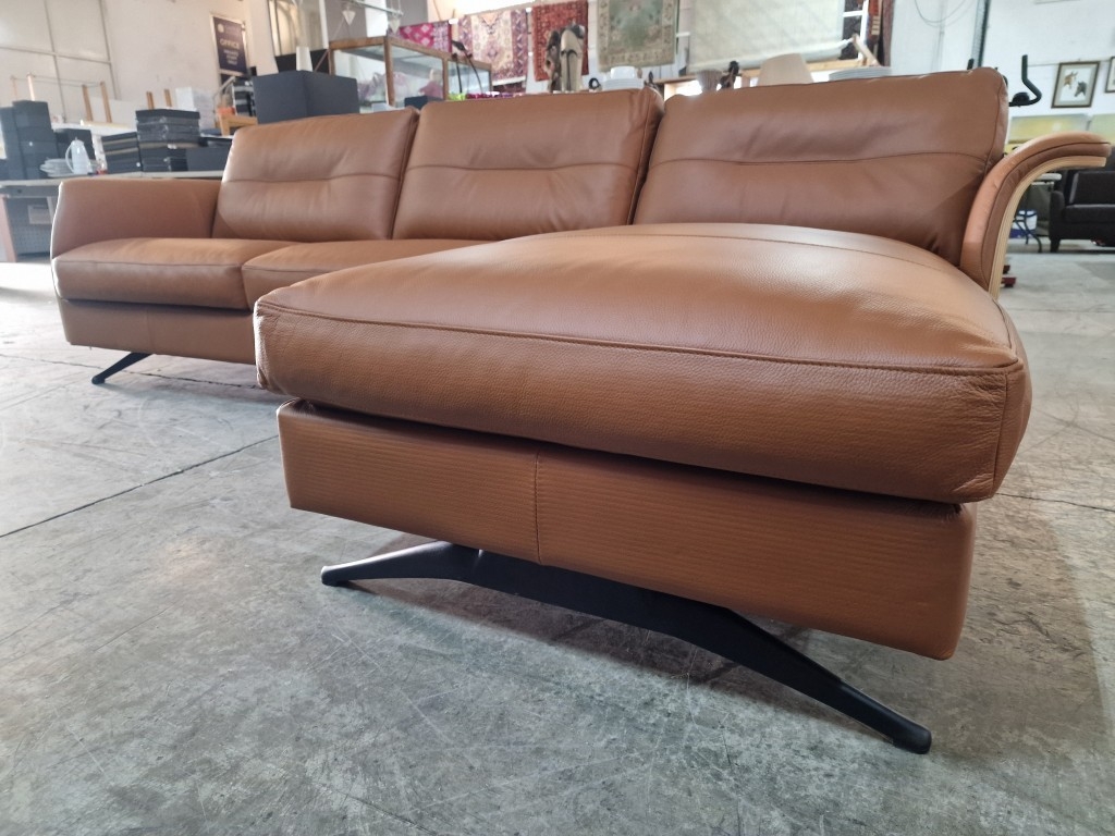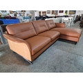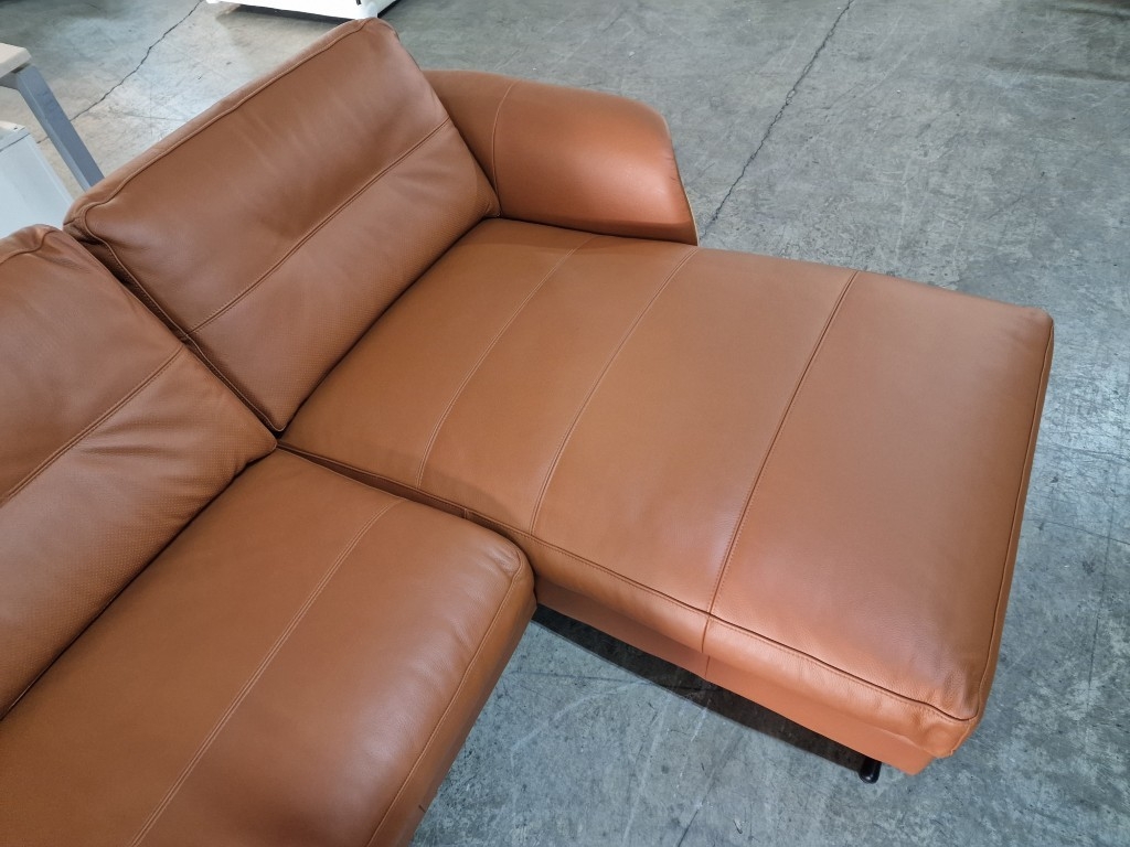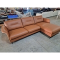 Flexflux 'Glow' L-Shaped Corner Sofa / Chaise Sofa in Old Chestnut Brown Colour Genuine Leather Over Bent Wood End Panels From the Modern Scandinavian Design, Super Comfortable with High-Quality Seat Structure with Spring Core, (Approx. 275 x 90-160 x 82cm)