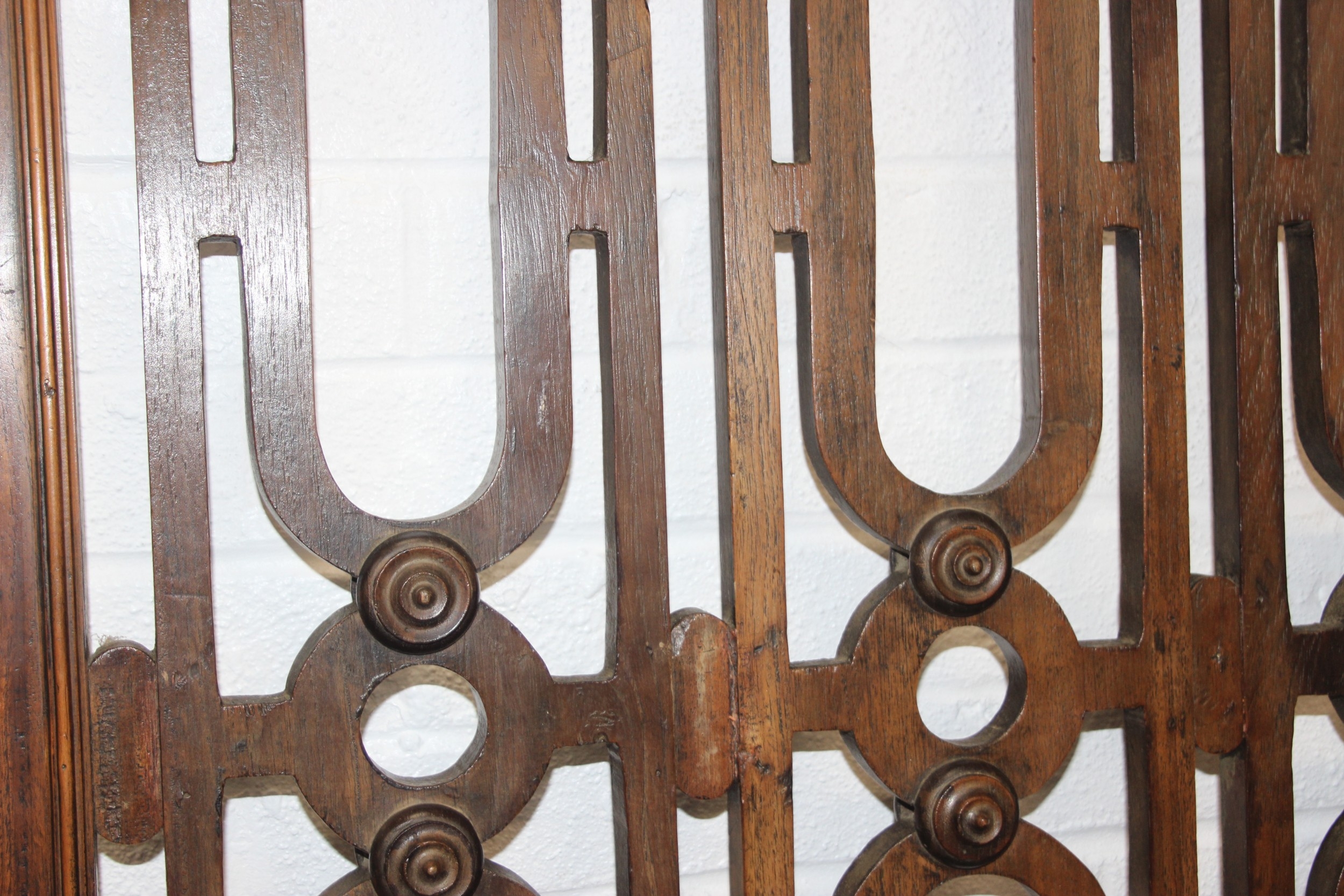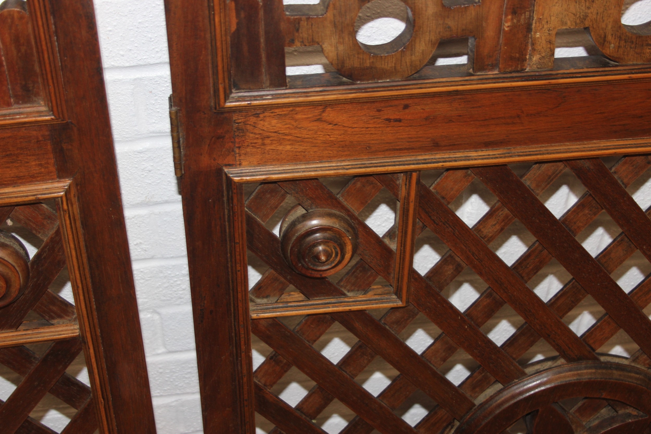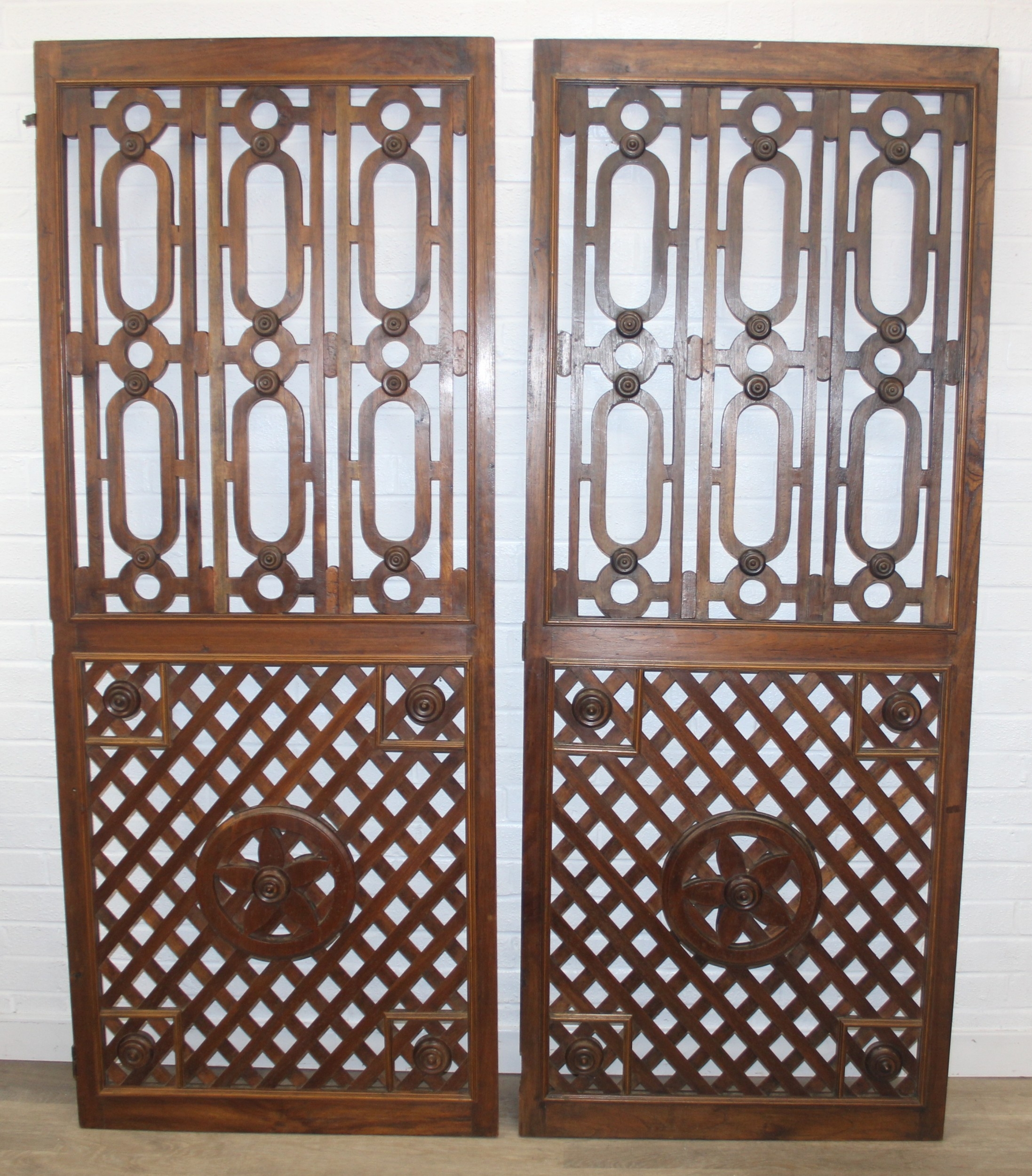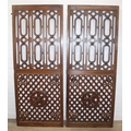 A pair of Chinese style hardwood doors or panels, lattice geometric design, believed to be late 19th or early 20th century, each 192cm x 77cm [2]