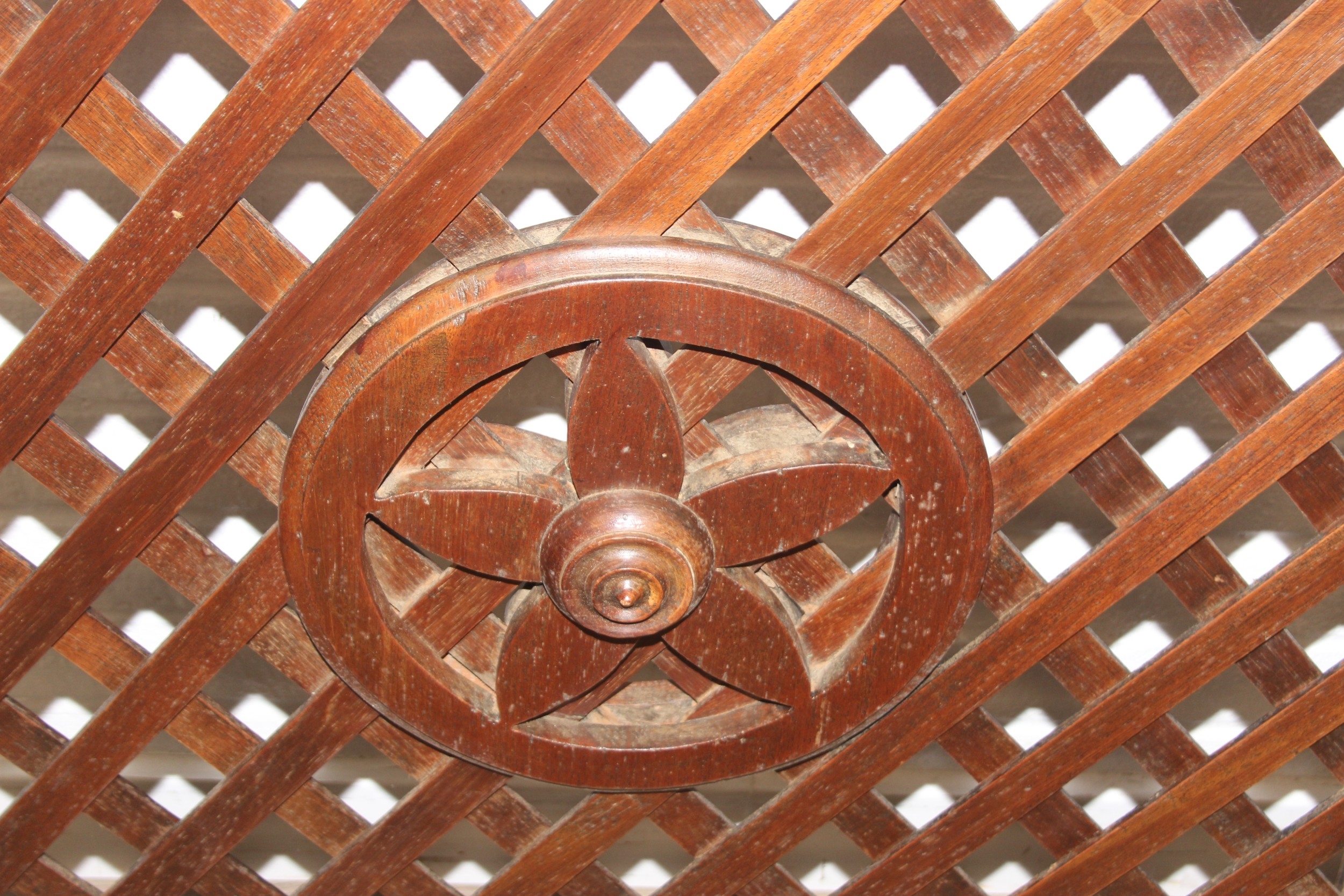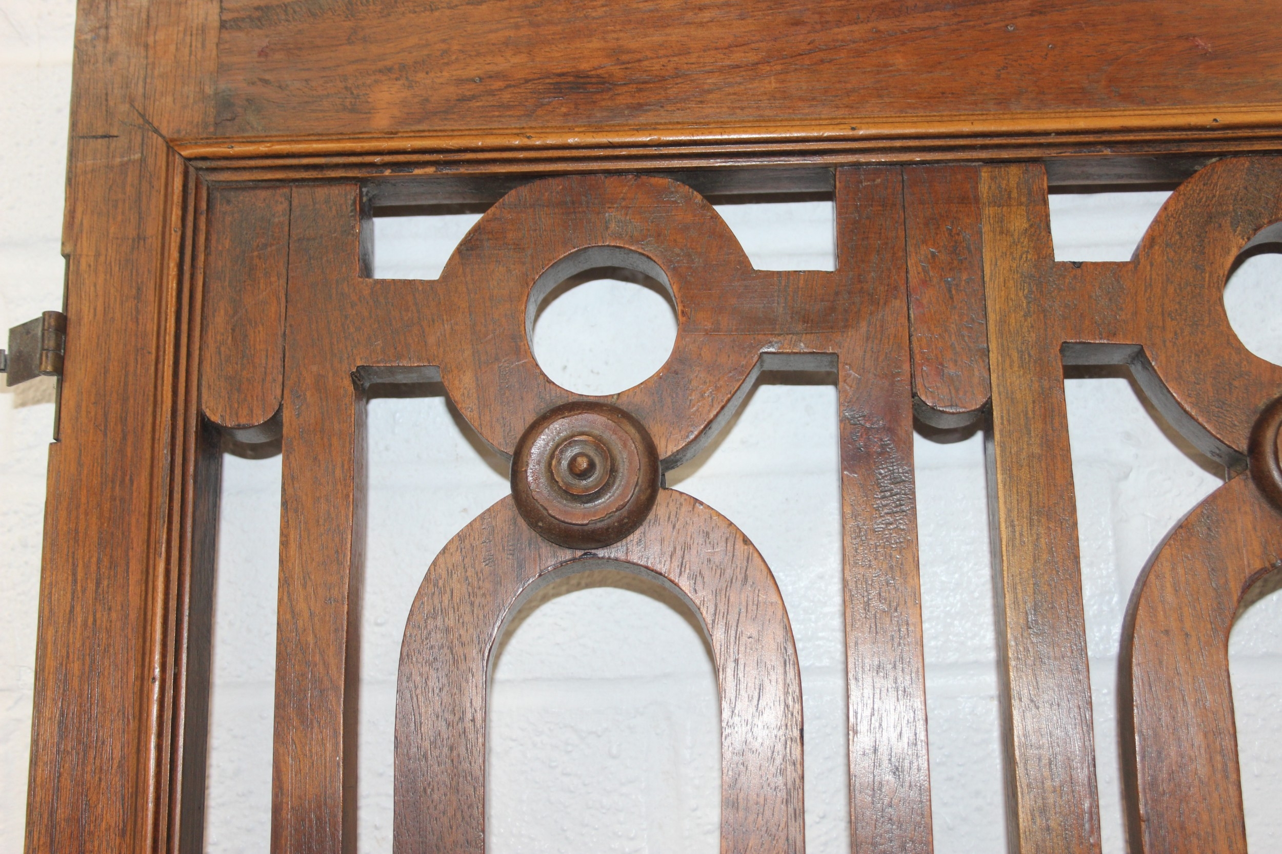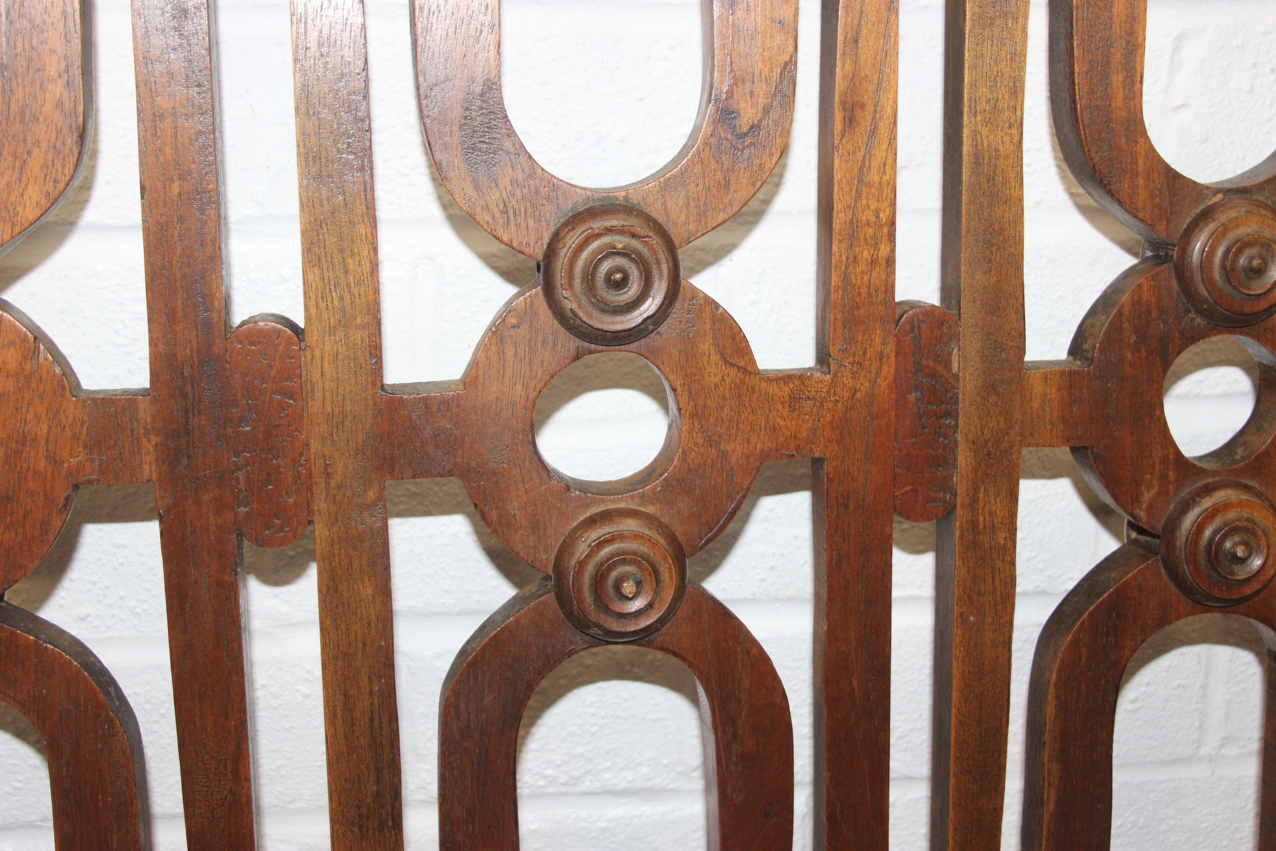 A pair of Chinese style hardwood doors or panels, lattice geometric design, believed to be late 19th or early 20th century, each 192cm x 77cm [2]