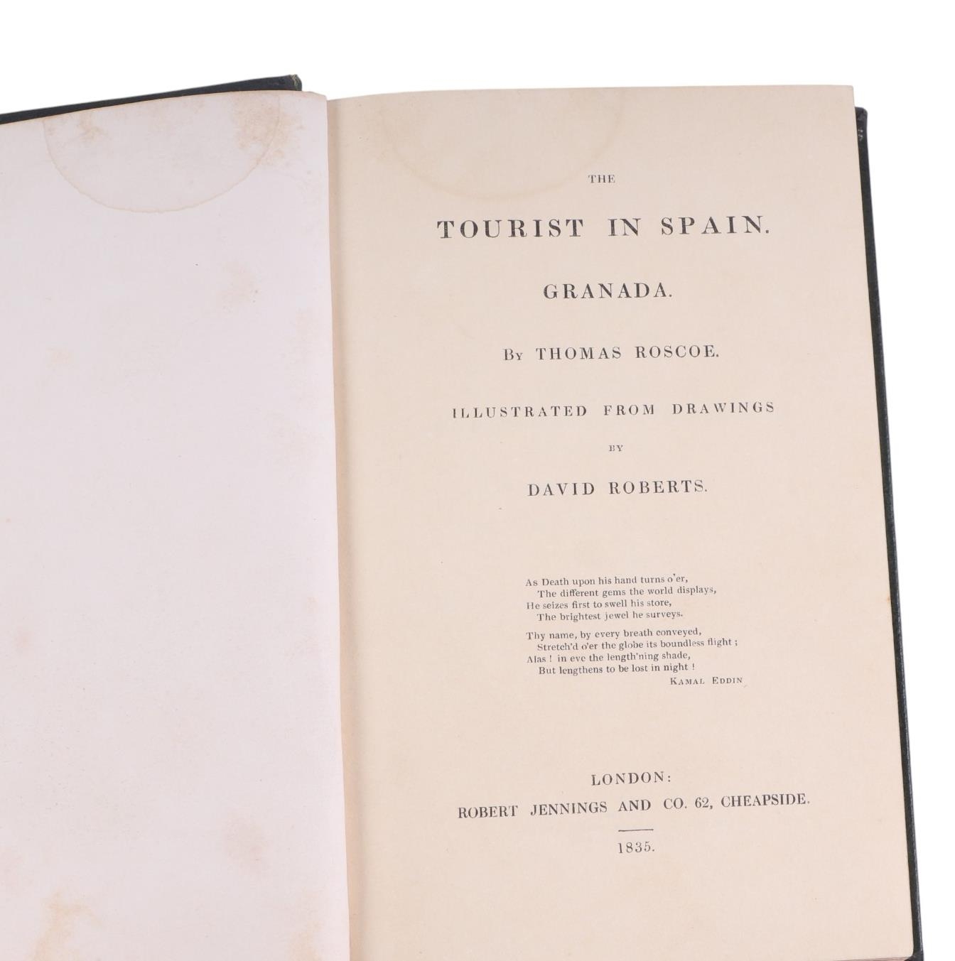 Roscoe (Thomas) The Tourist in Spain (Grenada) illustrated from drawings by David Roberts, published by Robert Jennings & Co., 62 Cheapside, 1835, tooled green leather end boards with green tooling.