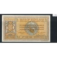 Banknotes; Scotland; Bank of Scotland; 1927 (10 March) £1 note. Attractive note in VF+ condition. PMS BA89e