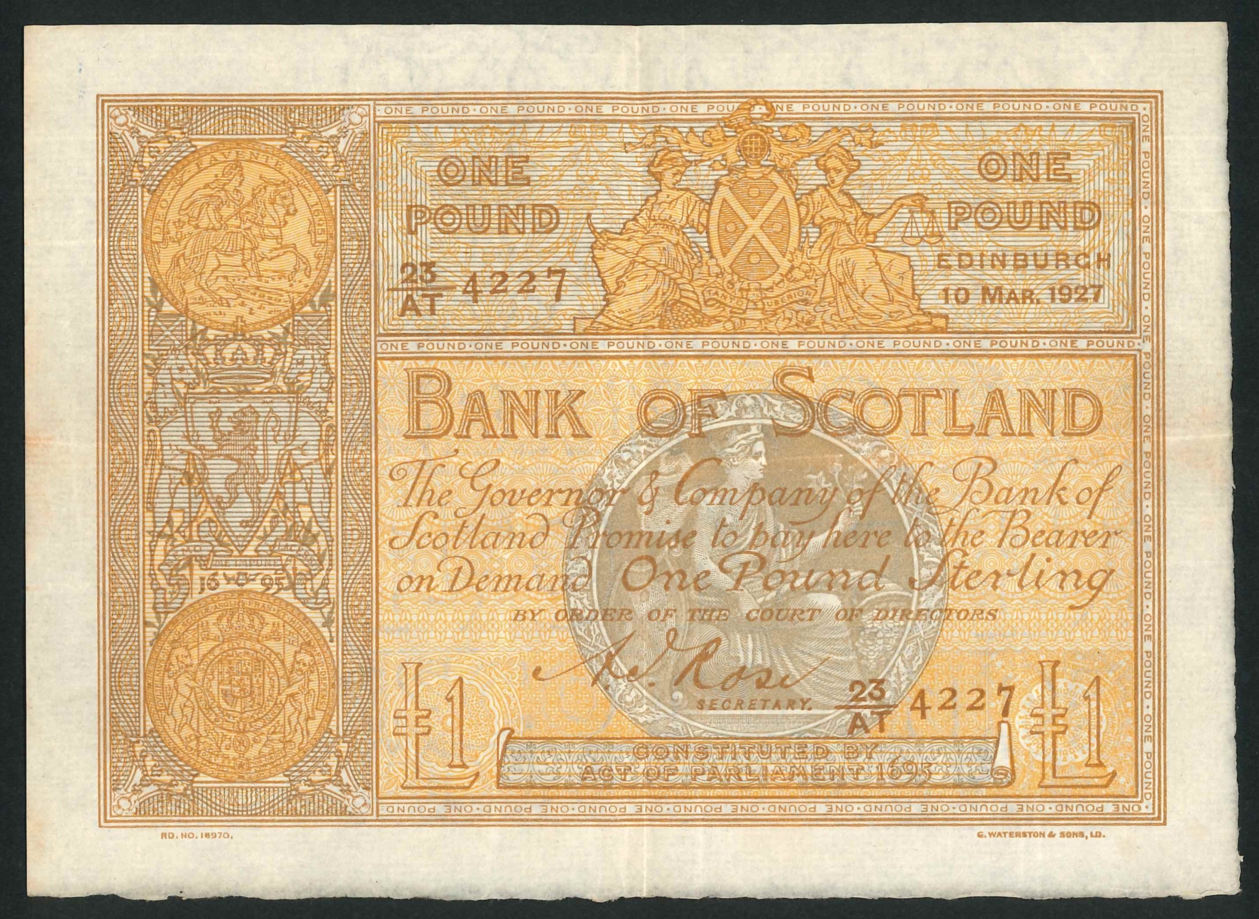Banknotes; Scotland; Bank of Scotland; 1927 (10 March) £1 no...