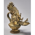 An Indian brass Ganesh form votive oil lamp, late 19th / early 20th c, 34cm h