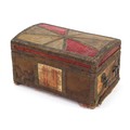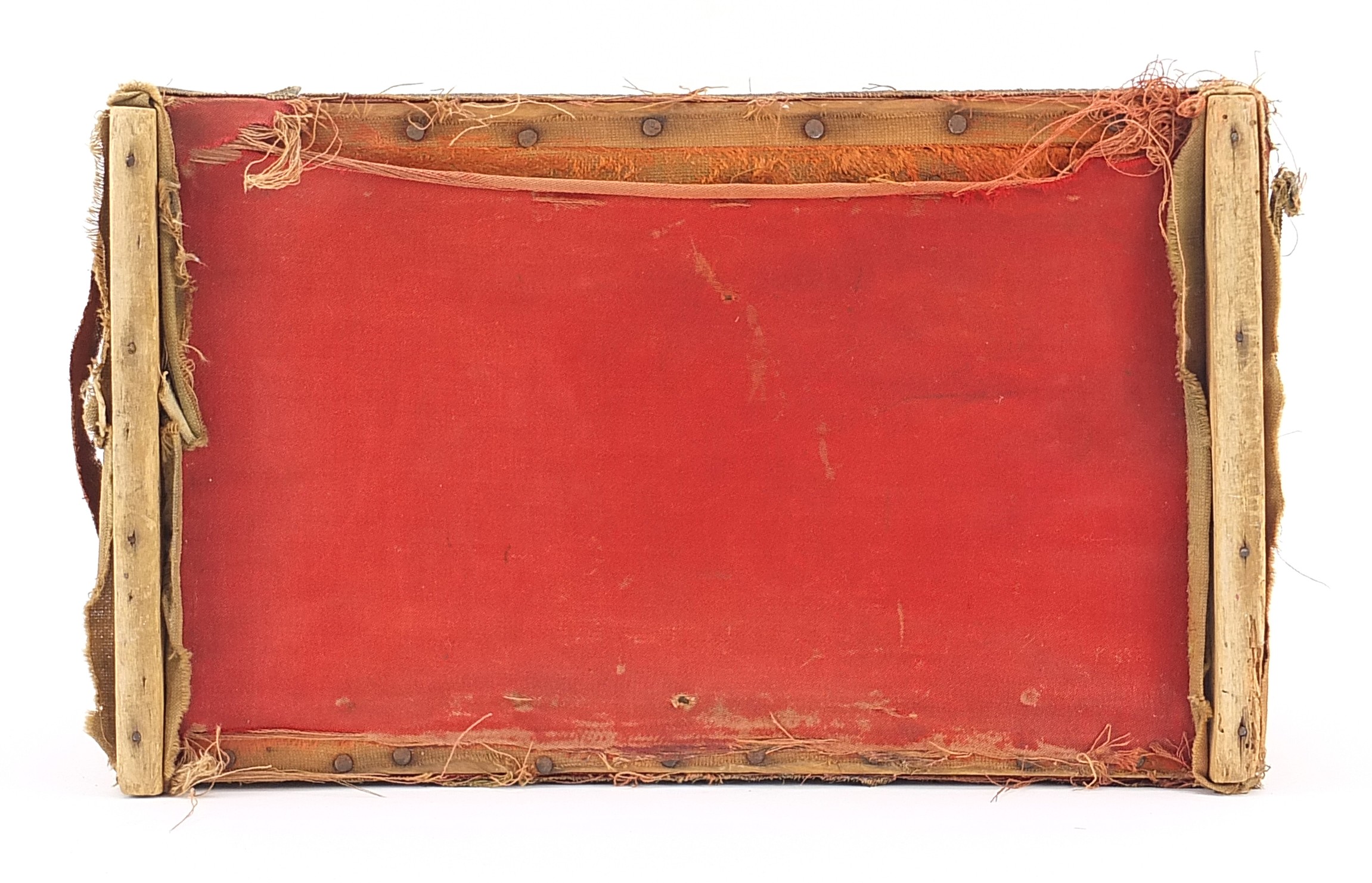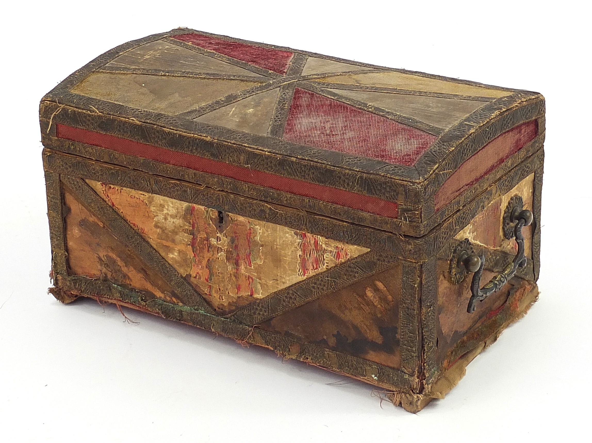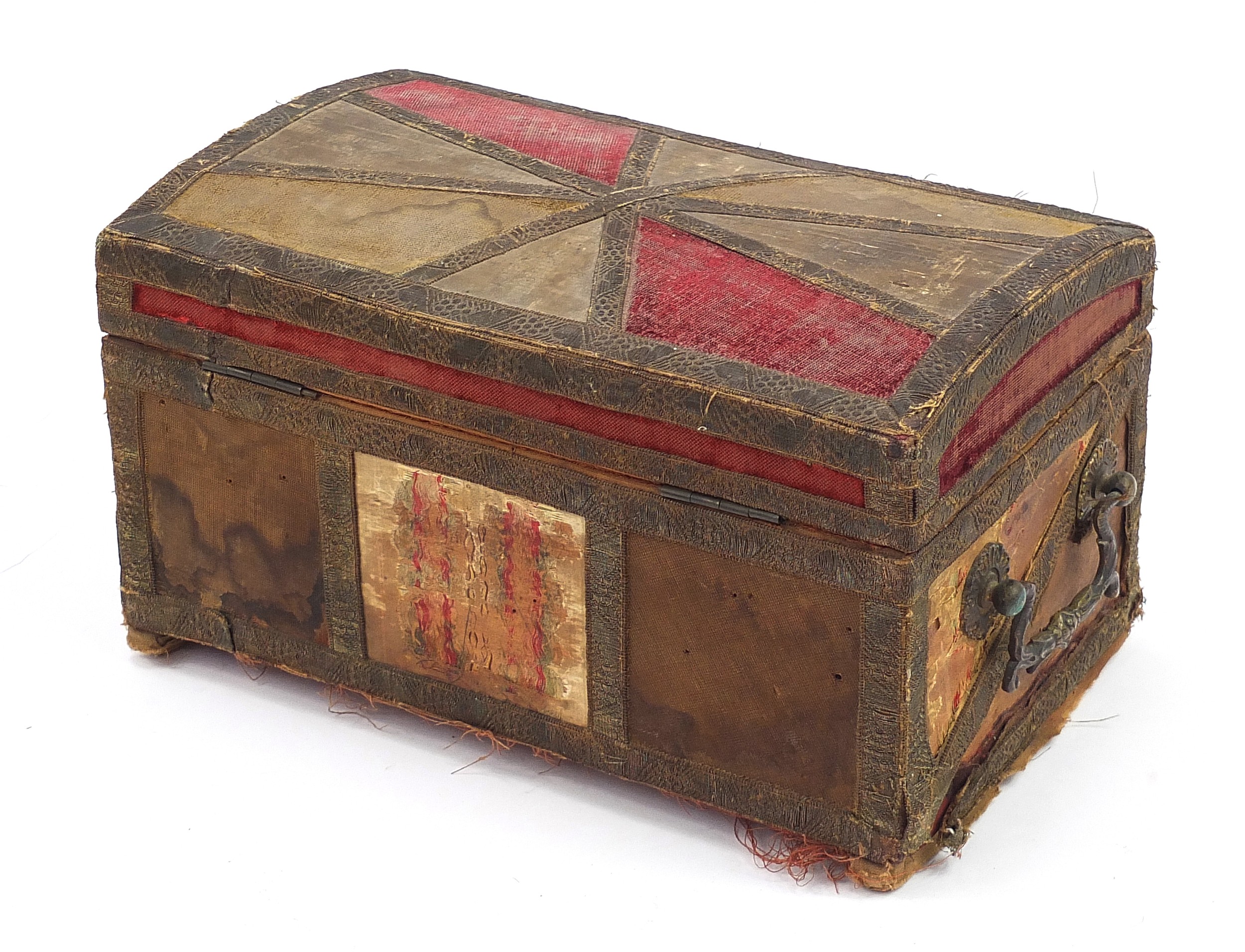 Middle Eastern dome top embroidered casket with carrying handles, 17.5cm H x 30cm W x 18cm D