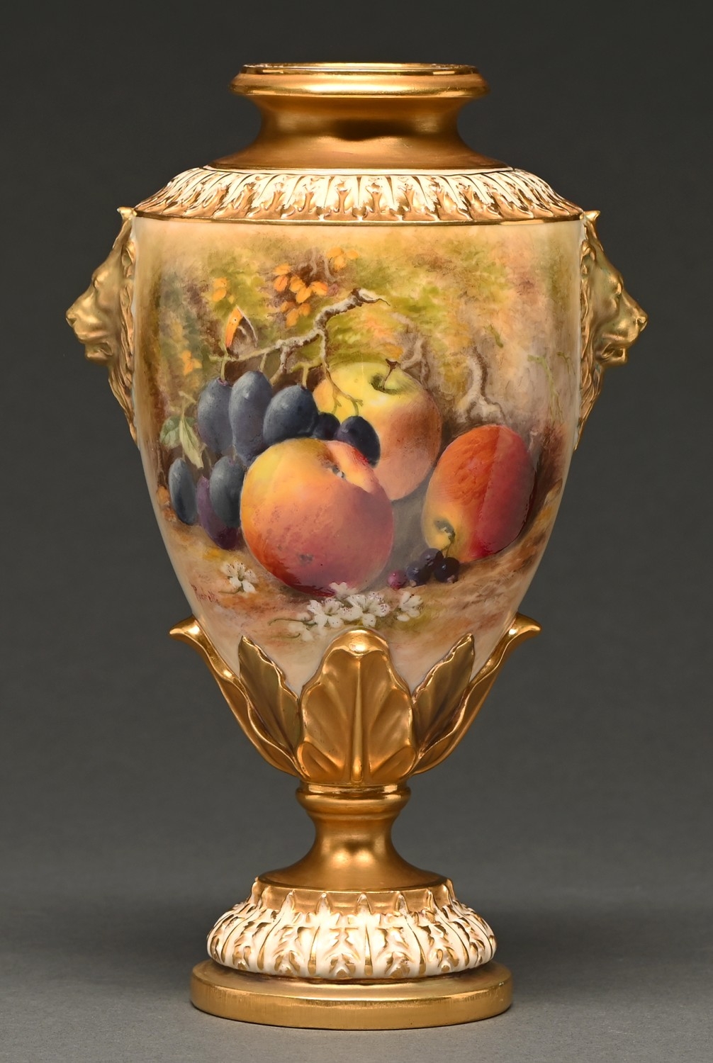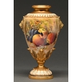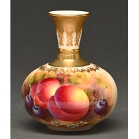 A Royal Worcester vase, 1922, painted by Ricketts, signed, with fruit and blossom before a mossy bank, cherries to the reverse, 23cm h, puce printed mark and shape No 2305