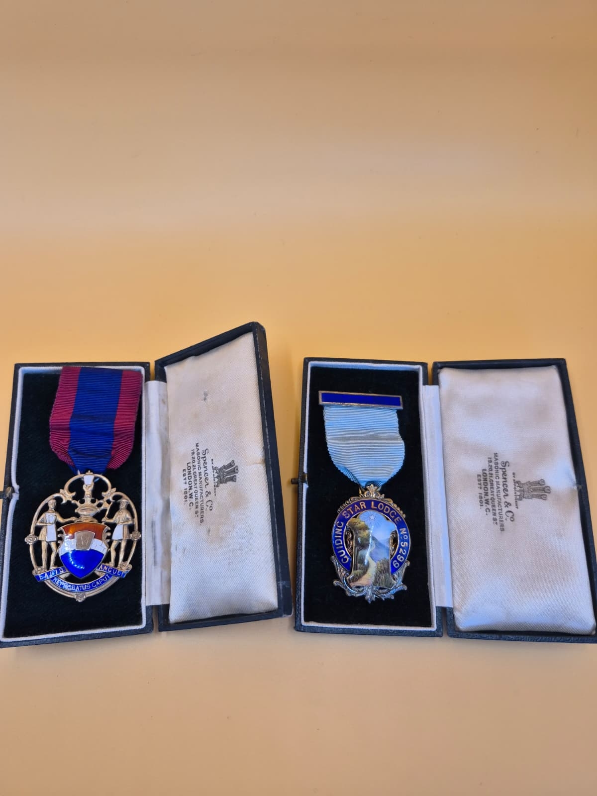Two Sterling Silver Masonic Jewel Medals Both Fully Hallmarked & Original Boxes Combined Weight 64g