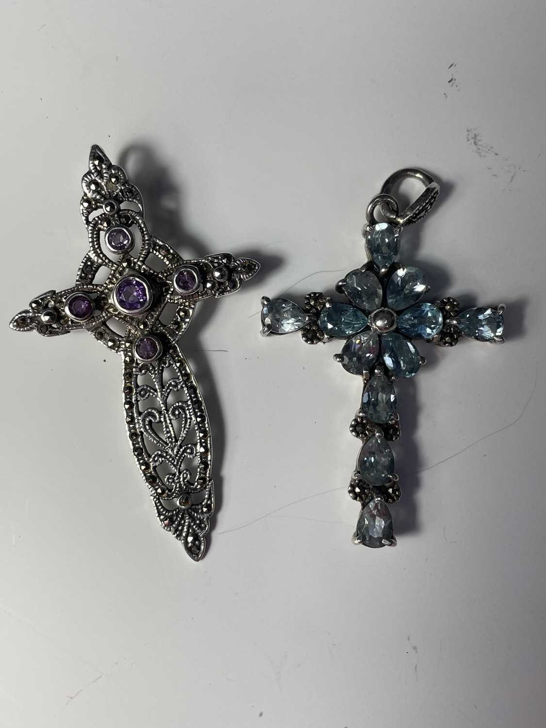 A collection of costume jewellery, to include a pearl necklace and pendant of cut glass and pearl in a gold coloured metal, a cut glass necklace mounted in gold coloured rope boarder, a cut glass cross shaped pendant with light blue centre stone surrounded by clear glass and mounted in a silver coloured metal, and two further silver coloured metal and glass crosses and an abalone pendent (1 bag)