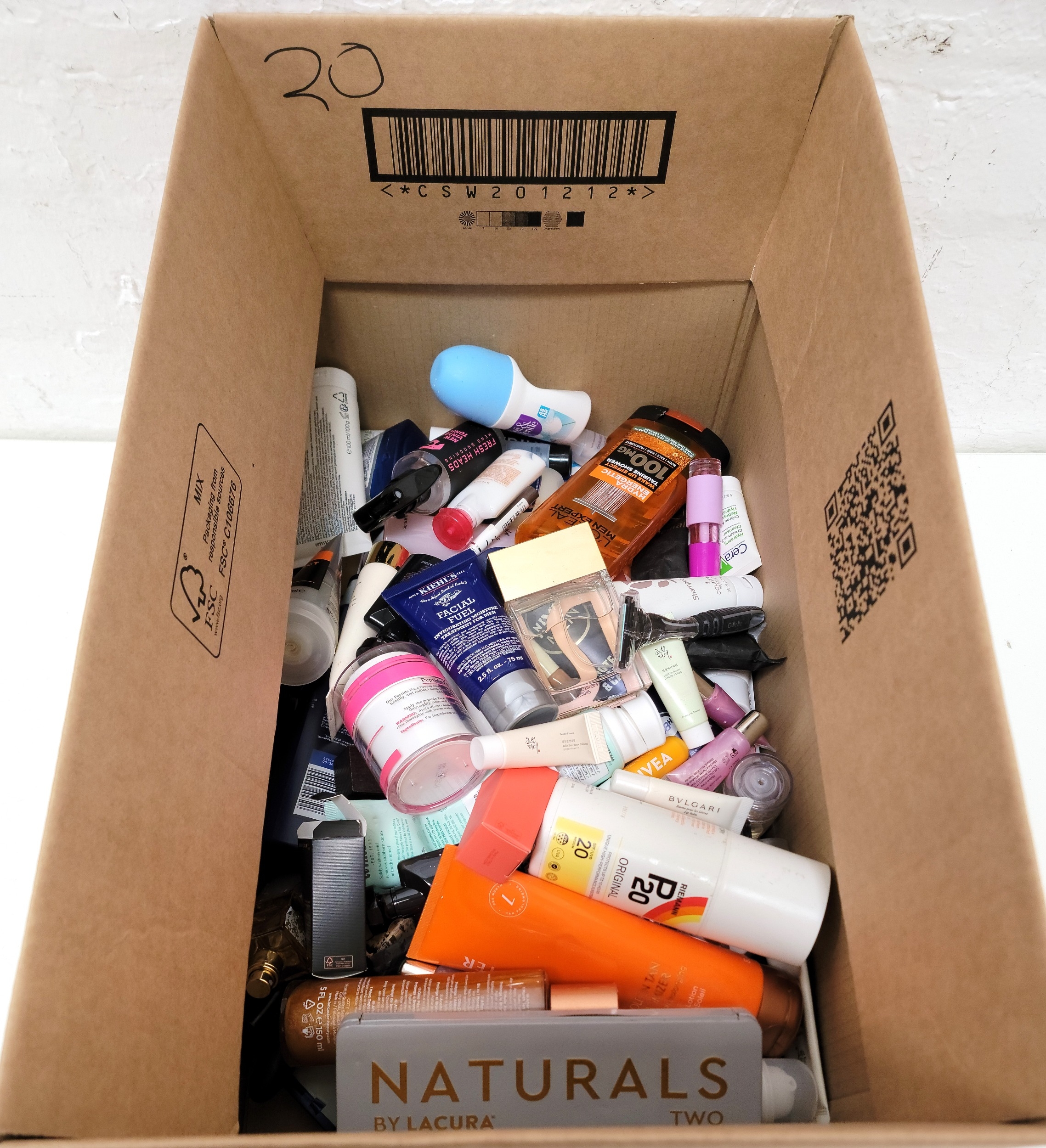 ONE BOX OF TOILETRIES AND COSMETICSincluding: Rituals, Bvlgari, Kiehl's, Gucci, and Beauty of joseon